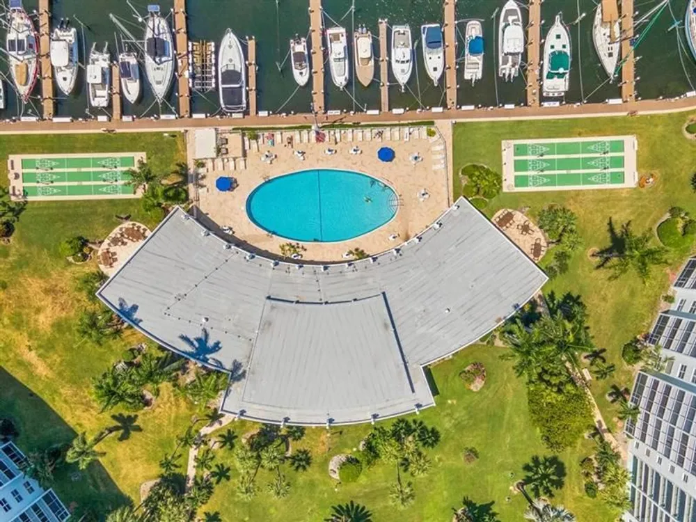 - Includes: Billiard Room, Community Room, Elevator, Fitness Center, Extra Storage, Marina, Pool, Sauna, Vehicle Wash Area