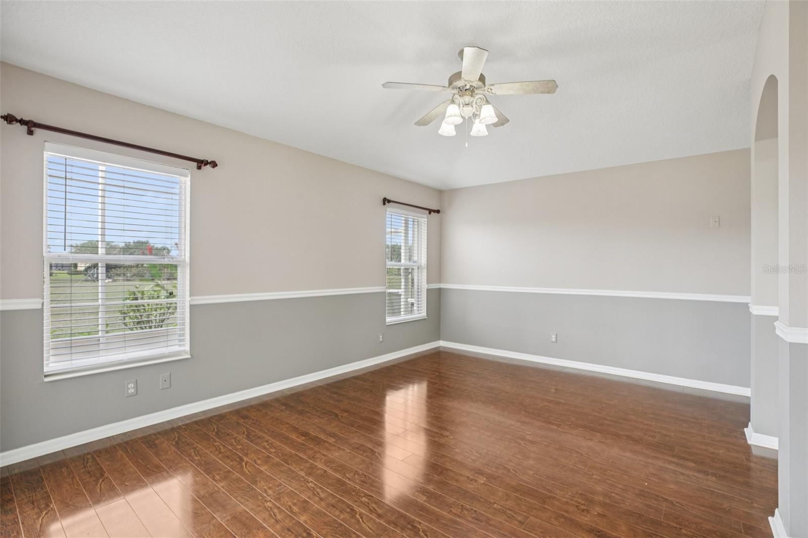 - Ceiling Fan(s), Chair Rail, Eat-in Kitchen, High Ceilings, Living/Dining Room, Open Floorplan, Solid-Wood Cabinets, Stone Counters, Thermostat, Walk-In Closet(s), Window Treatments