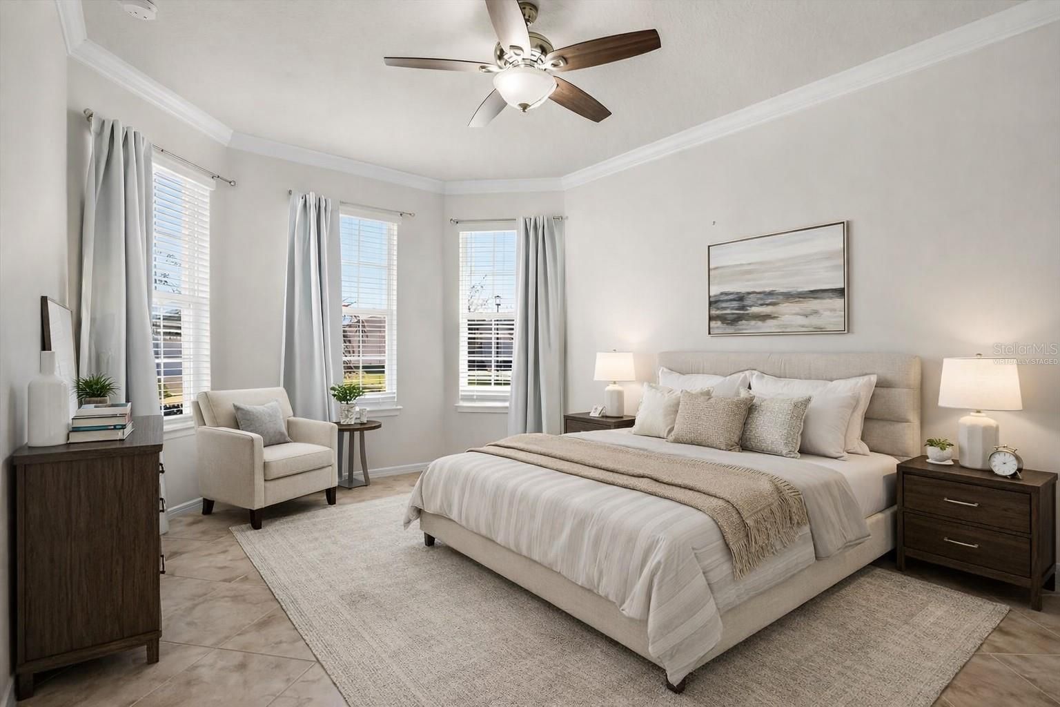 One or more photo(s) has been virtually staged. Beautifully Designed Turn-Key home in a Premier 55+ Community Welcome to 2732 Ruby Rose Lane, a stunning residence nestled within the highly sought-after Del Webb Sunbridge community. This meticulously maintained, turn-key Mystic floor plan is one of the larger models offers 1919sf and blends modern elegance with everyday comfort, creating the perfect sanctuary for those ready to enjoy both relaxation and an engaging lifestyle. Constructed in 2021, this floor plan provides a spacious, open layout with two bedrooms, two bathrooms, and a rare three-car tandem garage that offers ample space for both vehicles and storage. Upon entering the home, you'll be immediately impressed by the stylish porcelain tile flooring that flows seamlessly throughout the entire space, enhancing the sense of openness and sophistication. The home has been thoughtfully upgraded with crown molding, ceiling fans in every room, and a high-capacity washer and gas dryer to add convenience to your daily life. A gas tankless water heater ensures you always have hot water when you need it, and the home is designed to maximize comfort with every detail carefully considered. For allergy sufferers, the UV light for the AC is a great addition, helping to reduce allergens and provide a healthier environment. The guest bedroom is perfectly located at the front of the house, providing privacy for both guests and homeowners. It offers generous space for visitors, with the flexibility to accommodate a desk or exercise equipment. Just outside the guest bedroom is a full bathroom and a linen closet for additional storage. There’s also a versatile room near the foyer that could serve as a third bedroom or a home office, allowing you to personalize the space to fit your needs. The home's practical drop zone provides easy access to the garage, and a large laundry room ensures that storage is never an issue. The heart of this home is its expansive living room, which flows effortlessly into the well-appointed kitchen. Perfect for those who love to cook and entertain, the kitchen features sleek granite countertops, top-tier appliances, a beautiful tile backsplash, and a large closet pantry. Whether you’re hosting dinner parties or enjoying a quiet meal, the adjacent dining area provides the ideal space for both. Sliding glass doors open up to an oversized screened-in patio that extends your living space outdoors. This serene outdoor area overlooks the meticulously landscaped backyard, offering the perfect setting for relaxation, dining, or grilling with friends. The private primary bedroom offers a peaceful retreat to unwind at the end of the day. The ensuite bathroom is a luxurious escape with a glass-enclosed tiled shower, a double-sink vanity, a dedicated makeup area, and a spacious walk-in closet. For additional storage, the attic can be easily accessed via a pull-down ladder in the garage. This home offers a unique opportunity to enjoy a sophisticated lifestyle in a warm and welcoming neighborhood. As part of the exclusive Del Webb Sunbridge community, this home provides access to a wealth of amenities designed for active adults. With a 27,000 sq. ft. clubhouse, two pools, tennis and pickleball courts, fitness center, the Sabal Tavern Restaurant & Bar offers great food and a variety of community activities, there’s always something to do. This home is not only a peaceful retreat but conveniently located to Orlando Airport, Lake Nona, nearby dining and shopping.