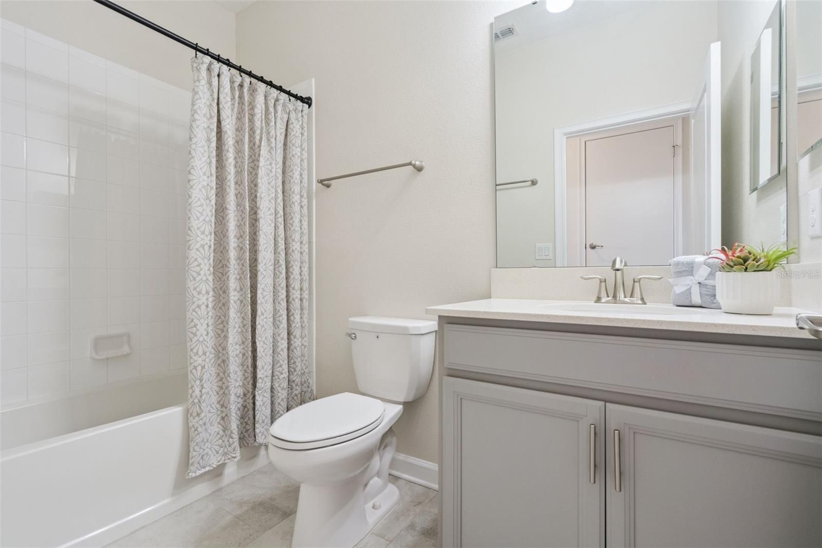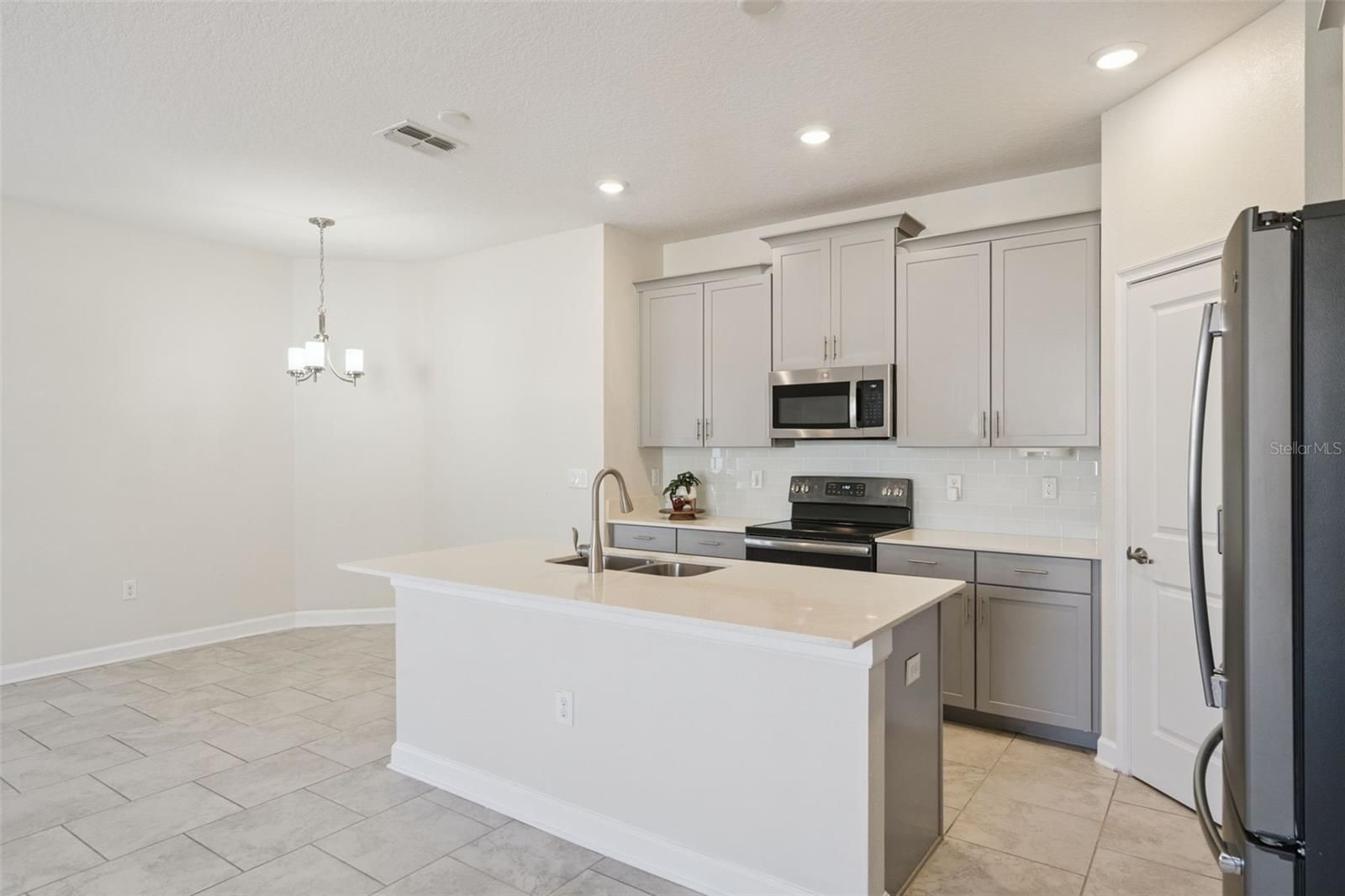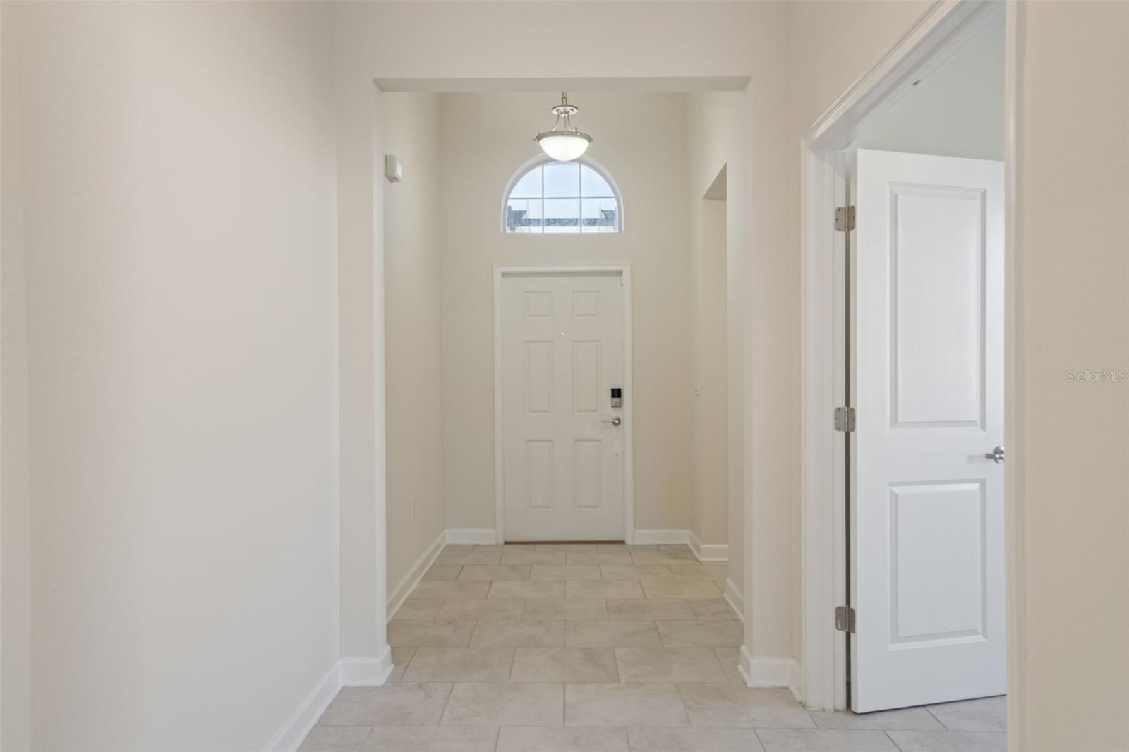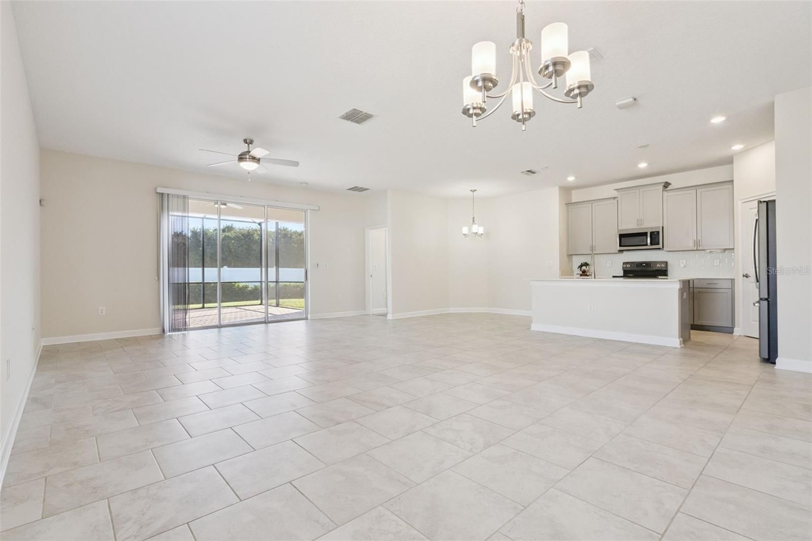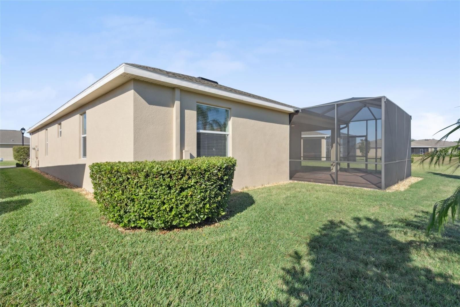 This meticulously maintained 3-bedroom, 3-bath home showcases eco-smart features and true pride of ownership, all within the sought-after 55+ gated community of Traditions. Thoughtfully designed and beautifully upgraded, this residence offers comfort, efficiency, and a relaxed Florida lifestyle. Upon arrival, you’re greeted by Florida-friendly landscaping accented with stone curb edging and a decorative paved walkway. The welcoming foyer features a transom window and a convenient coat closet. The spacious living and dining areas offer an open-concept layout enhanced with tile flooring—ideal for entertaining. Oversized sliding glass doors open to an extended screened-in lanai, seamlessly expanding the living space outdoors. The well-equipped kitchen features 42" upper cabinetry trimmed with crown molding, a stainless steel appliance package, and a walk-in pantry to meet all your culinary needs. A center island adorned with quartz countertops perfectly complements the glass tile backsplash, adding both function and style. The generously sized primary bedroom suite is a luxurious retreat, offering wall-to-wall carpeting and dual walk-in closets. The primary bath impresses with a handicap-accessible tiled shower featuring decorative listello tile, a comfort-height double-sink vanity, and a linen closet. A junior bedroom suite includes a private en-suite bath with a comfort-height vanity and quartz countertop—ideal for guests or extended stays. Step outside to your private oasis, where the paved screened lanai provides a peaceful setting for outdoor entertaining. This premium lot with no rear neighbors enhances privacy and tranquility. Additional Features & Upgrades Screened-in front entrance with paved walkway, Smart thermostat and smart home technology, Hybrid water heater, Low-E double-pane windows, Ring doorbell and MyQ garage door opener, Laundry room with washer and dryer, In-wall pest control system and termite bait traps, Exterior carriage lighting, Gutters, Two-car garage with epoxy finished floor. The picturesque Community of Traditions offers Planned Community Activities and an array of amenities such as a Lake Front Clubhouse, Dock & Boat Ramp, Heated Swimming Pool and Spa, Ballroom, Billiards, Meeting Room, Library, Computer Room, Craft Room, Dog Park, Tennis Courts, Basketball Court, Bocce, Shuffleboard, Fitness Center, and Aerobics Studio. Conveniently located near Shopping, Restaurants, Legoland and Major Routes, this home offers the perfect combination of luxury, comfort, and convenience.