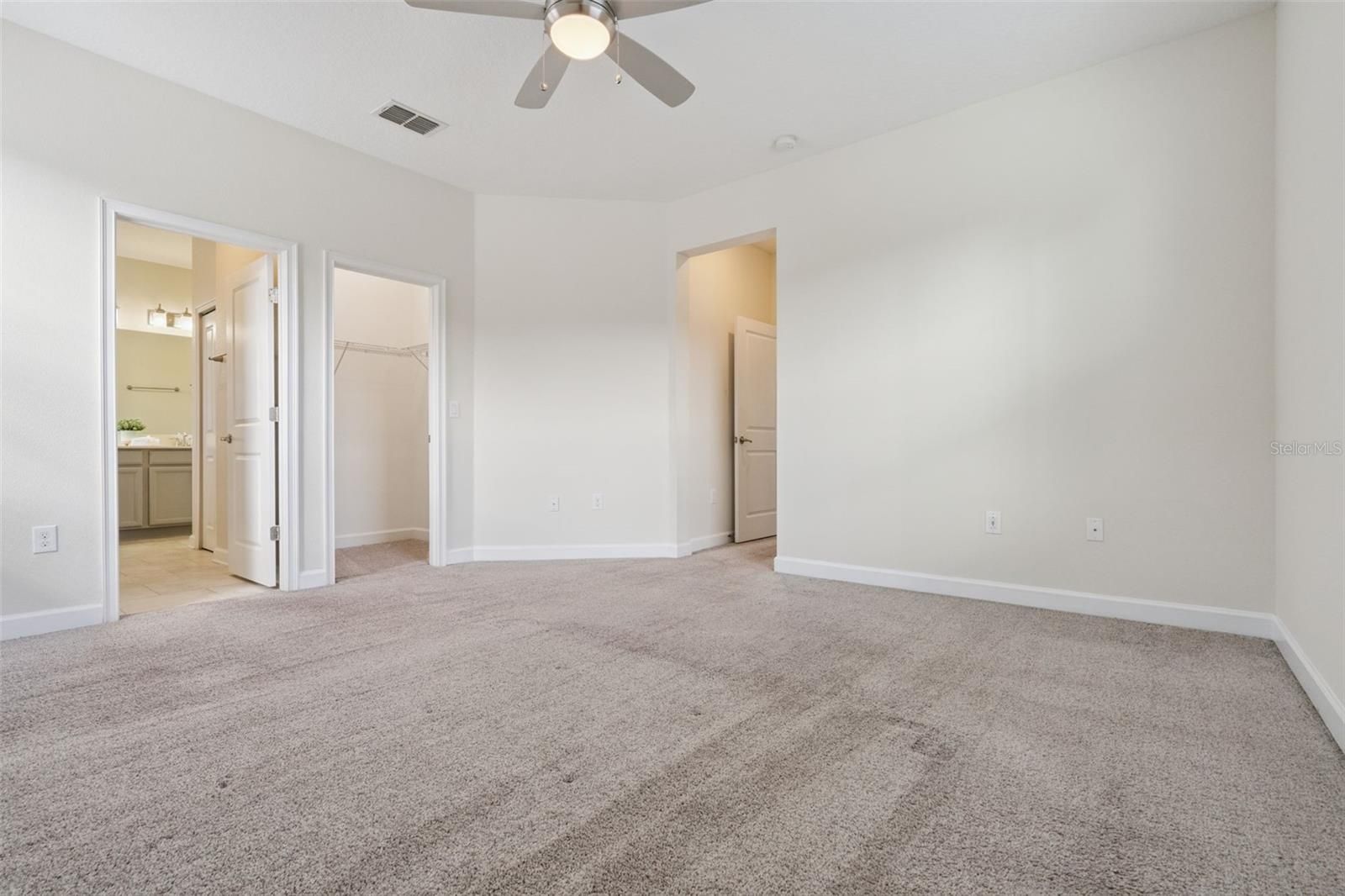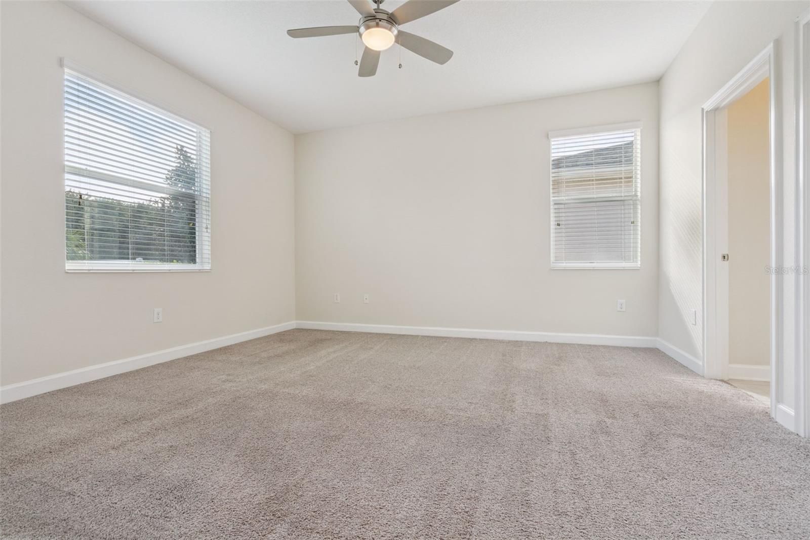 - Ceiling Fan(s), Eat-in Kitchen, High Ceilings, Living/Dining Room, Open Floorplan, Main Level Primary, Split Bedrooms, Stone Counters, Walk-In Closet(s)