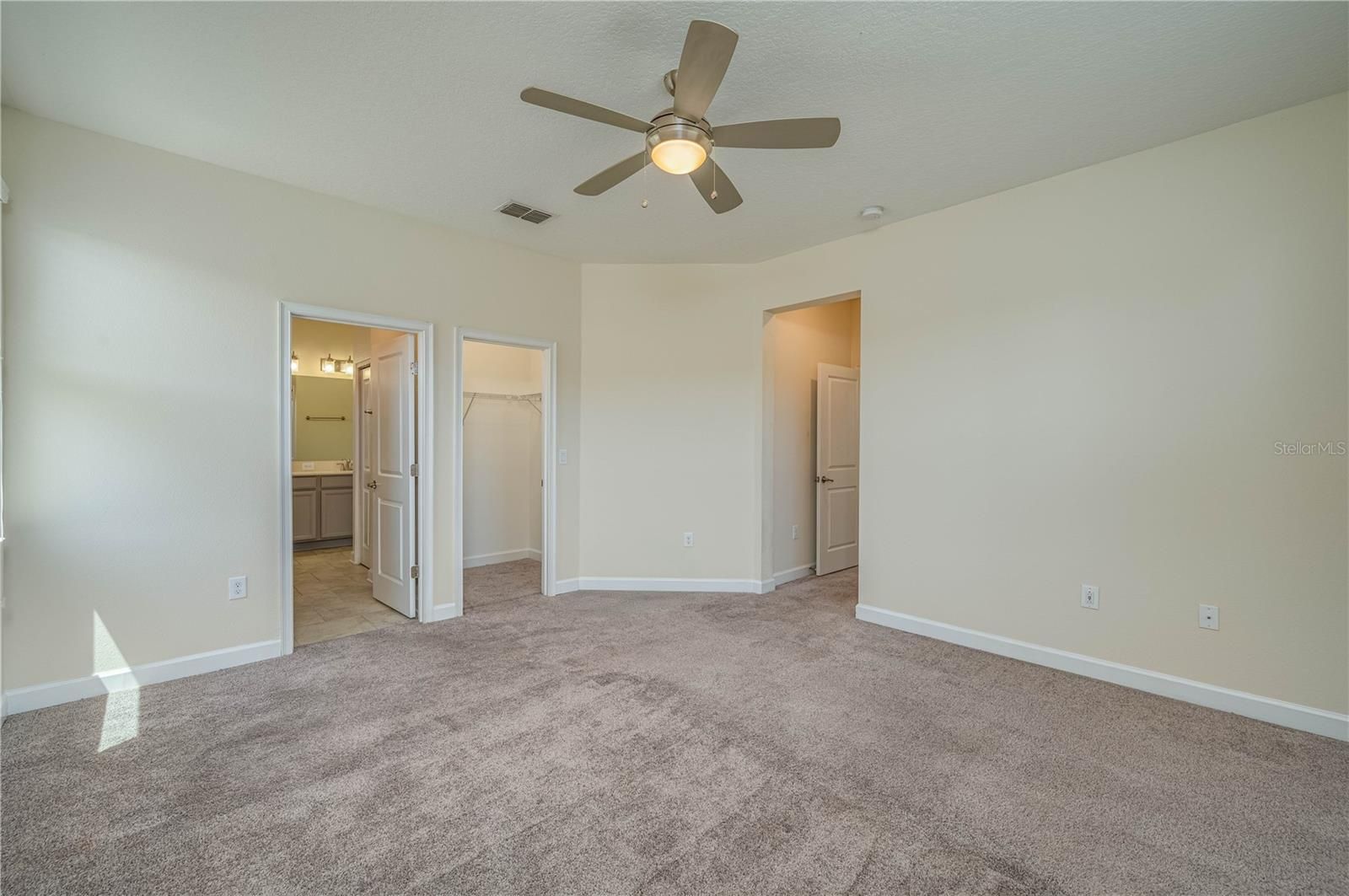 DON'T MISS THIS HOME!!! This stunning split 3-bedroom, 3-bathroom home offers a spacious and thoughtful layout, complete with a versatile den/bonus room perfect for an office, craft space, or quiet retreat. HOA covers Lawn Care among other benefits! TWO OF THE BEDROOMS FEATURE EN-SUITE BATHROOMS ensuring privacy and luxury for guests or family. The primary suite is a true haven, boasting TWO walk-in closets, an extra-large easy-access walk in shower, double vanity, and a linen closet combining elegance and practicality. Step through the triple sliders onto the impressive 18x16 lanai where half is covered so you can enjoy fresh air rain or shine. The epoxy-finished 2-car garage connects seamlessly to the home via the laundry room making daily routines effortless. A larger driveway (33x16) ensures plenty of parking for visitors and added convenience. The heart of the home must be the kitchen with its masterpiece of style and function! Kitchen has gleaming quartz countertops, taller cabinets, a walk-in pantry providing ample storage and workspace. This design allows room for bar stools making it a perfect spot for morning coffee, casual meals, or entertaining! The open floor plan effortlessly connects the kitchen, dining, and living areas creating a welcoming atmosphere for gatherings. Outside your front door, Traditions offers the lifestyle you've been looking for. This gated, active 55+ community features first-class amenities and beautifully landscaped grounds. The monthly HOA fee INCLUDES exterior house painting, cable, internet, lawn maintenance, and access to the clubhouse all providing a hassle-free lifestyle so you can focus on enjoying life without much of the maintenance. Here, every day is an opportunity to relax, explore, and enjoy all in a beautifully crafted home that offers space, style, and serenity. This home is a blank canvas, featuring neutral colors throughout, allowing you to effortlessly add your personal touch. Whether you envision warm inviting hues or sleek modern accents, this home is ready to be transformed into your perfect space! Move in and make it truly yours!