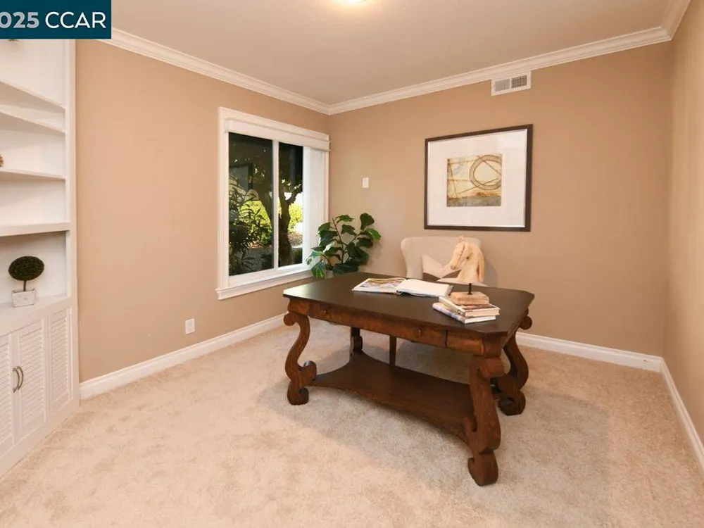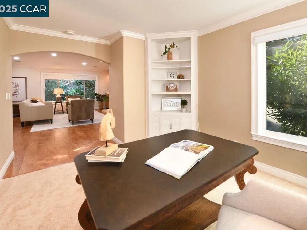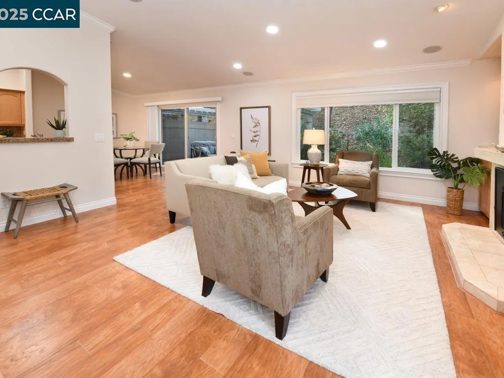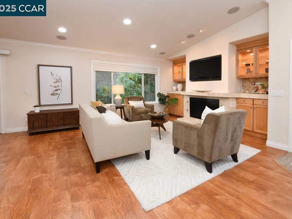 Welcome to your own private sanctuary in Rossmoor, Walnut Creek’s premier 55+ active adult community. Nestled in a tranquil setting with serene hill views, this beautifully updated Belvedere model offers the perfect blend of comfort, space, and elegance. Step inside to a spacious 2-bedroom + office layout featuring hardwood floors throughout and an inviting living room with built-in, lighted cabinetry. The remodeled kitchen boasts granite countertops, rich wood cabinetry, and updated appliances, ideal for everyday cooking or entertaining guests. Two beautifully updated bathrooms, both with walk-in showers. The primary suite is generously sized, with an elegant en-suite bath featuring a tile countertop and direct access to a private patio—a peaceful retreat to start or end your day. The second bedroom is perfect for guests or hobbies, and the additional office space offers flexibility for work or relaxation. Step outside to your large main patio, where you can take in breathtaking views of the surrounding hills, deer, and squirrels—a slice of heaven right at your doorstep.