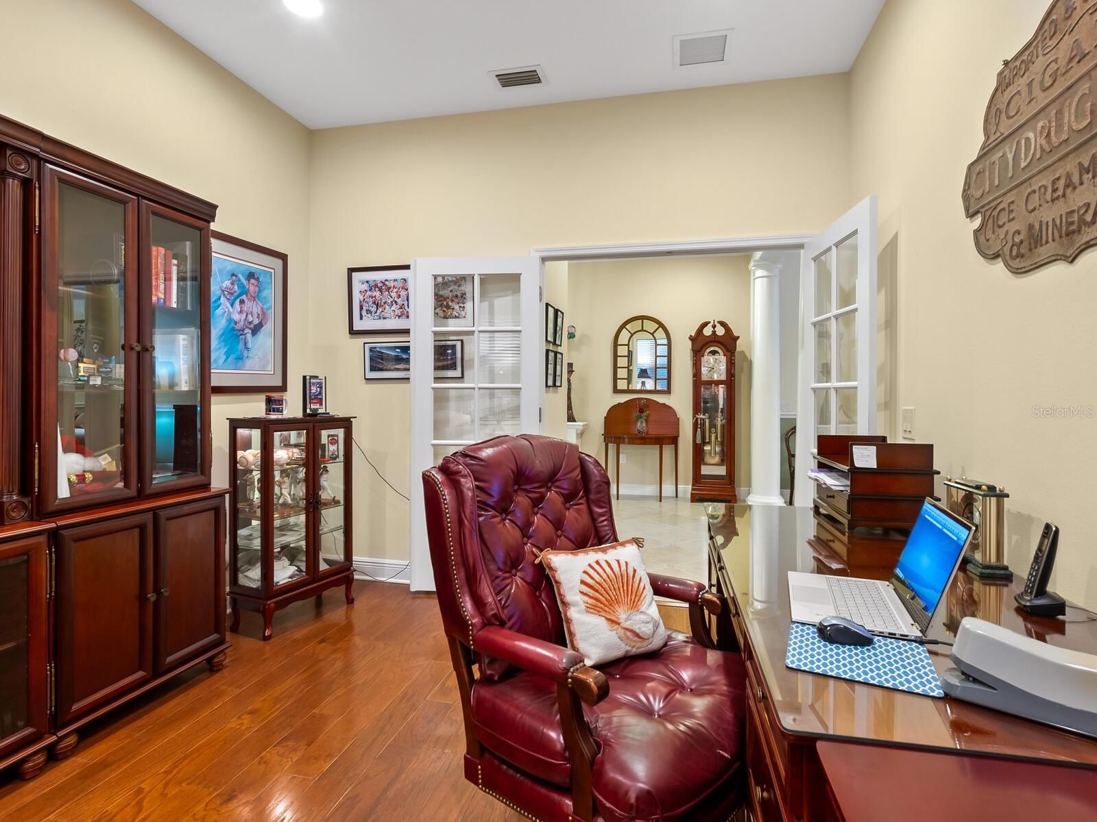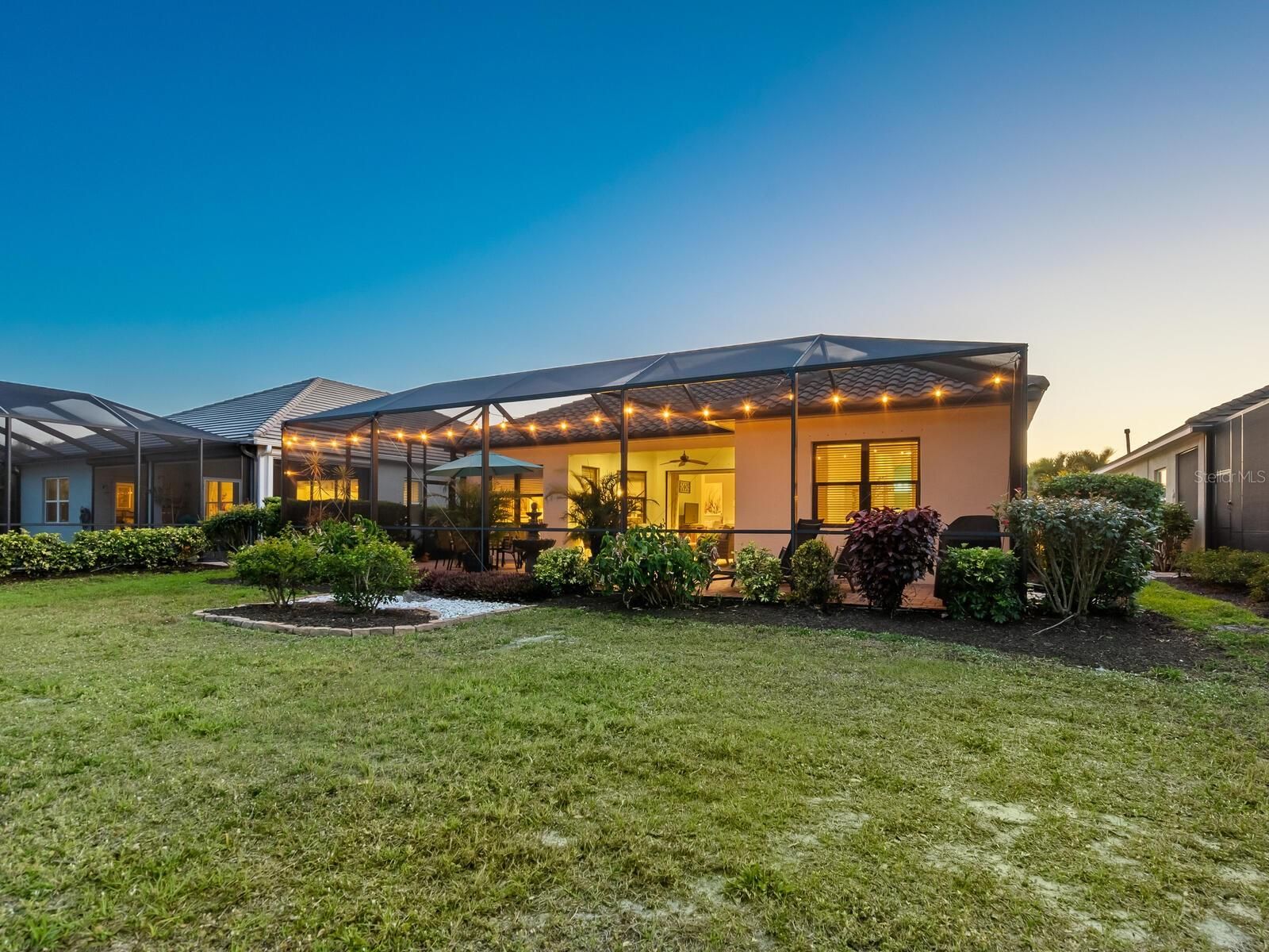 This inviting home has great detail and features three bedrooms, two and a half baths, den, formal dining room, great room and eat-in kitchen. The great room has vanishing sliders that open to the large extended paver lanai with private views of the green space and preserve. Crown and chair moldings, columns, tray ceiling, oversized ceramic tile, and hardwood floors are just a few of this home's upgrades. The kitchen has natural gas cooking, stainless steel appliances and granite with breakfast bar. The primary suite is welcoming and has two walk-in closets. Get in your golf cart and head to the country club for lunch or dinner. Golf, tennis, pickleball, fitness and soon Boca Royale’s gates will open in Wellen Park for dining, shopping and the ballpark! No, I haven’t forgotten your best friend, there are large and small dog parks.