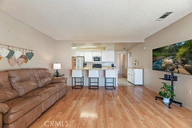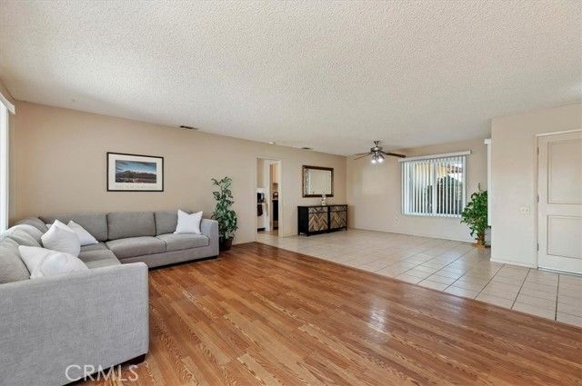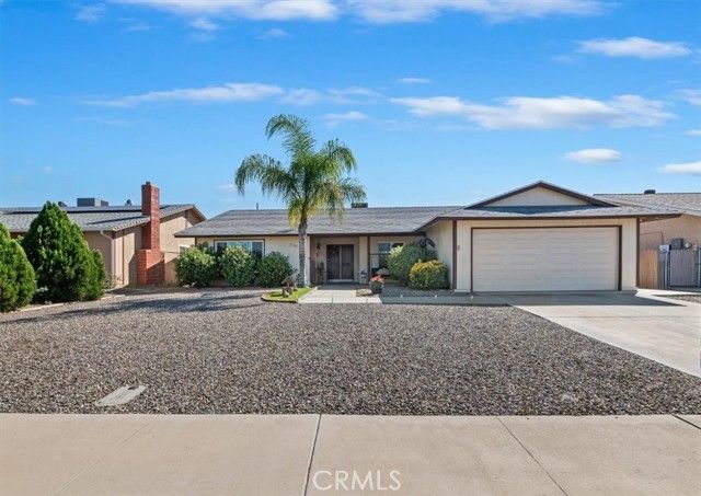 Welcome to resort-style living in the highly desirable 55+ community of Sun City Civic Center in Menifee. This beautiful single story is truly move-in ready. The double door entry takes you into the spacious open floor plan featuring attractive laminate flooring in the living room, family room, primary bedroom and dressing area. The dining room, hallway, kitchen, laundry room and bathrooms and finished with durable ceramic tile for easy maintenance. This home offers several upgrades, including newer windows, custom paint on both cabinetry and interior walls throughout. The kitchen features upgraded lighting, stove, cooktop, refrigerator and convenient breakfast bar for casual dining. The laundry room is tiled and includes a second refrigerator and the washer & dryer- all included with the property. The primary bedroom has beautiful laminate flooring, large mirrored wardrobe closets, sliding door access to the backyard and a dressing area with a vanity. The adjoining bathroom is tiled and includes a tub/shower combination. The guest bedroom has cozy carpet and offers a spacious walk-in closet and also has a connecting door into the guest bathroom. The backyard is designed for low maintenance living with desert landscaping, patio area and a fully fenced yard- perfect for entertaining. There is a 2 car garage with a work bench area and shelves for extra storage. Community amenities abound including 2 sparkling pools, spa, fitness center, shuffleboard, lawn bowling, horseshoe pits and countless clubs and activities. With low HOA. This is senior living at its finest! Do not miss the opportunity to call this lovely home your own!