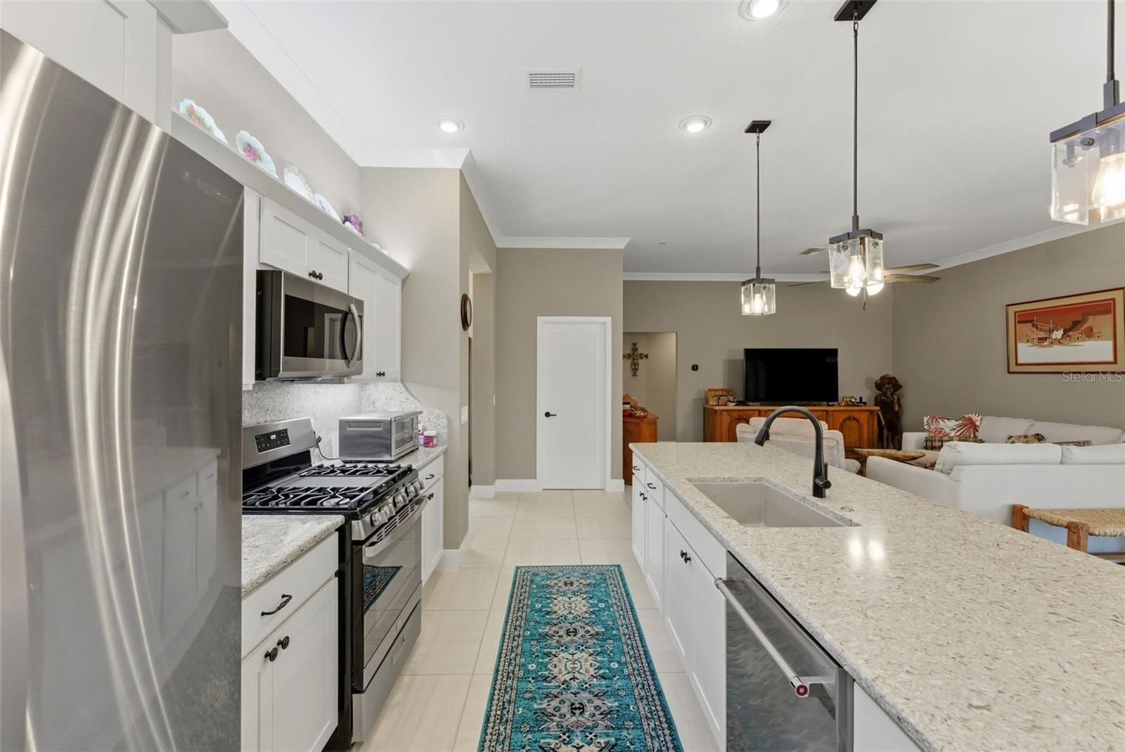 Welcome Home! THE ARLINGTON COURTYARD VILLA SALTWATER POOL HOME WITH 3 CAR GARAGE on a spacious corner lot. Checks all the boxes. This block pool home has a wrap around screened in lanai. Upgraded from floor to ceiling gas stove,washer, gas dryer, solar heated pool, large tile floors professional closet organizational systems, plantation shutters ,tray ceilings, crown moulding The Villages has it all restaurants, golf, shuffle board,tennis,crafting,kayaking,fitness classes,fishing,pickleball, shopping, medical in a great golf cart community.