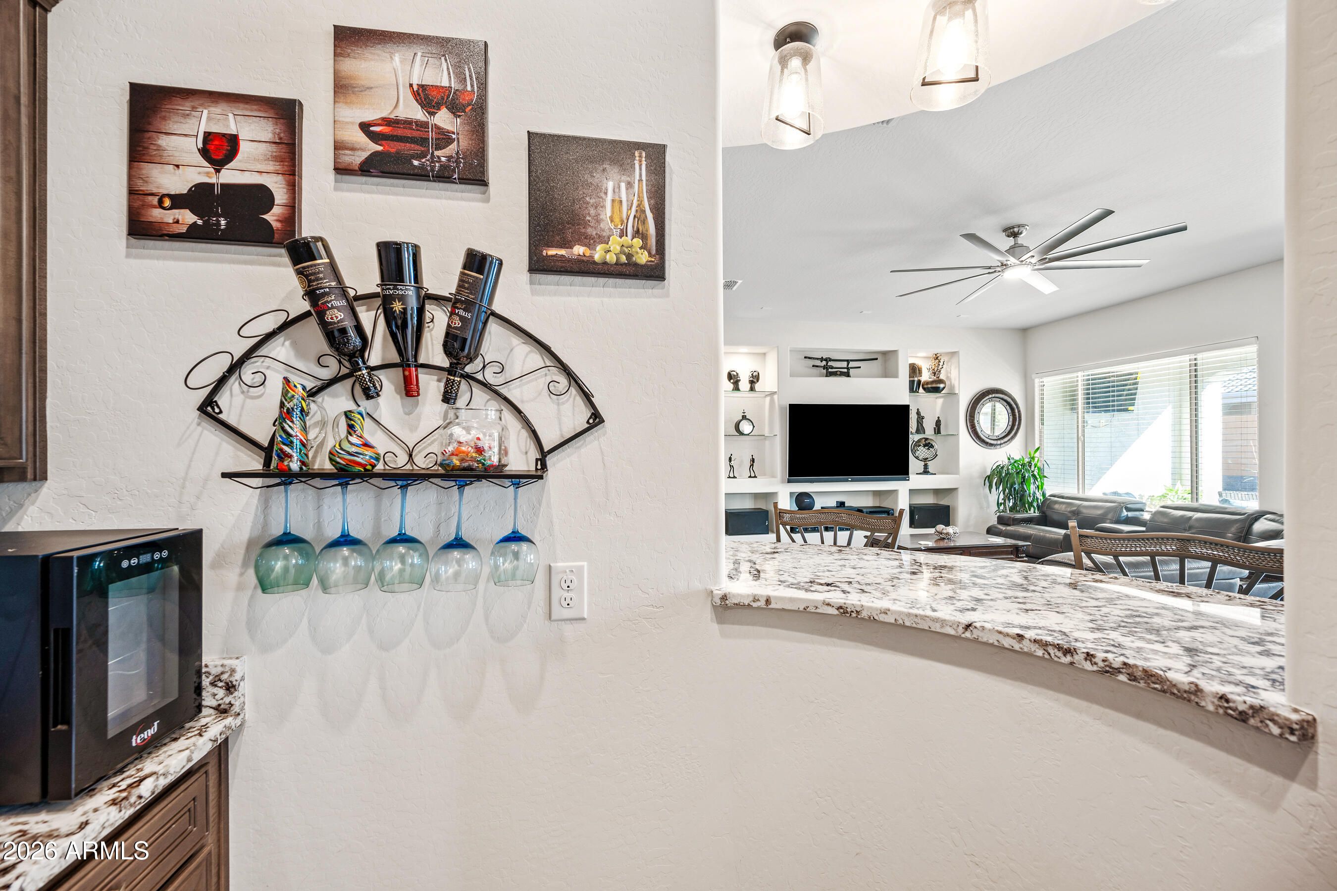 Welcome to this beautifully upgraded home located within the desirable adult community of Sun City Festival, known for its active lifestyle and resort-style amenities. Boasting over $120,000 in builder upgrades, this meticulously maintained residence has been kept in pristine condition and feels like new. The heart of the home is the stunning kitchen, highlighted by a dramatic waterfall island that serves as a true focal point—Just off the kitchen and living room area, a unique wet bar upgrade adds both style and functionality, making it ideal for hosting and everyday entertaining. The home also features fully landscaped front and backyard spaces, creating inviting outdoor areas ready to enjoy from day one. Additional highlights include solar, a water softener system, and the peace of mind that comes with a 10-year structural warranty. A standard home warranty is also included and covers all major appliances and home systems, offering added confidence for the next owner. This exceptional home delivers quality, comfort, and thoughtful upgrades throughout! An outstanding opportunity in the vibrant Sun City Festival community.