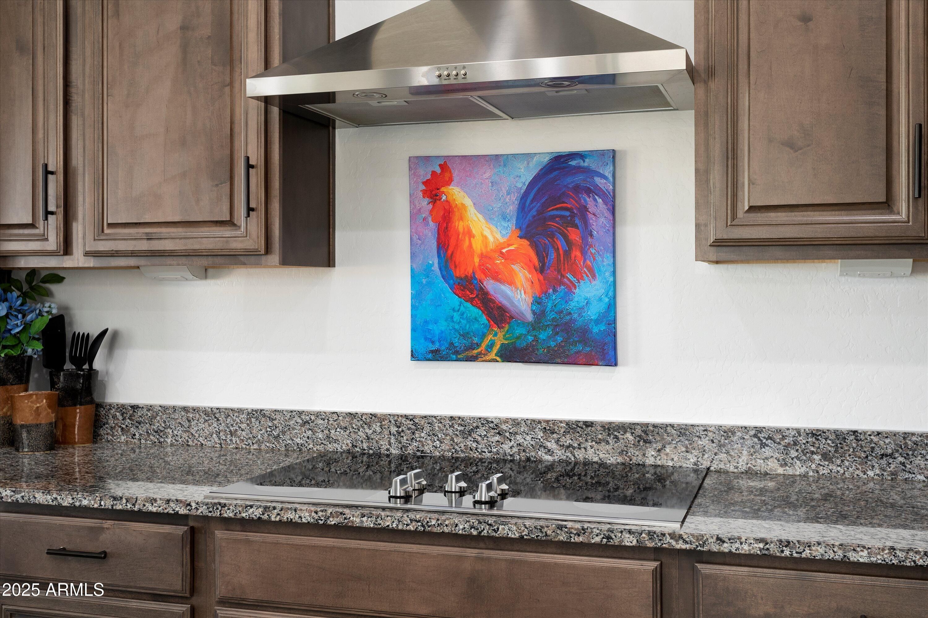 A HEAVENLY HAVEN WITH MOUNTAIN VIEWS! Enter this open concept floor plan w/newer premium paint, upgraded flooring, custom window treatments & storage options throughout. The spacious living/dining area seamlessly flows into the gourmet kitchen w/premium appliances, lux cabinet layout upgrades, miles of granite counters and large island with seating. All this overlooking the private courtyard, perfect for morning coffee. Owner's suite has adjoining bath w/a zero threshold tile surround spa shower, granite counters, vessel sinks, & a large walk-in closet. The den can be used for office or hobbies. Guest room has adjacent full bath. Utility room boasts up/low cabinets & utility sink. Enjoy outdoor living on your extended patio overlooking the beautifully landscaped, private walled yard.