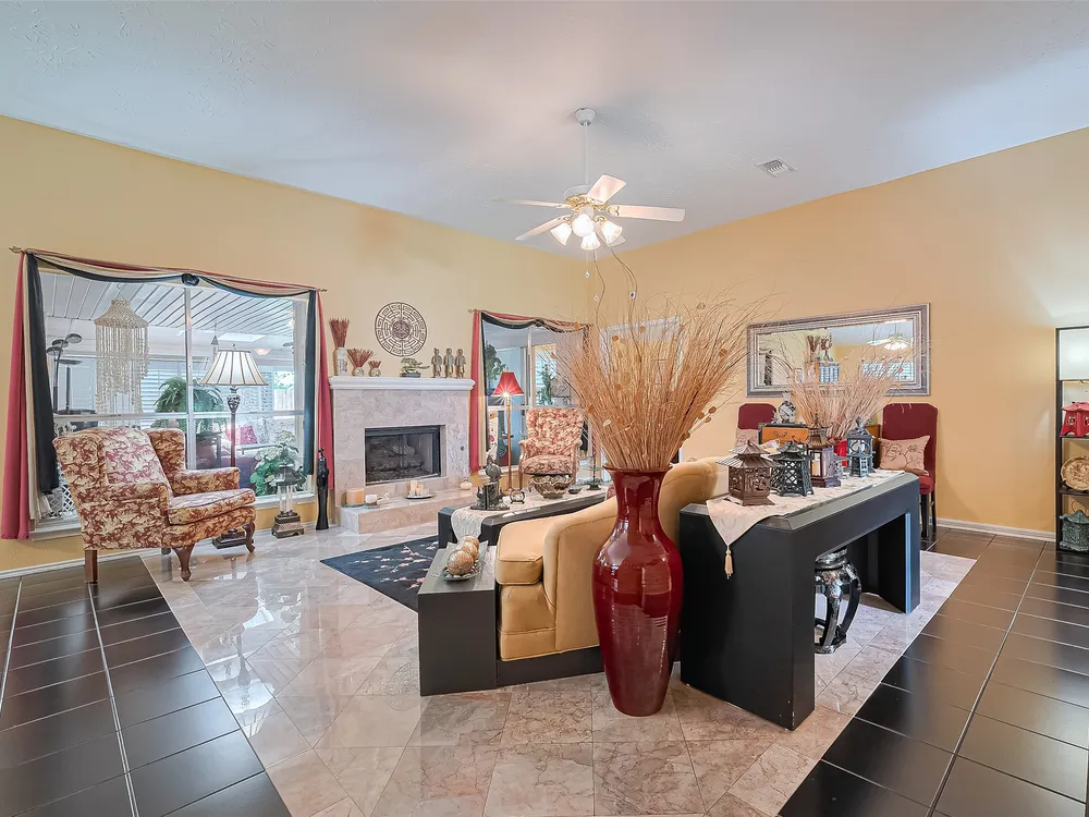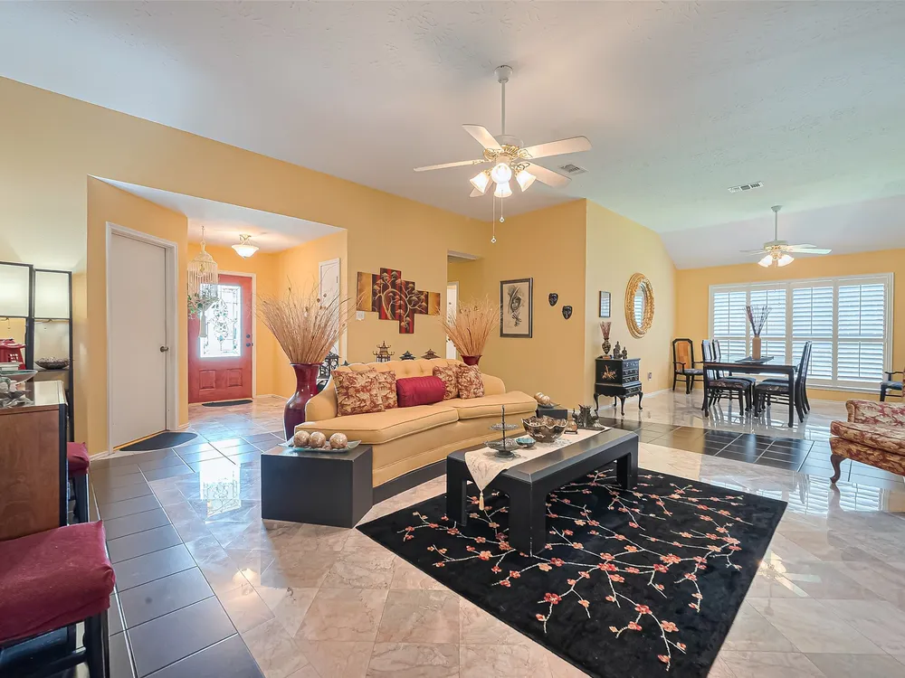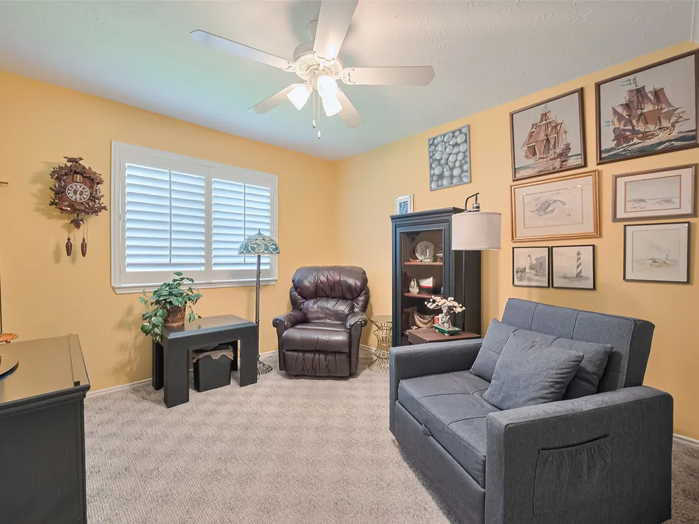 Looking for more than a house--this is a place to call home! Located in the highly coveted 55+ neighborhood of Countryplace, this home is move in ready. Beautifully curated combination living and dining area showcases coordinated marble floors and fireplace. Large kitchen with island and breakfast area leads into the four season secondary living space. Spacious primary suite with dual closets, garden tub and double vanity. Plantation shutters on all windows give this home a warm and inviting fee. Lovely back yard with mature trees and patio. This well maintained home includes all window coverings, portable generator and sprinkler system. Located on the Pearland 18 hole golf course, amenities include clubhouse, pool/hot tub, activity and social hall, fitness and billiard room, tennis/pickleball court and so much more! Perfectly situated close to Pearland shopping, medical centers and restaurants. Welcome home!
