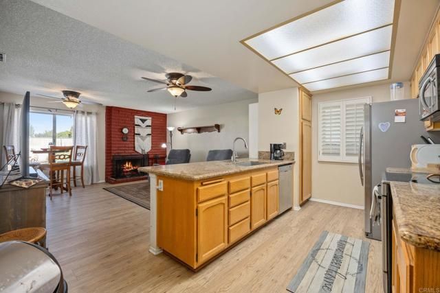 Welcome to this beautiful, turnkey single-level home nestled in a desirable 55+ community, offering stunning mountain views and true resort-style living. This well-maintained home features two spacious bedrooms, neutral interior paint tones, and attractive laminate hardwood flooring throughout. The inviting family room includes a cozy wood-burning fireplace, perfect for relaxing evenings. Situated on a large corner lot, the home also includes leased solar, adding energy efficiency and long-term savings. Residents enjoy an exceptional array of community amenities, including two adult-only heated pools, a jacuzzi, exercise room, billiard room, lawn bowling, and much more. Ideally located near shopping, hospitals, the post office, and with easy access to the 215 freeway, this home offers the perfect balance of comfort, convenience, and an active adult lifestyle. Come experience the relaxed pace of life that Sun City Menifee has to offer.