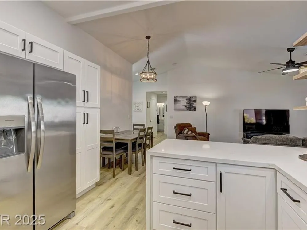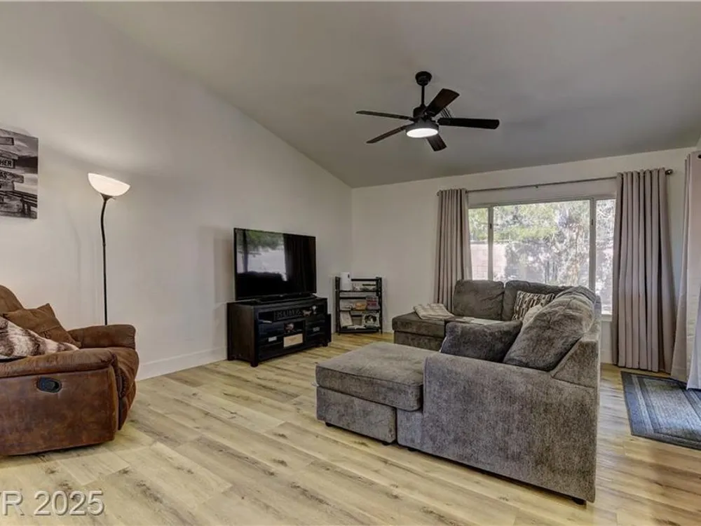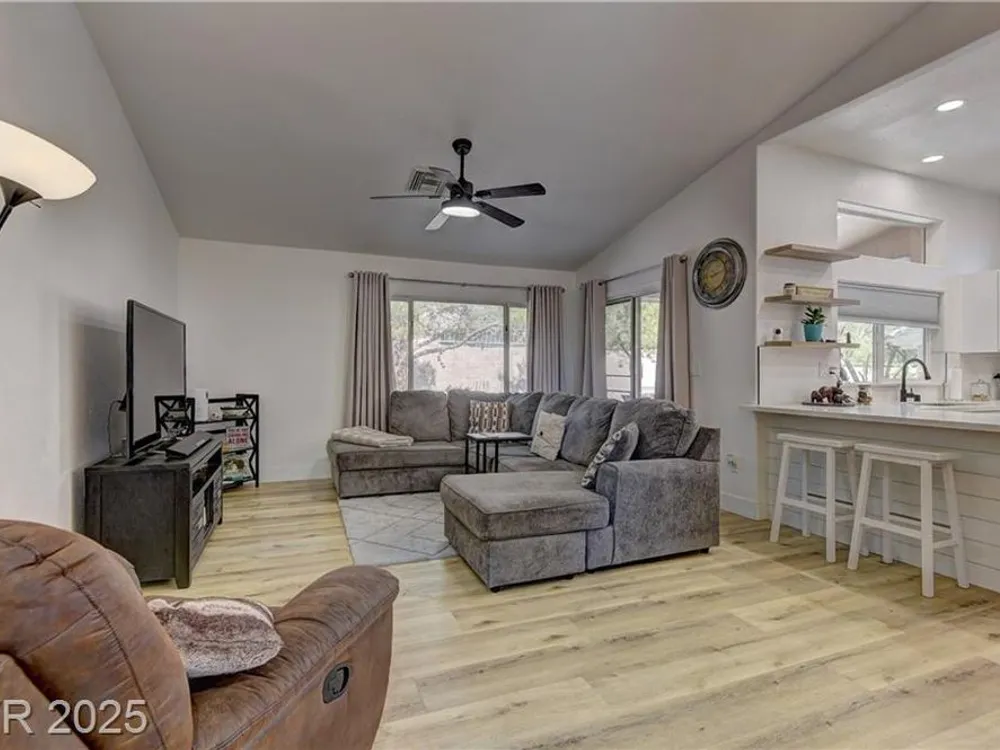 Recently Renovated and Ready to go! This expansive corner lot location provides privacy, mountain views and cozy comforts inside. As you enter you are greeted with Luxury Plank Flooring throughout, Ceiling Fans, Window Coverings with Decorative Curtains and a Kitchen that has so much to offer. Quartz counter tops, all Stainless Steal Appliances to remain, an open floor plan with Breakfast Bar, Recessed Lighting and all new Light Fixtures. Off the Kitchen is a perfect little nook for an office or crafting area. Laundry Space with Washer and Dryer to remain is located in the garage with cabinets galore. New Garage Door opener recently installed. Two Baths/ Two Beds. Both Baths completely refurbished as well. This home is Ready for Move In! Outside you will find a private and inviting Covered Patio with Mature and easy to take care of Landscaping. It's charming and inviting for sure. New Irrigation lines recently installed. Raised Garden Box will stay with the home. Please come See!