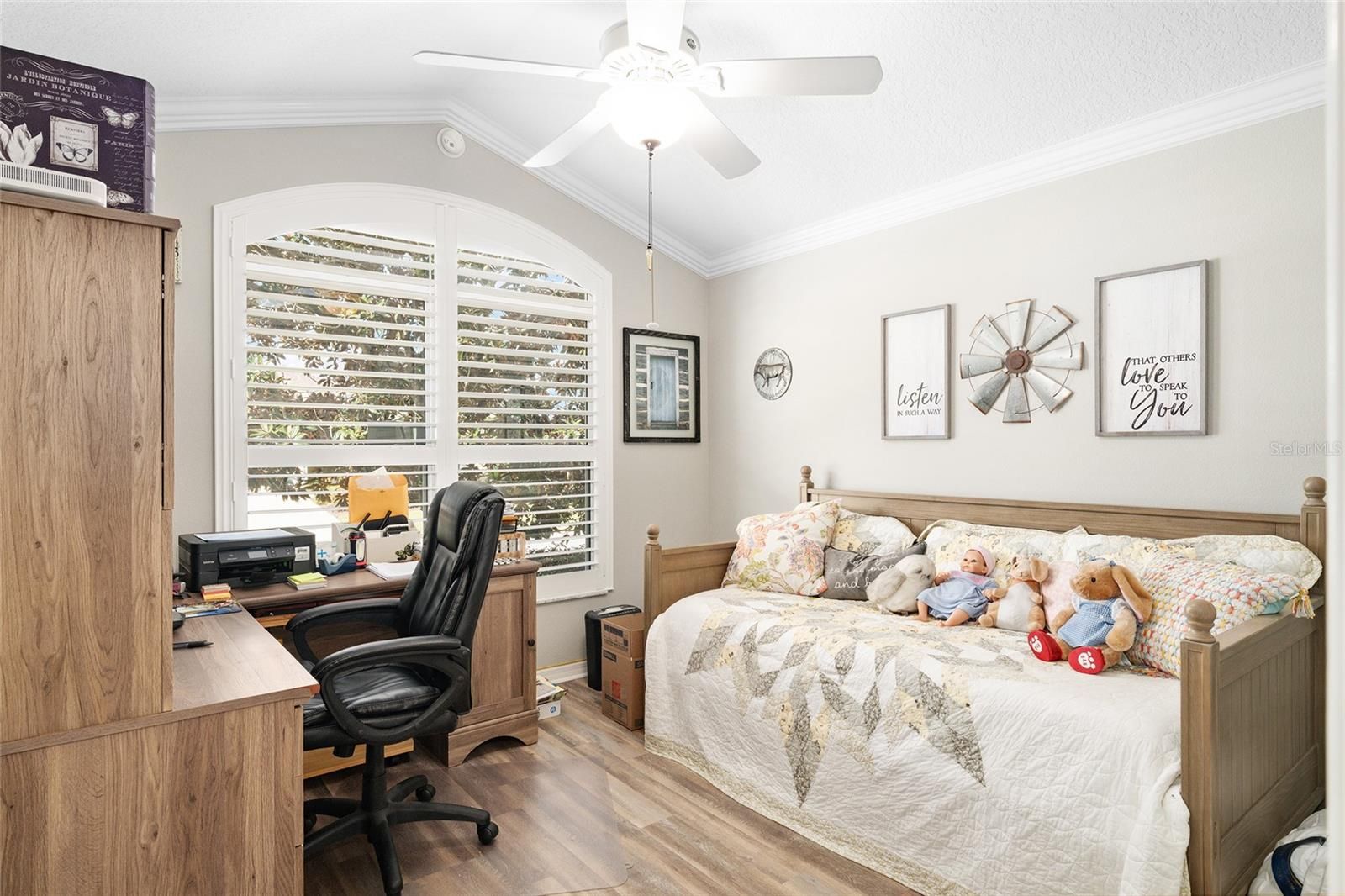 - Crown Molding, Eat-in Kitchen, Open Floorplan, Main Level Primary, Solid Surface Counters, Split Bedrooms, Window Treatments