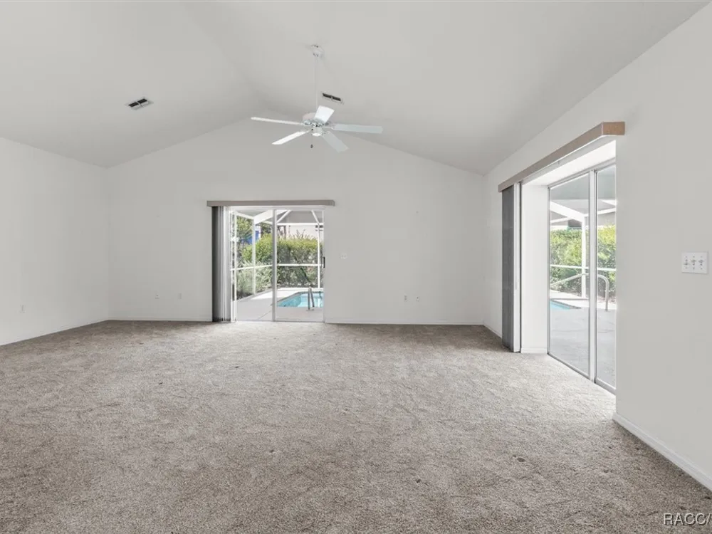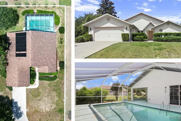 BRENTWOOD POOL HOME! Is this the BEST PRICE and BEST VALUE for a pool home in Citrus County?*** Indulge in the Florida lifestyle within the serene confines of this meticulously maintained Brentwood Community. This 3-bedroom, 2-bathroom single-family pool home exudes timeless charm. The open floor plan and high ceilings bathes the interior in abundant natural light, creating an inviting ambiance throughout. The kitchen is light and bright, having a convenient breakfast bar, and has plenty of storage. Step into the generously proportioned living room, which seamlessly flows to the screened pool and lanai — a tranquil spot to savor your morning coffee. The owners retreat, complete with tray ceiling, walk-in closet, dual sinks, and walk-in shower, promises comfort and relaxation. This 1 owner property offers the perfect blend of comfort, style, and outdoor living. Imagine afternoons lounging by the pool, reading a good book and soaking up the sun. The screened lanai can be used for entertaining or enjoying quiet evenings outdoors. Roof 2017 with transferrable warranty/AC 2015/Water heater 2023. Public water & sewer/underground utilities. Brentwood is a gated Golf Course Community with a social membership to Citrus Hills where you will want to have a staycation all year long with: 4 Fitness Centers (one 50 sqft.), Bella Vita Full Service Spa, 3 Luxury pools, 4 Golf Courses: Three 18 Hole and One 9 hole, lighted tennis courts (8 of those soft Har-Tru) with covered observation deck, 1.5 Walking trail, Dog walk, Basketball courts, 4 Bocce ball courts, White sand volleyball, Waterfront picnic tables, 8 pickle-ball courts, 2 Fine Dining Restaurants, 1 restaurant and grille, 1 tiki bar, 300 Seat auditorium and tons of social clubs. Come and start enjoying your resort style living! Also Coming Soon: Brentwood Resort and Lifestyle Center & Citrus Hills Rockwood Central Sports Plex. Plus you'll be less than 2 miles from all the new Shoppes at Black Diamond, including Target, Aldi & Texas Roadhouse! Don't miss out! Call today! ***Great value for a 3 bedroom pool home in all of Citrus County. Also, it is the least price per square foot for a 3 bedroom pool home under 1,700 sq. ft. of living.***