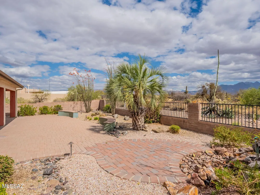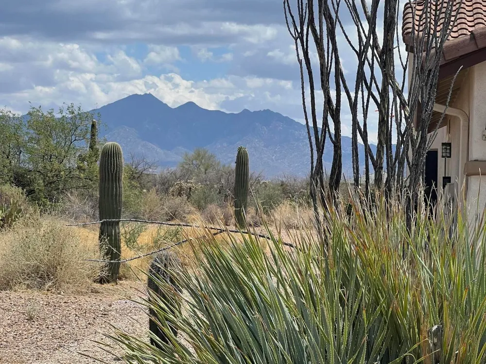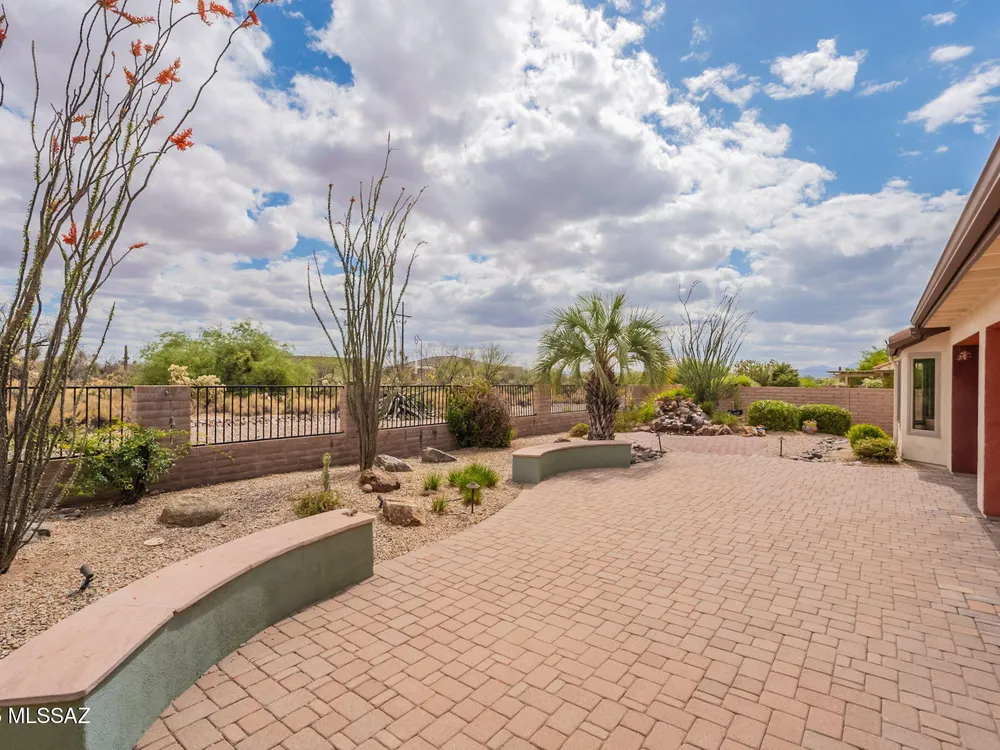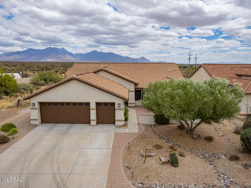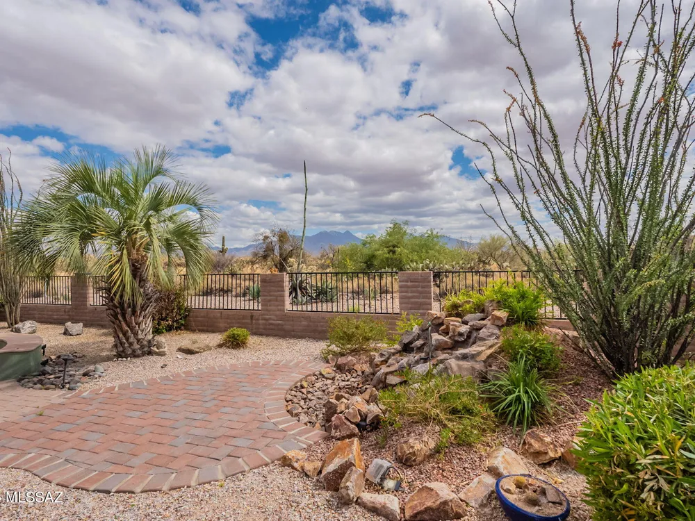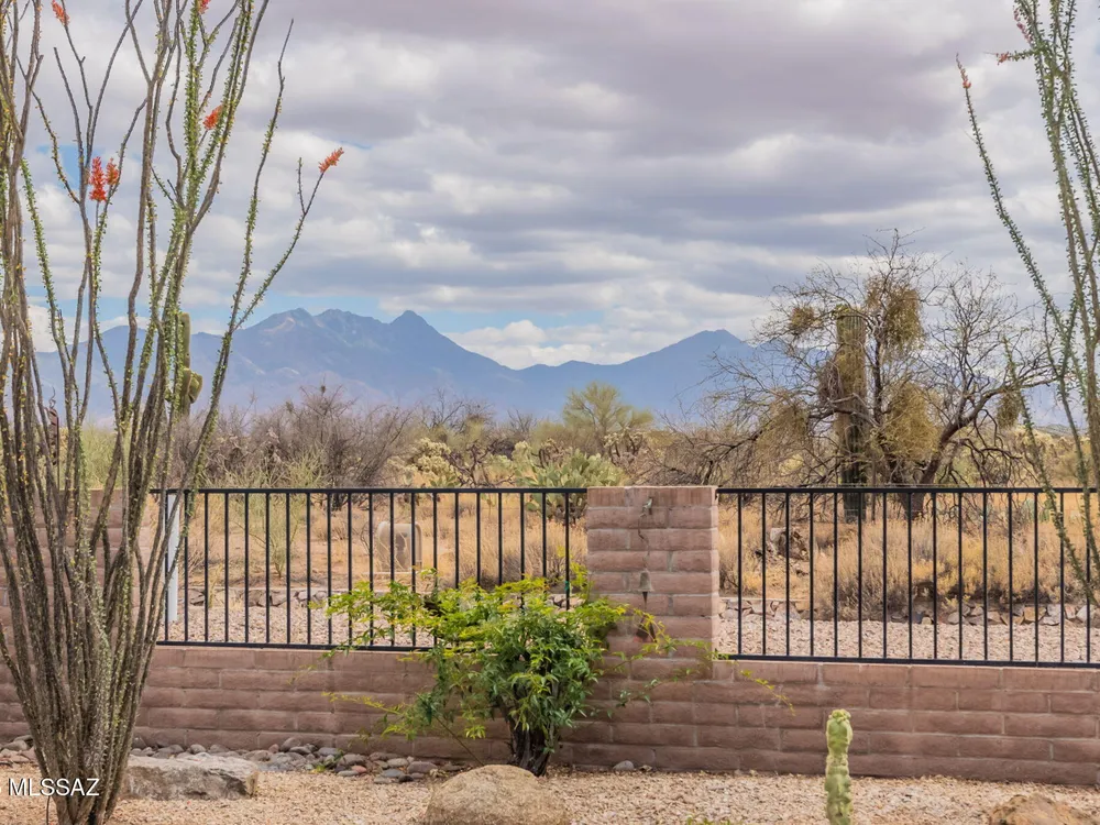Unobstructive Views and Privacy AND a lovely home. Montana model with Tile floors, beautiful wood floor in the office/den and warm carpet in the bedrooms. New Anderson windows installed in most locations. Home backs on the Santa Rita Experimental Range with common area to the side. You can not see the neighbor next door as they made no windows on that side. Water feature added in 2024 makes the back patio a joyous place to relax. The kitchen boasts a gas range and beautiful granite countertops. Cul-de-sac location with no additional homes to be built around it. There is currently a cat in residence. Gutters keeps the water away from the base of the home. Roof maintenance performed 2 yrs ago. New Heat and A/C Units (2) installed 2023. Garage attic access w/flooring. COE after 12/15/25