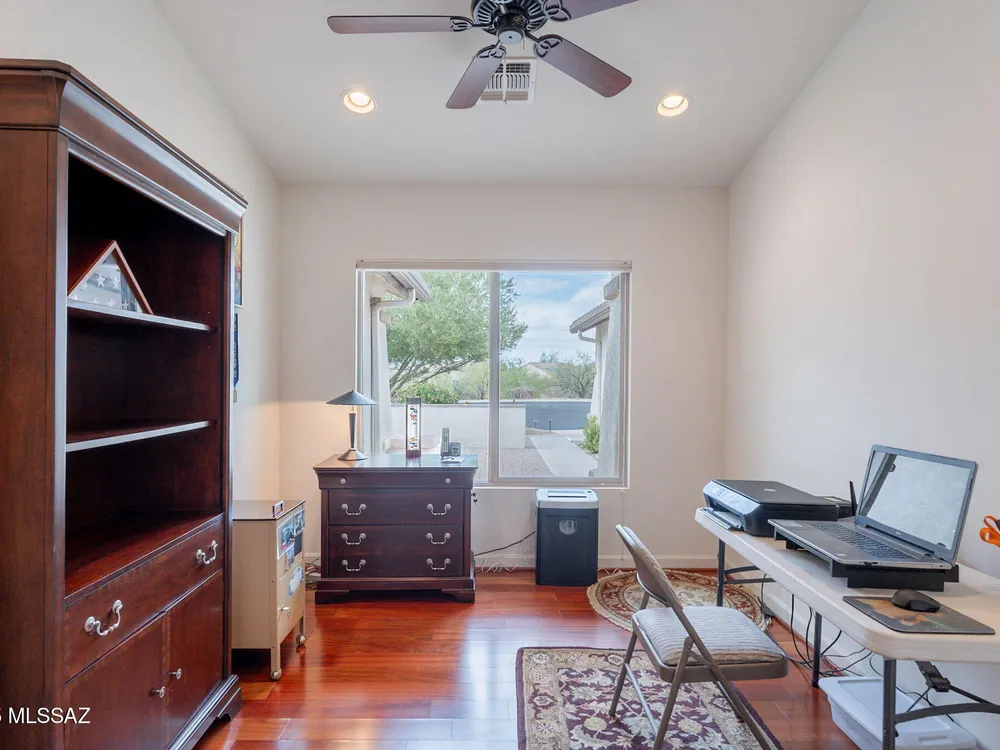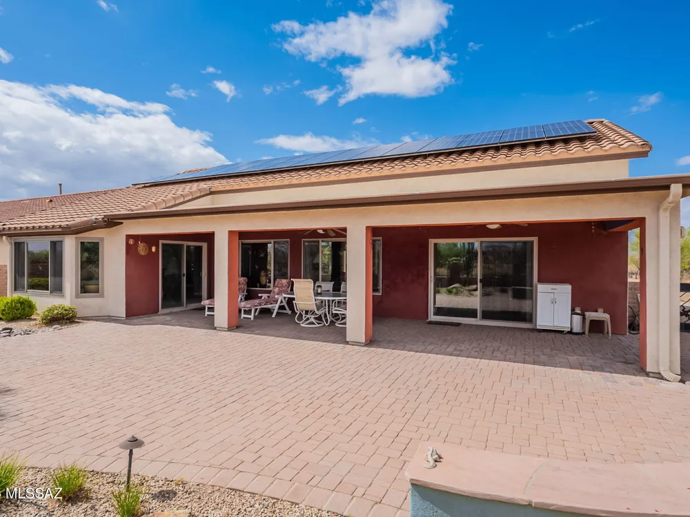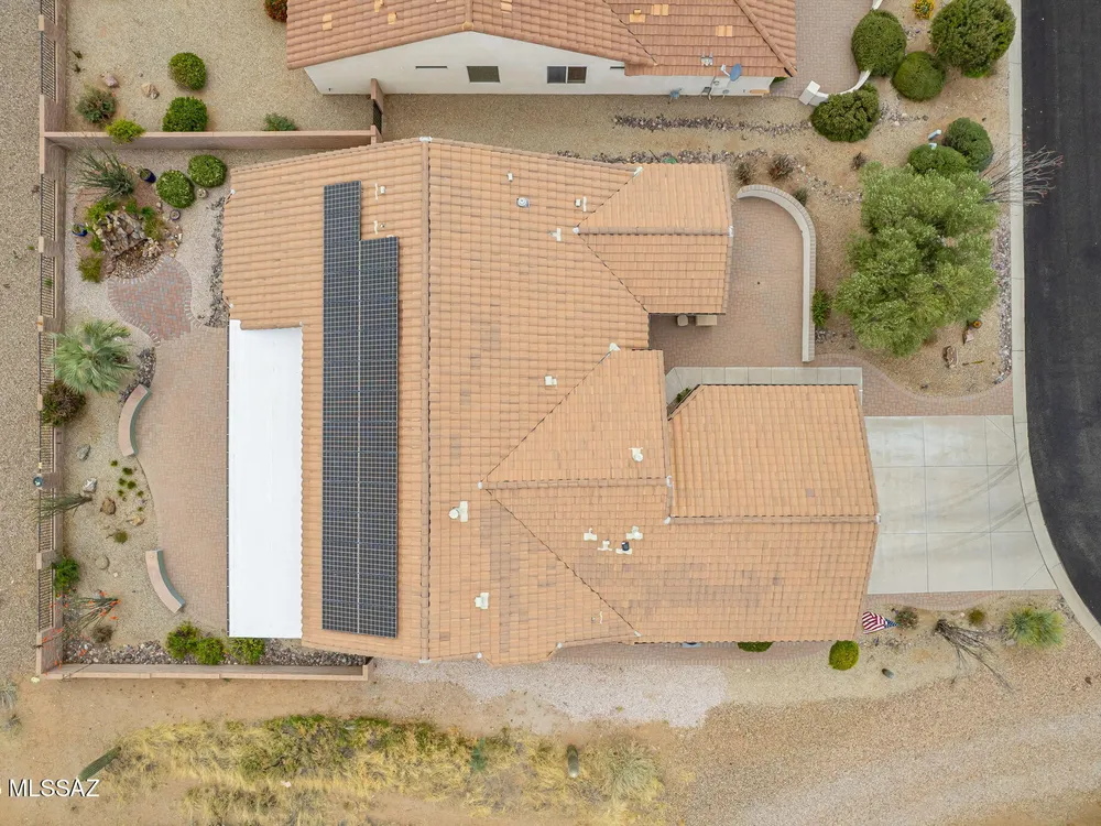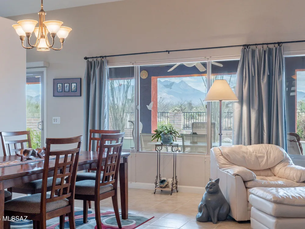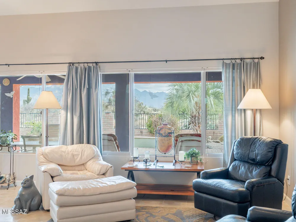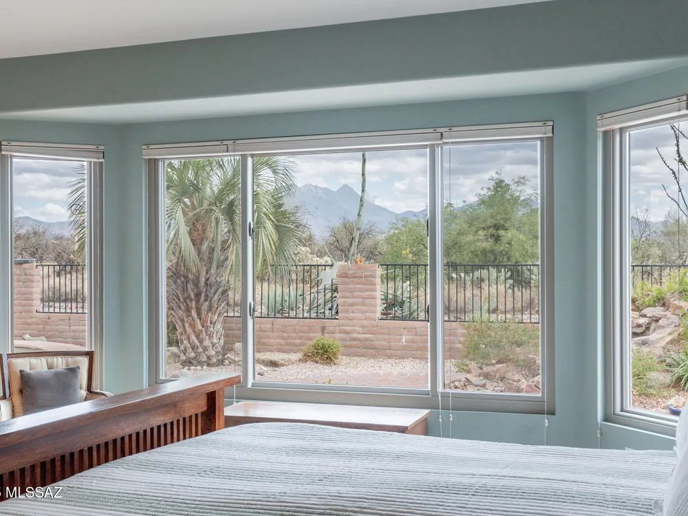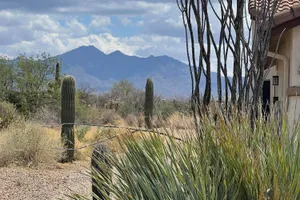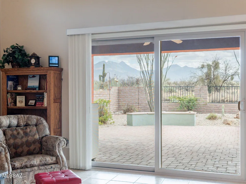 Unobstructive Views and Privacy AND a lovely home. Montana model with Tile floors, beautiful wood floor in the office/den and warm carpet in the bedrooms. New Anderson windows installed in most locations. Home backs on the Santa Rita Experimental Range with common area to the side. You can not see the neighbor next door as they made no windows on that side. Water feature added in 2024 makes the back patio a joyous place to relax. The kitchen boasts a gas range and beautiful granite countertops. Cul-de-sac location with no additional homes to be built around it. There is currently a cat in residence. Gutters keeps the water away from the base of the home. Roof maintenance performed 2 yrs ago. New Heat and A/C Units (2) installed 2023. Garage attic access w/flooring. COE after 12/15/25