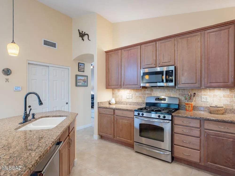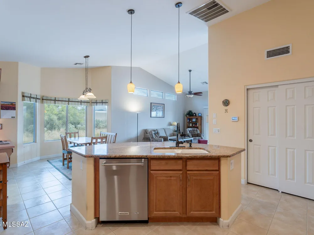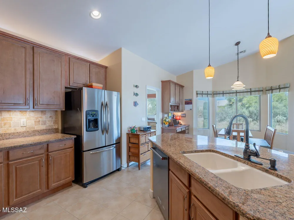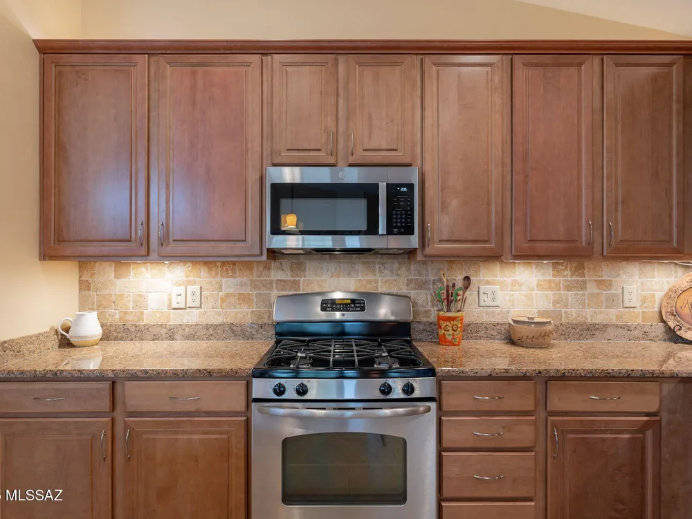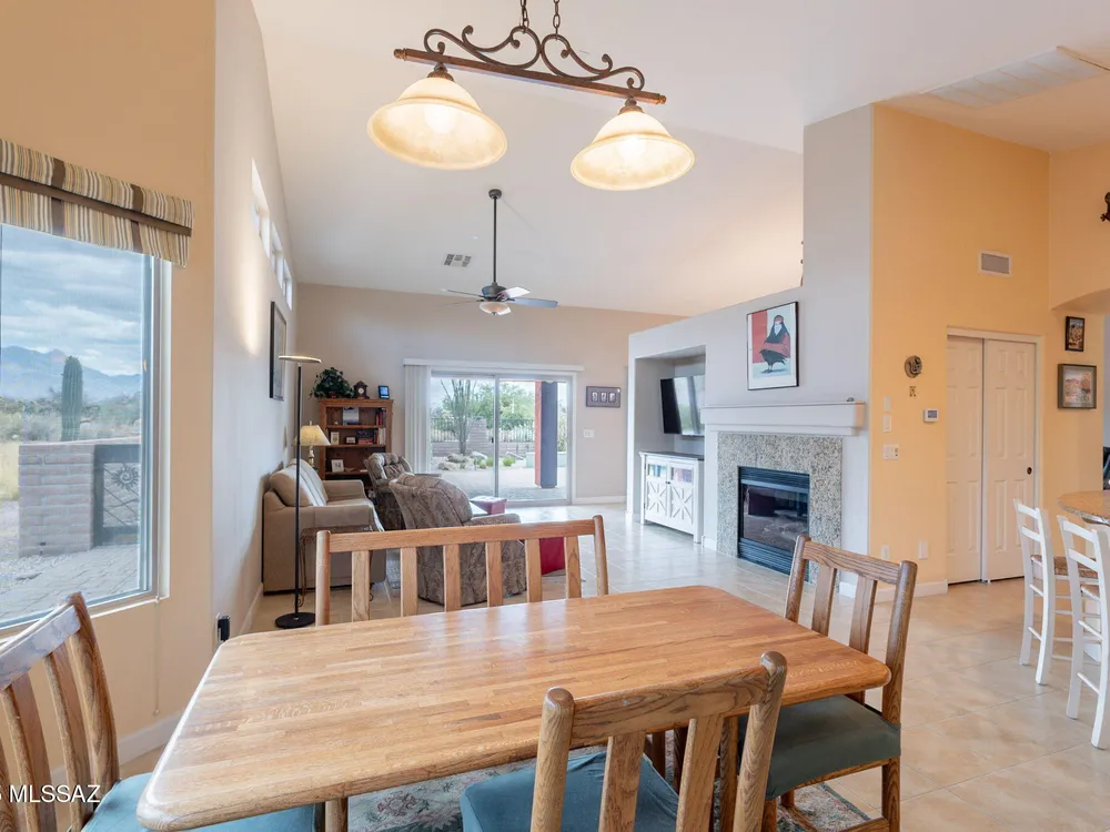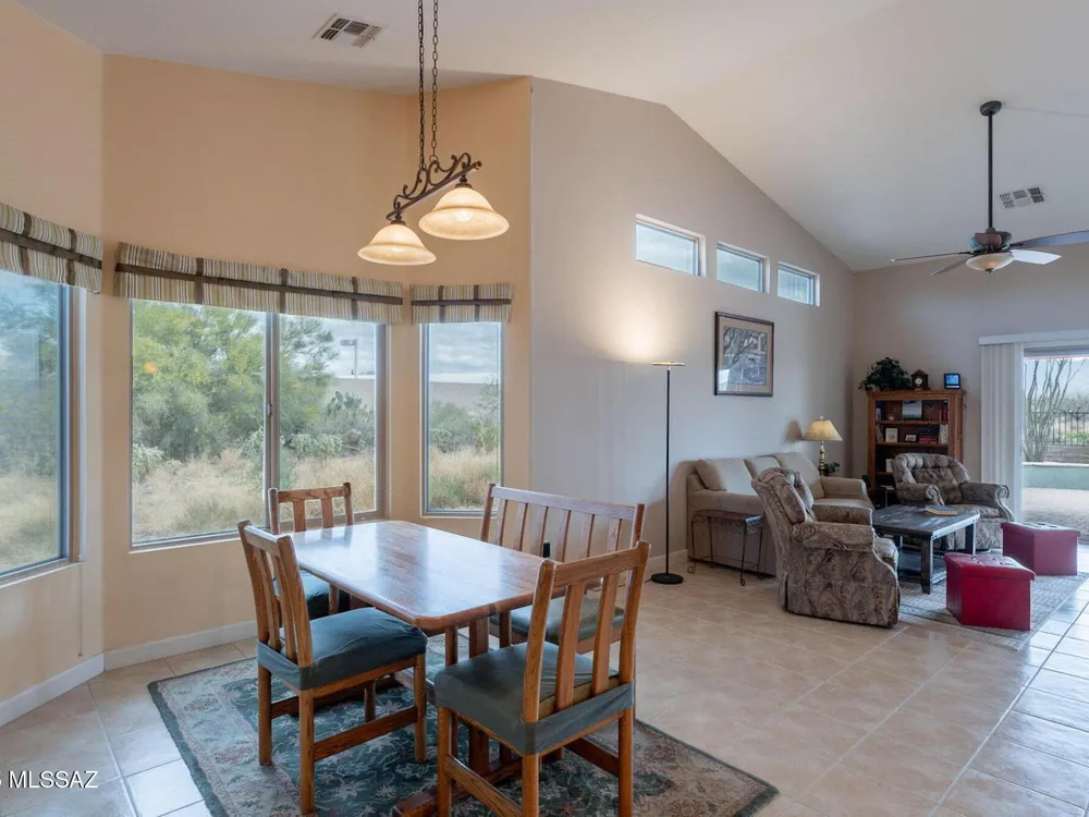 Unobstructive Views and Privacy AND a lovely home. Montana model with Tile floors, beautiful wood floor in the office/den and warm carpet in the bedrooms. New Anderson windows installed in most locations. Home backs on the Santa Rita Experimental Range with common area to the side. You can not see the neighbor next door as they made no windows on that side. Water feature added in 2024 makes the back patio a joyous place to relax. The kitchen boasts a gas range and beautiful granite countertops. Cul-de-sac location with no additional homes to be built around it. There is currently a cat in residence. Gutters keeps the water away from the base of the home. Roof maintenance performed 2 yrs ago. New Heat and A/C Units (2) installed 2023. Garage attic access w/flooring. COE after 12/15/25
