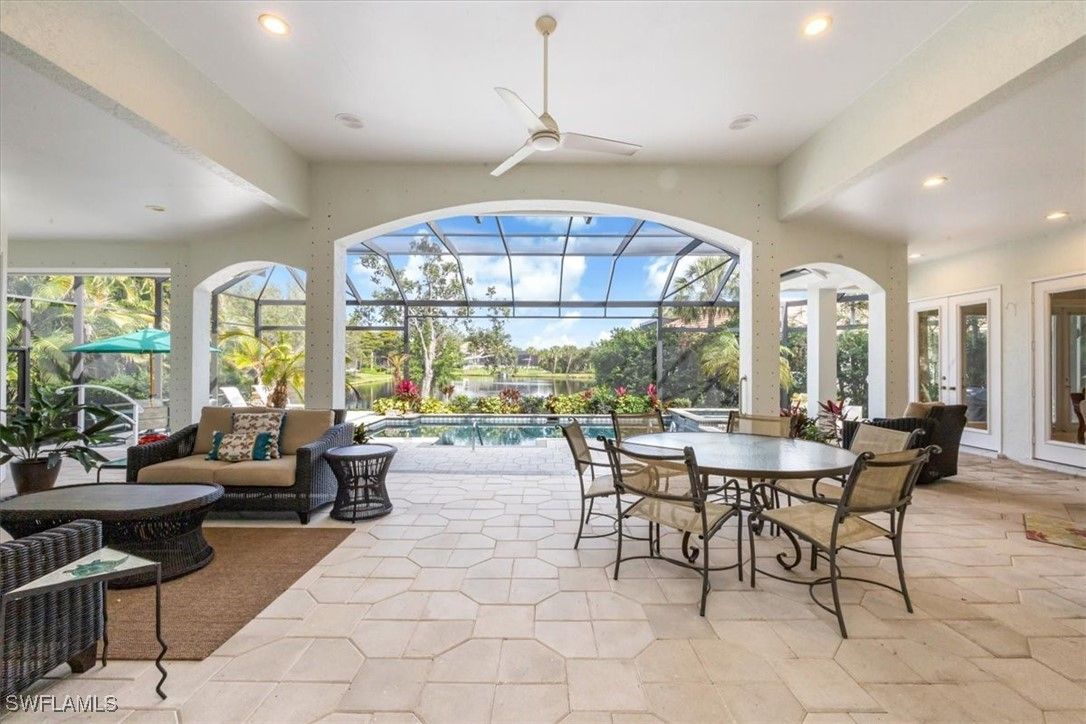 Situated on an oversized lakefront lot, this exceptional residence offers over 3,200 square feet of thoughtfully designed living space with three bedrooms, an office/den, and three and a half baths. Designed for both everyday comfort and effortless entertaining, the home features a sparkling pool and spa complemented by a large, covered seating area and a picture window screen enclosure that frames tranquil water views. Beautifully remodeled kitchen featuring custom cabinetry, Taj Mahal quartzite countertops, paneled cabinet-front appliances, and an elegant stone backsplash. The expansive primary suite serves as a private retreat, complete with a walk-in closet, dual-sink vanity, soaking tub, and walk-in shower. Two generously sized guest suites each offer their own en suite bathrooms and ample closet space, ensuring comfort and privacy for guests. Recent improvements include a new roof and air conditioning systems installed in 2020, along with a brand new hot water heater added in 2025, providing peace of mind for years to come. Residents of Bonita Bay have access to one of the most amenity-rich communities in the area, enjoying access to a private Gulf-front beach park, a full-service marina with direct access to Estero Bay and the Gulf of America, and more than 12 miles of scenic walking and biking trails winding through nature preserves and along the waterfront. The community also features multiple parks, riverfront promenades, kayak and canoe launches, and a robust calendar of social activities. Optional membership opportunities are available at the Bonita Bay Club, offering world-class amenities including championship golf courses, tennis and pickleball programs, a state-of-the-art fitness center, spa services, fine and casual dining, and an active lifestyle community. Centrally located, Bonita Bay places you just minutes from pristine beaches, upscale shopping, dining, and entertainment, while still offering a serene, resort-style atmosphere. This is a wonderful opportunity to experience the best of Bonita Springs living in one of its most sought-after communities.