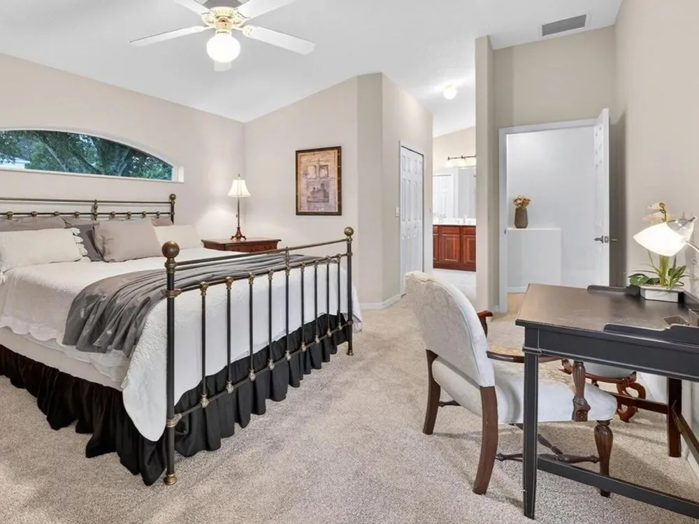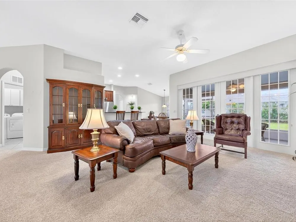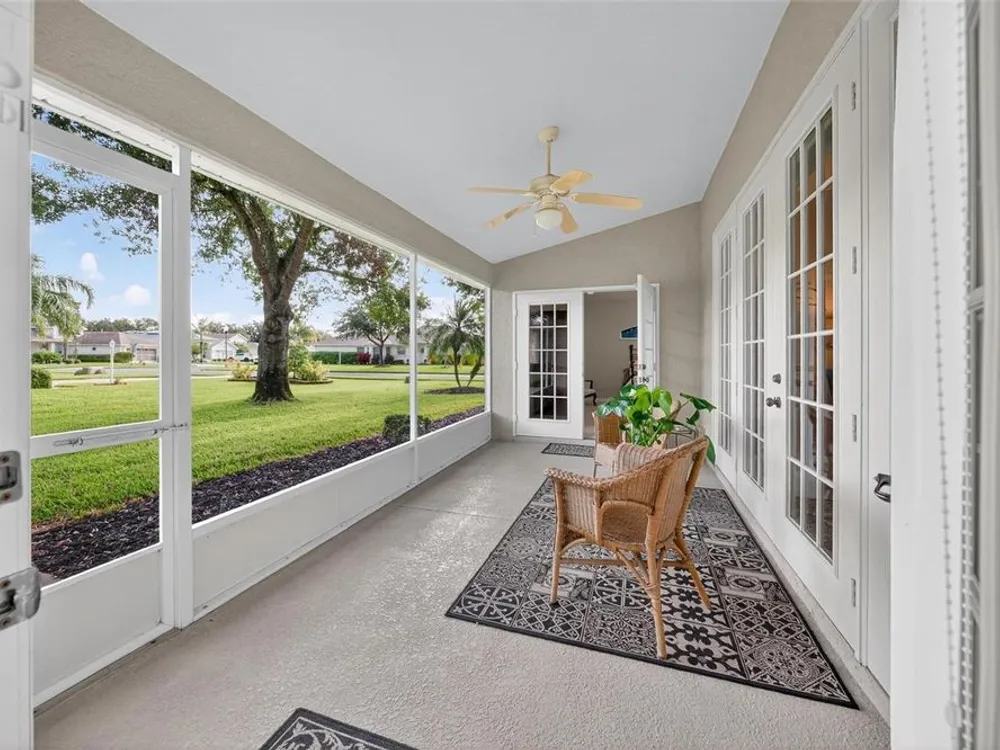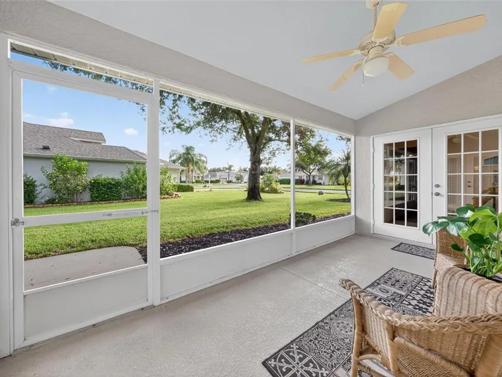 Beyond the quiet gates of Legacy of Leesburg — where oaks frame winding streets and life moves at a more relaxed pace — you’ll find a home designed for both inspiration and ease. At 27402 Desert Rose Court, morning light filters through plantation shutters onto real wood cabinetry and granite countertops — the heart of a kitchen ready for the smell of fresh morning coffee or tea that you can enjoy on your private screened in patio. The generous primary suite keeps its own serene rhythm with double vanities, a spacious walk-in closet, and private access to the screened patio — where mature trees sway and your view remains uninterrupted by common walking trails. A vaulted ceiling bonus room with French doors offers endless possibility: an artist’s studio, a writer’s retreat, or a private office for working from home in comfort or even more room for friends and family to visit. Practical updates mean you can settle in with confidence: new TRANE HVAC system (2025), new water heater (2025), new washer and dryer (2025), brand-new plush carpet (2025) and a roof just about three years young. Many will love the central vaccum system. Low HOA fees quietly handle the details — lawn care, cable TV, internet, and even secure boat and RV storage — so your days stay free for what matters most. Legacy of Leesburg is a private, non-golf community — meaning no day guests or golf crowds — yet you’re only minutes from several beautiful courses should you wish to play. Inside the gates, a resort-style zero-entry pool and spa, pickleball, tennis, bocce, softball, arts and crafts, and a lively clubhouse calendar keep life engaging and connected. All of this less than 30 minutes from The Villages, about an hour to Orlando’s airport and world-class attractions, and under two hours to either coast. Natural gas is available, making outdoor cooking and entertaining easy. Here, everyday life feels peaceful yet full of possibility — the perfect balance for a new chapter in the Florida sunshine.