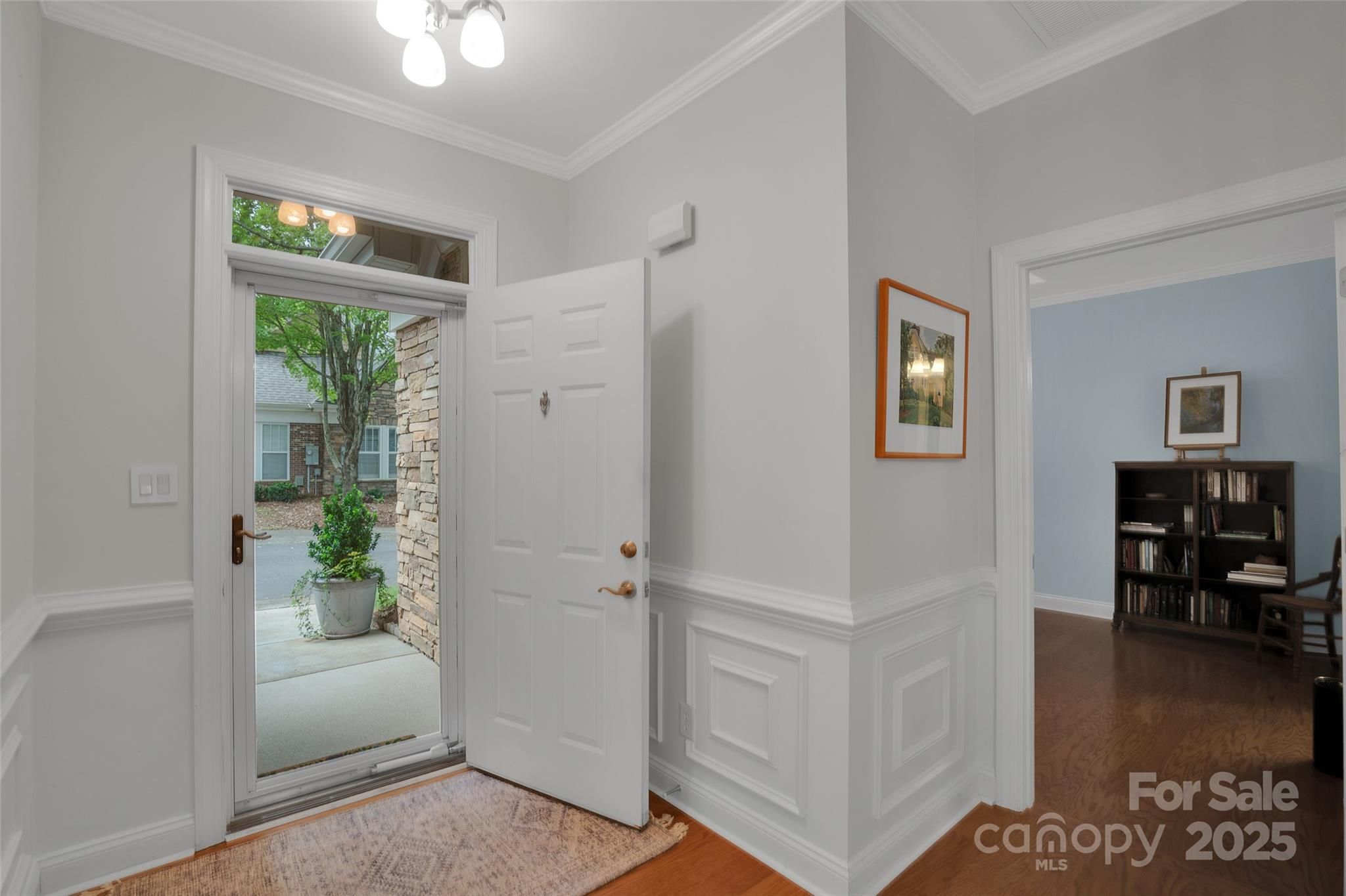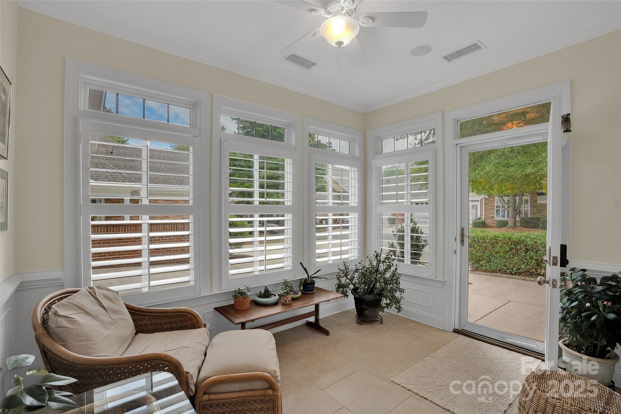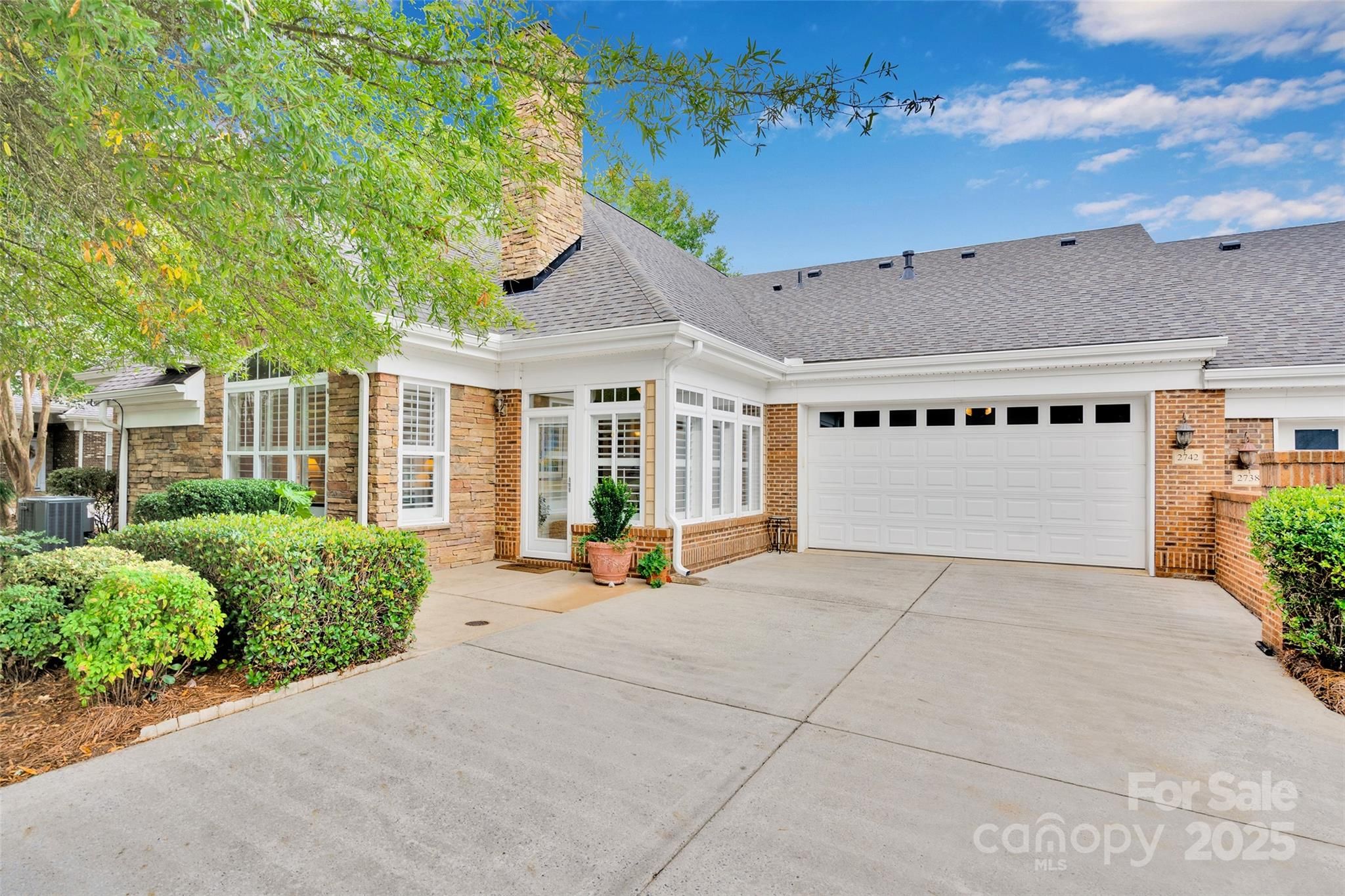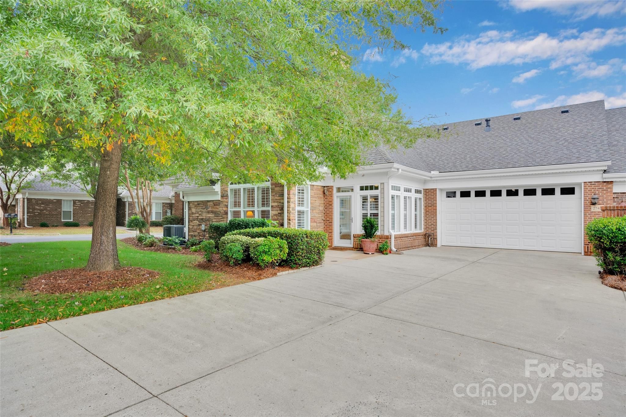 Welcome to this beautiful, well-maintained Patio Home that combines comfort and elegant style. This home features 9 foot ceilings throughout, with a 10' tray ceiling in the Dining Room area and Primary Bedroom. There is a 13' Cathedral ceiling in the Great Room. Cozy Gas logs Fireplace in Great Room. Tons of natural light. Upgrades include hardwood floors, amazing custom organizers in closets, Custom Plantation shutters. Also note, new A/C, new microwave, and new roof in 2025. Induct HVAC UV Air Purifier, New hot water circulator, Gas Fireplace rebuild and New Refrigerator in 2024. Stylish newer paint in 2023. Kitchen has 42" white stylish cabinets, granite Counter Tops and tile Backsplash, generous counter space for all your gourmet adventures. The luxurious owner suite is adorned with triple windows, with Plantation blinds, and has a Tray ceiling giving you the feel of elegance and charm. Primary bathroom has a double sink vanity, soaking tub, separate (seated)shower. Enjoy your morning coffee or relax with a good book in the Sunroom. Fully finished, painted 2-car oversized garage, automatic door opener and Garage Keypad entry. Minutes to Matthews Township Shopping Center shopping, dining, and conveniently located to I-485 this home offers the perfect balance of tranquility, accessibility, and low maintenance living. Bella Sera is an active community with an amazing clubhouse, outdoor pool, pond, walking trails and more! You can not find a better well maintained place to call home!