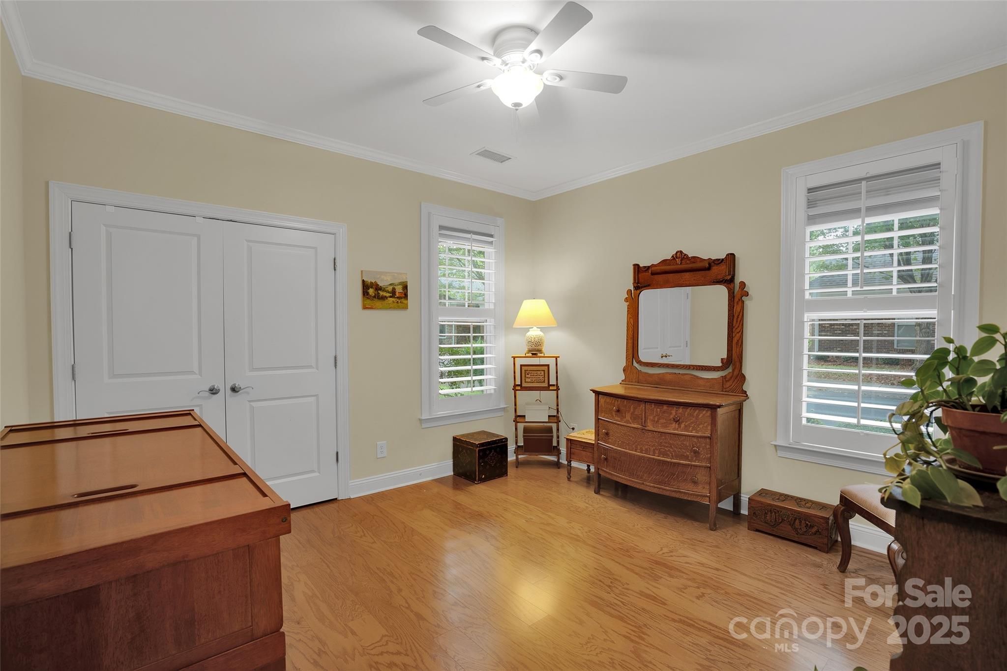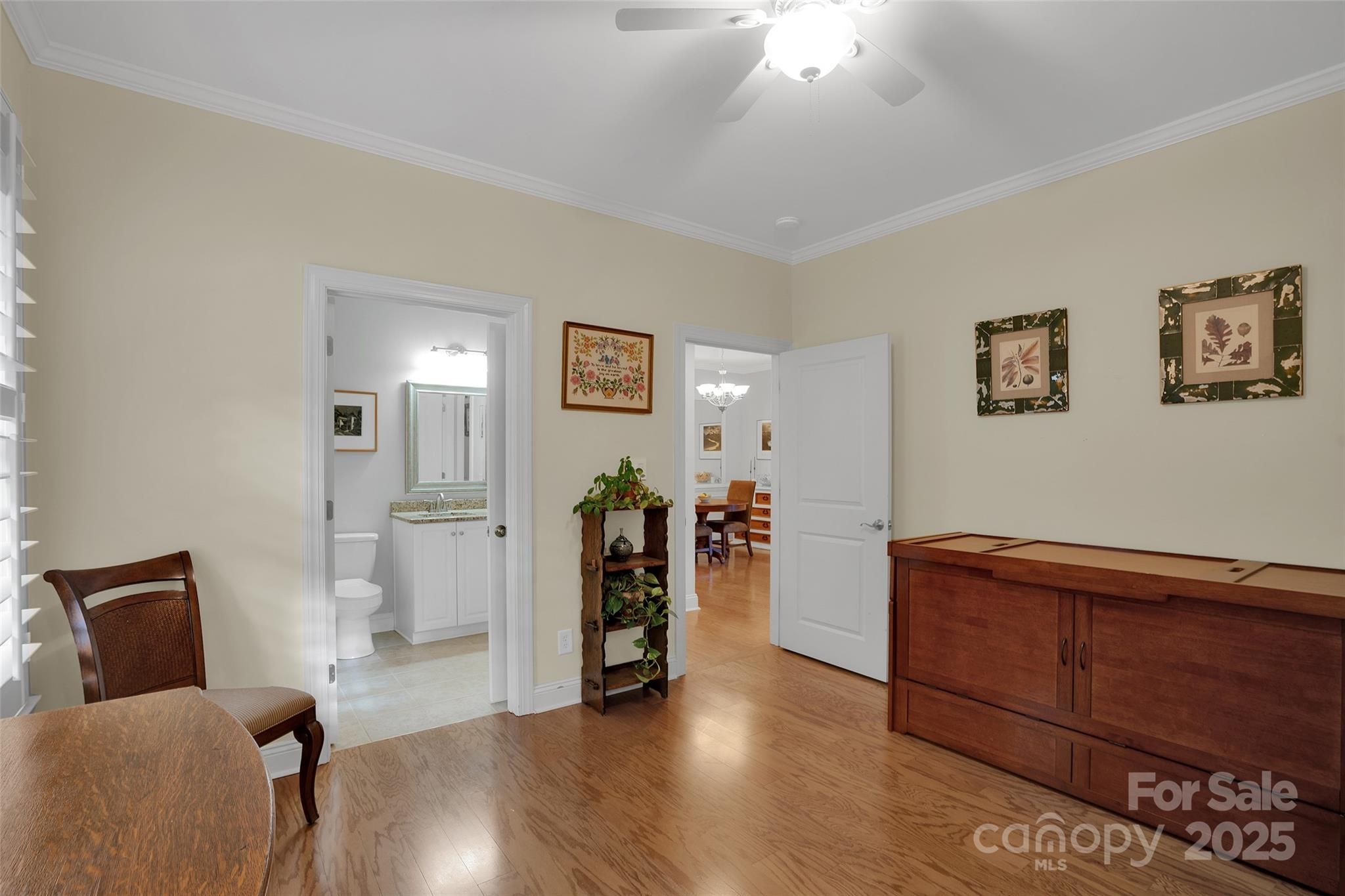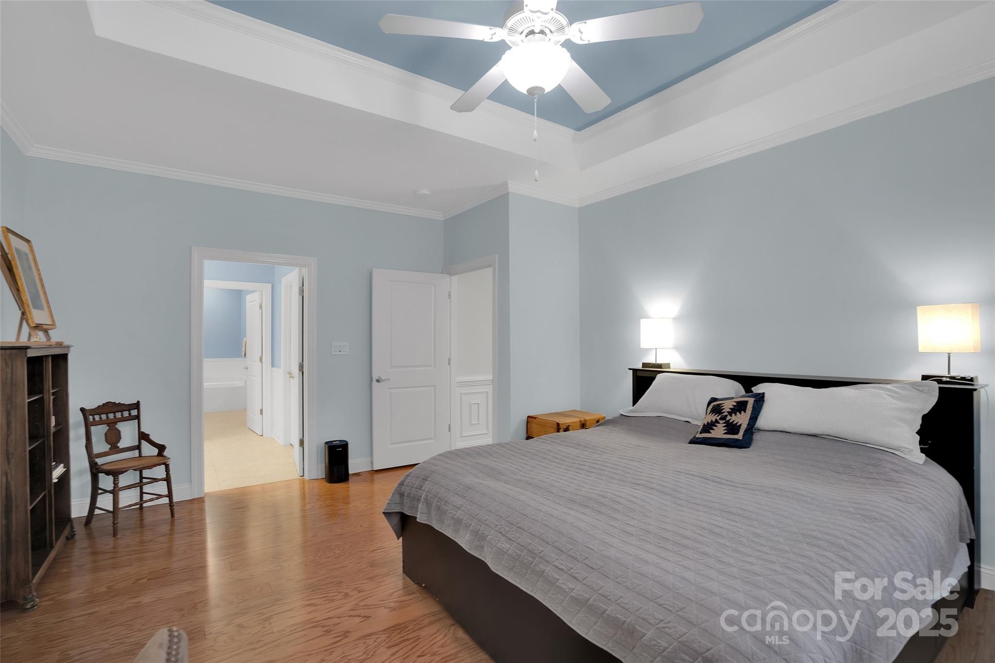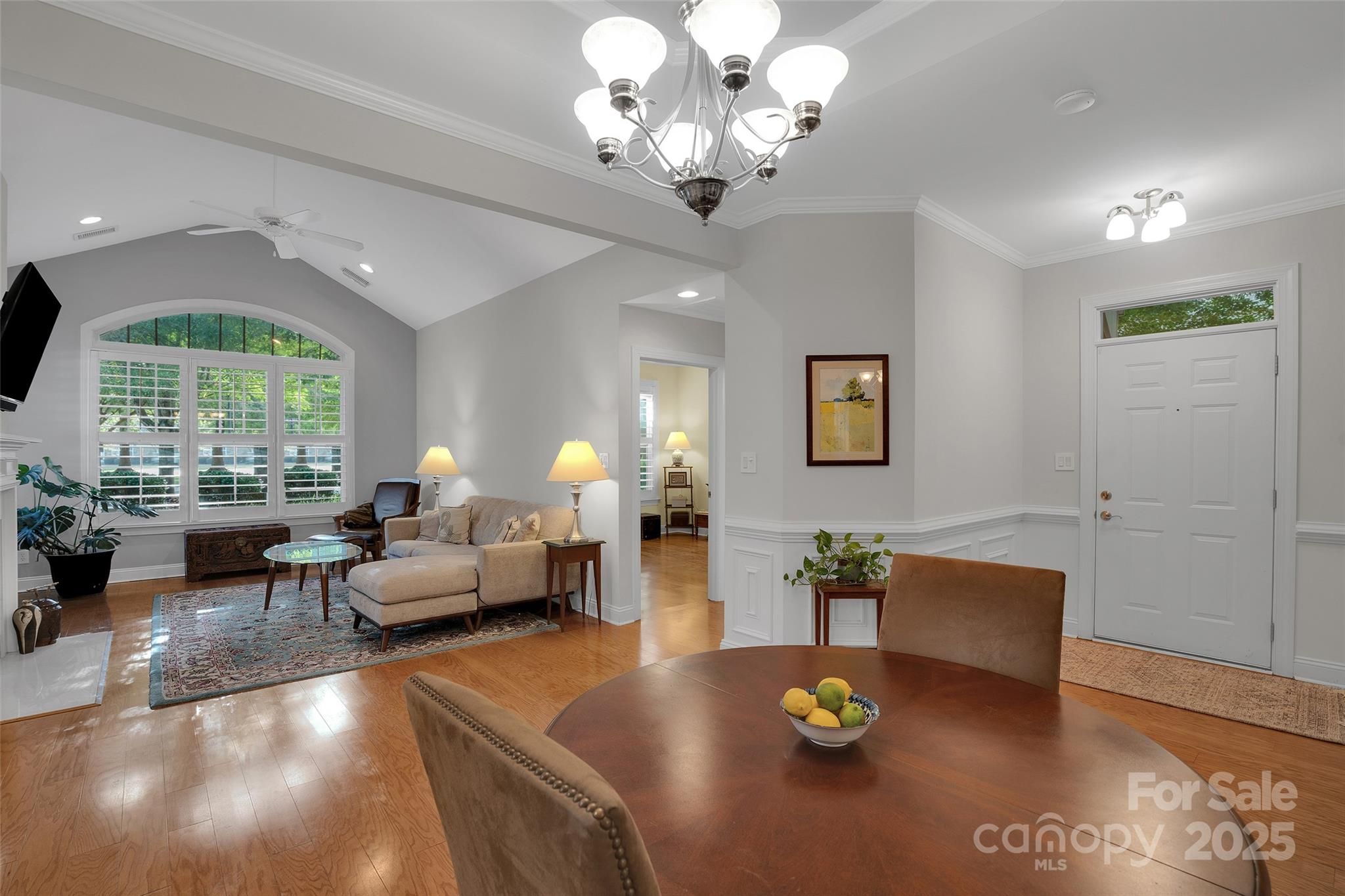 Welcome to this beautiful, well-maintained Patio Home that combines comfort and elegant style. This home features 9 foot ceilings throughout, with a 10' tray ceiling in the Dining Room area and Primary Bedroom. There is a 13' Cathedral ceiling in the Great Room. Cozy Gas logs Fireplace in Great Room. Tons of natural light. Upgrades include hardwood floors, amazing custom organizers in closets, Custom Plantation shutters. Also note, new A/C, new microwave, and new roof in 2025. Induct HVAC UV Air Purifier, New hot water circulator, Gas Fireplace rebuild and New Refrigerator in 2024. Stylish newer paint in 2023. Kitchen has 42" white stylish cabinets, granite Counter Tops and tile Backsplash, generous counter space for all your gourmet adventures. The luxurious owner suite is adorned with triple windows, with Plantation blinds, and has a Tray ceiling giving you the feel of elegance and charm. Primary bathroom has a double sink vanity, soaking tub, separate (seated)shower. Enjoy your morning coffee or relax with a good book in the Sunroom. Fully finished, painted 2-car oversized garage, automatic door opener and Garage Keypad entry. Minutes to Matthews Township Shopping Center shopping, dining, and conveniently located to I-485 this home offers the perfect balance of tranquility, accessibility, and low maintenance living. Bella Sera is an active community with an amazing clubhouse, outdoor pool, pond, walking trails and more! You can not find a better well maintained place to call home!