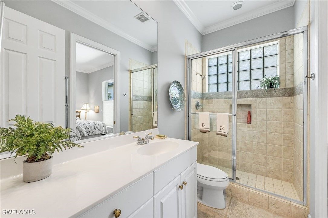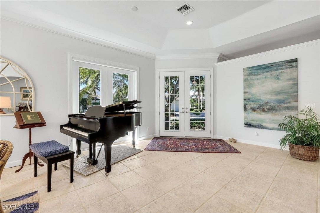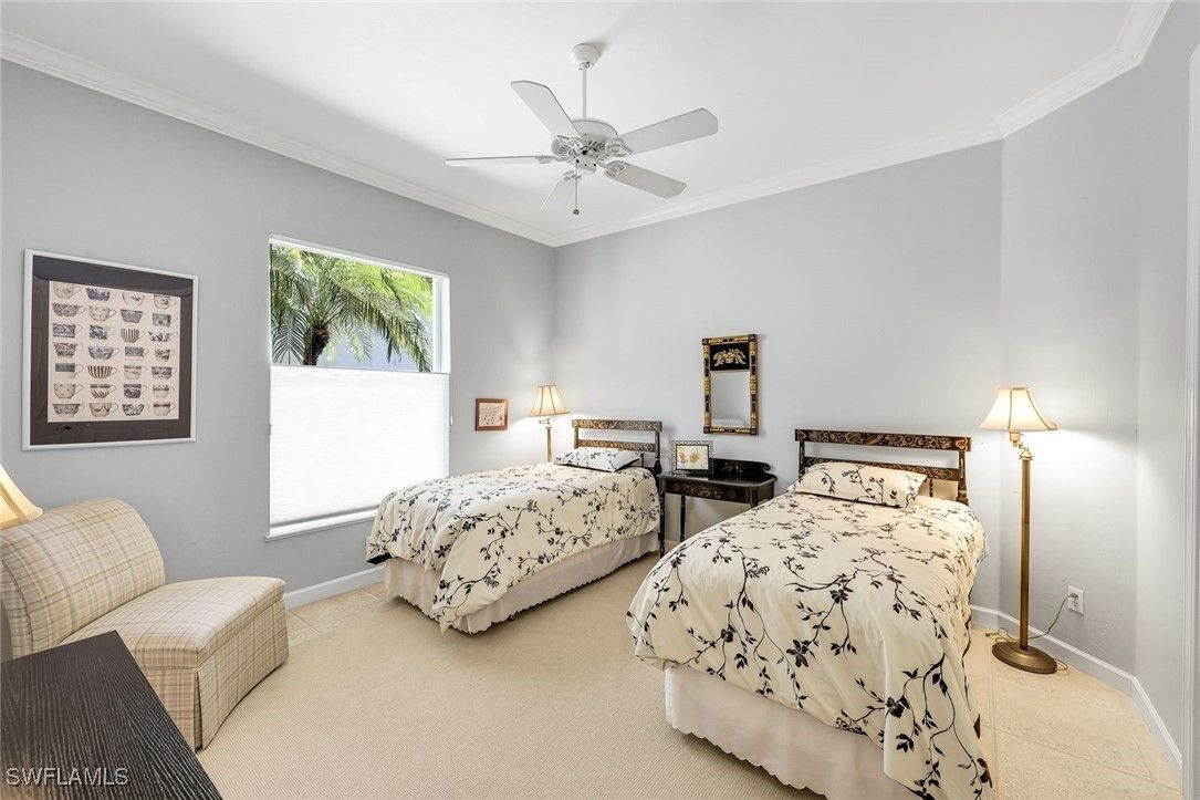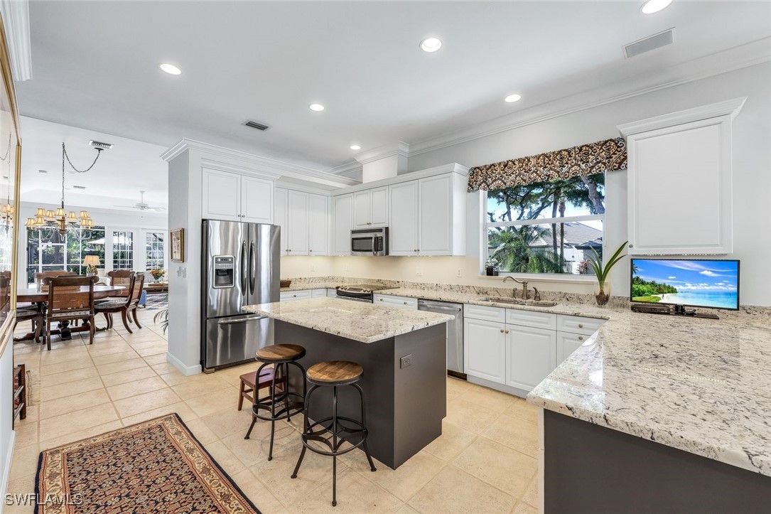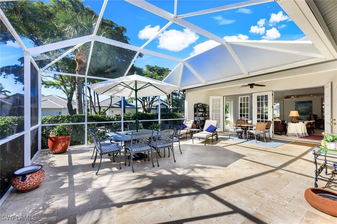Discover this beautifully maintained detached villa in the coveted Arbor Strand neighborhood of Bonita Bay, offering 2 bedrooms plus a den, an inviting open living–dining layout, and a truly stunning outdoor living space crafted for effortless Florida living. Perfectly situated within an easy stroll to the community pool, the home enjoys a rare blend of convenience and privacy—close enough to feel like an extension of your own backyard, yet positioned just far enough away to preserve peaceful, undisturbed relaxation. Inside, the generous living and dining areas flow gracefully together, leading to a tastefully updated kitchen with refreshed cabinetry, newer appliances, elegant finishes, and French doors that bathe the space in natural light. The den provides valuable flexibility as an office, media room, or even an additional bedroom when guests are in town. Both bedrooms are designed with comfort and privacy in mind, creating a warm and welcoming atmosphere throughout. Step outside to an exceptional outdoor retreat. The reimagined outdoor kitchen (2021) showcases beautiful granite surfaces, built-in storage, upgraded lighting, and an outdoor refrigerator—perfect for entertaining. This all overlooks a beautifully repaved lanai finished in timeless travertine, framed by lush landscaping and thoughtfully designed landscape lighting that elevates the setting day and night. Whether hosting friends or enjoying a quiet morning coffee, the outdoor space feels like a private sanctuary. This villa has been cared for with meticulous attention to detail. A high-performance roof was installed in 2018 with upgraded materials and attachment methods, complemented by new gutters and downspouts. The main air-conditioning system was replaced with a high-efficiency Carrier unit, and the ductwork was enlarged to optimize airflow. Additional enhancements include a newer wine cooler, updated washing machine, and a fully air-conditioned garage with insulated doors and added attic insulation (2024). The welcoming front entry was expanded with new pavers, and the insulated double-pane glass in the front doors was replaced in 2024, contributing to the home’s fresh, well-kept appearance. Set within one of Bonita Bay’s most desirable enclaves, residents enjoy access to miles of scenic walking and biking paths, a private beach park with a stunning new beach club building, a full-service marina, and optional memberships offering championship golf, tennis, pickleball, fitness, and dining. All of this is just a short drive from RSW Airport, making this a wonderful opportunity to own a beautifully maintained villa in the heart of Bonita Bay.