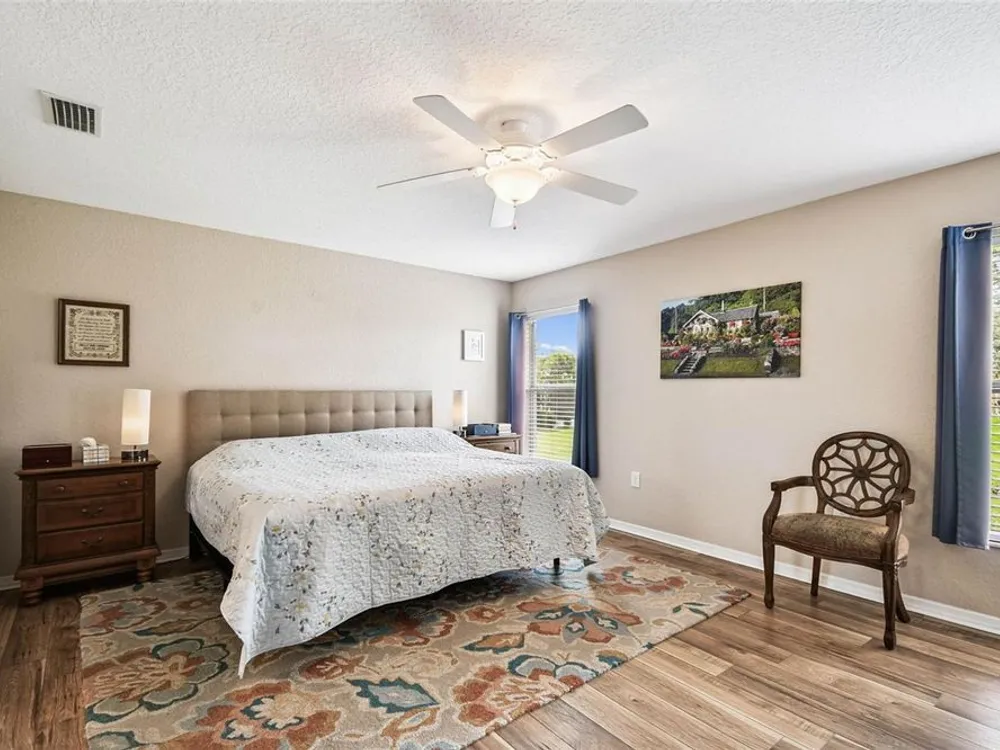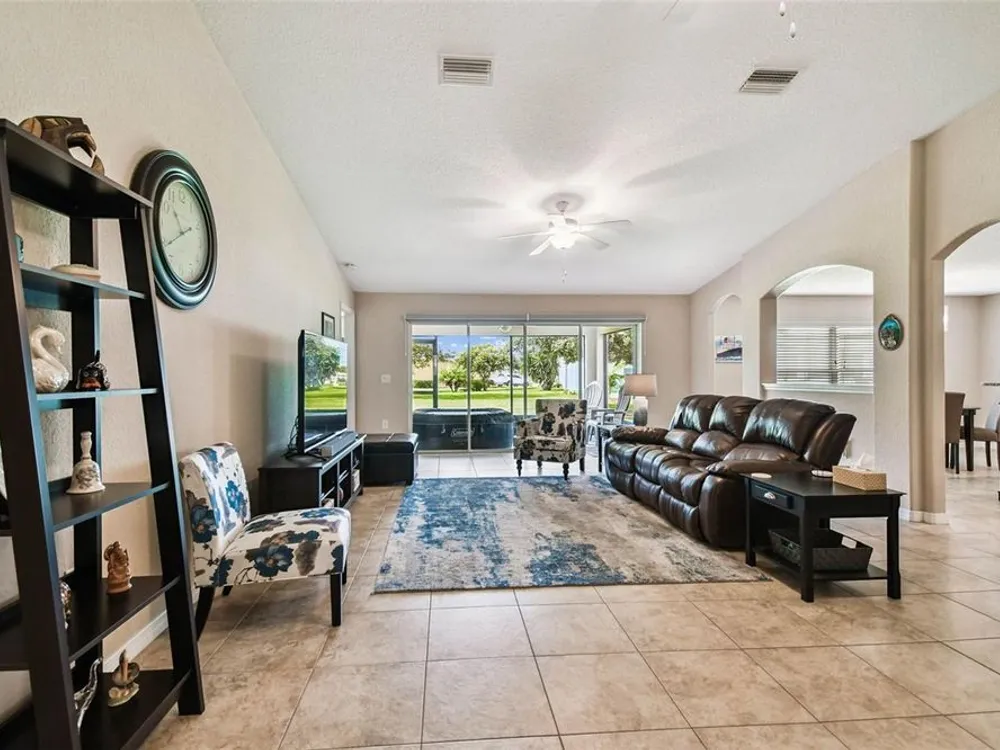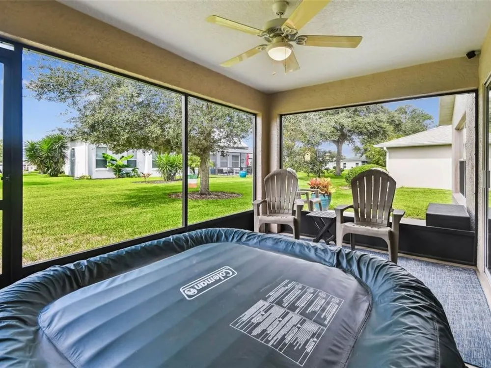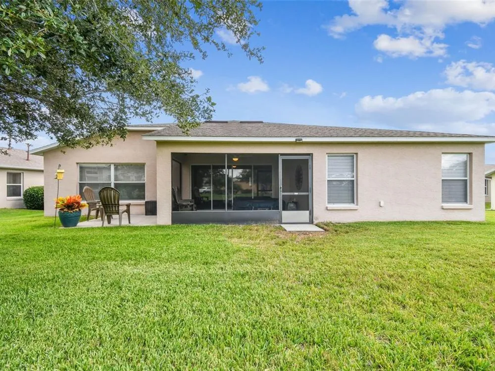 VALUE PRICED! This stunning Monarch 2 model is located in one of Florida’s most sought-after 55+ communities and is packed with comfort, upgrades, and space to enjoy the good life. Step into the bright and welcoming foyer, featuring an expanded entryway with plantation shutters and a convenient coat closet. Inside, you’ll find an open-concept layout with no carpet—just stylish, easy-care flooring throughout the entire home. The spacious living room opens to a private, screened lanai with peaceful views and no rear neighbors, making it the perfect spot to relax or entertain. The well-appointed kitchen boasts granite countertops, a tile backsplash, stainless steel appliances, upgraded cabinetry with pull-out drawers, and a large walk-in pantry. There’s also a cozy breakfast nook ideal for casual dining or morning coffee. Retreat to the primary suite, where you’ll find a generous master bathroom with dual sinks, a walk-in shower, and two linen closets for extra storage. The garage offers plenty of functional space, complete with a dedicated golf cart area and screened garage door for added ventilation and convenience. Beyond the home, the HOA covers an impressive list of services including internet, cable, lawn care, a resort-style pool and spa, and an on-site manager. There’s even a full-time activities director to help you make the most of the community lifestyle. Enjoy amenities such as a fitness center, bocce ball, tennis courts, a billiards room, library, card room, horseshoes, scenic walking trails, wide-open green spaces, and on-site RV storage.