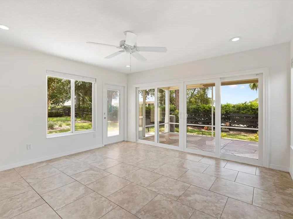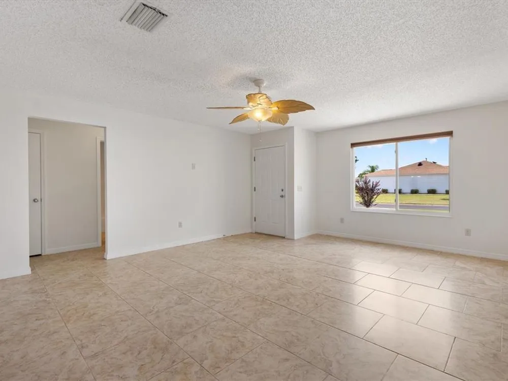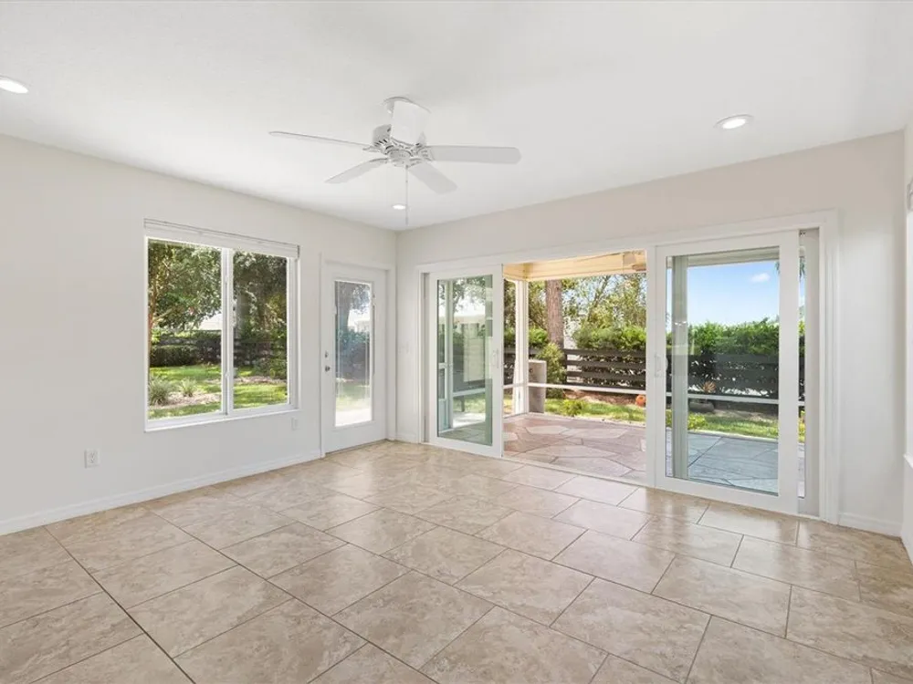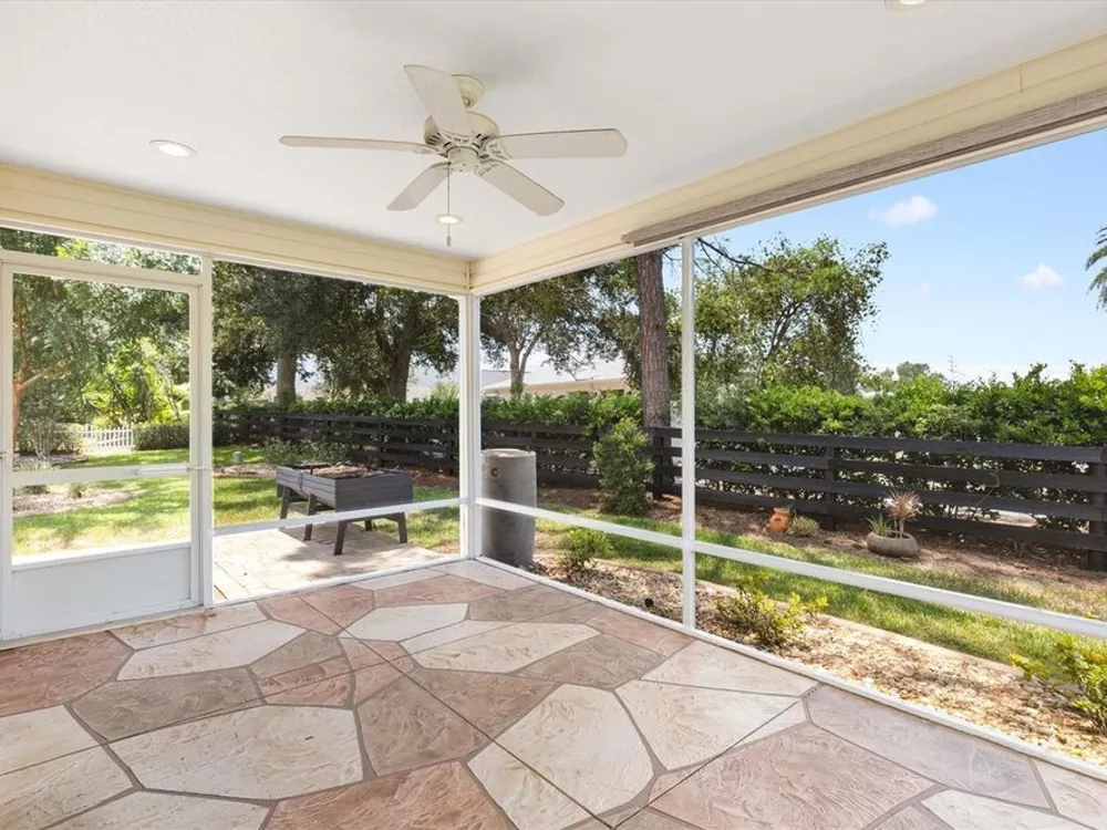 One or more photo(s) has been virtually staged. **BOND PAID* *NO REAR NEIGHBORS, and *NO KISSING LANAI for exceptional privacy and peaceful living. **UPDATES & FEATURES INCLUDE: *ROOF 2020 *HWH 2014 *HVAC 2014 *Updated KITCHEN w/Solid Wood Cabinetry to the ceiling *Florida Room Expansion *Living Room Bump-Out–84 sq ft *New Hard Roof Bird Cage *Whole-House Water Filtration System with Softener & Reverse Osmosis *Fresh Interior Paint July 2025 *New Attic Fan & Aroshield Multi-Layer Insulation March 2024 *Gas & Electric Options Available *Landscaping by Village Palms 2022 *Concrete Stamped Driveway, Birdcage & outdoor Patio. See attachment for full list of Upgrades & Improvements. A MUST SEE! This charming Stetson III/Amarillo Designer Home is nestled on a UNIQUE, PARK-LIKE OVERSIZED LOT in the highly desirable Village of Alhambra. The 2021 CUSTOM KITCHEN is a true showstopper—featuring solid wood, ceiling-height cabinetry with soft-close drawers and doors, and granite countertops throughout. A solar tube in the main living area floods the space with beautiful natural light. The popular SPLIT FLOOR PLAN provides ideal privacy for guests, while the CUSTOM EXPANDED Florida Room under air adds an additional 210 sq ft of year-round living space. The stamped concrete driveway and patio create stunning curb appeal and a polished outdoor area for entertaining or relaxing. Hard Roof 150 sq ft Birdcage added an additional area to kick back & relax in your private backyard. Whether indoors or out, this home offers the perfect blend of comfort, quality, efficiency, and resort-style living in one of the most sought-after Villages locations. Close to The Savannah Center, Glenview Country Club, Villages Hospital and all the shopping you need 5 minutes away! This immaculate move-in-ready gem won’t last—schedule your private tour today! *Seller will consider Long Term rental*