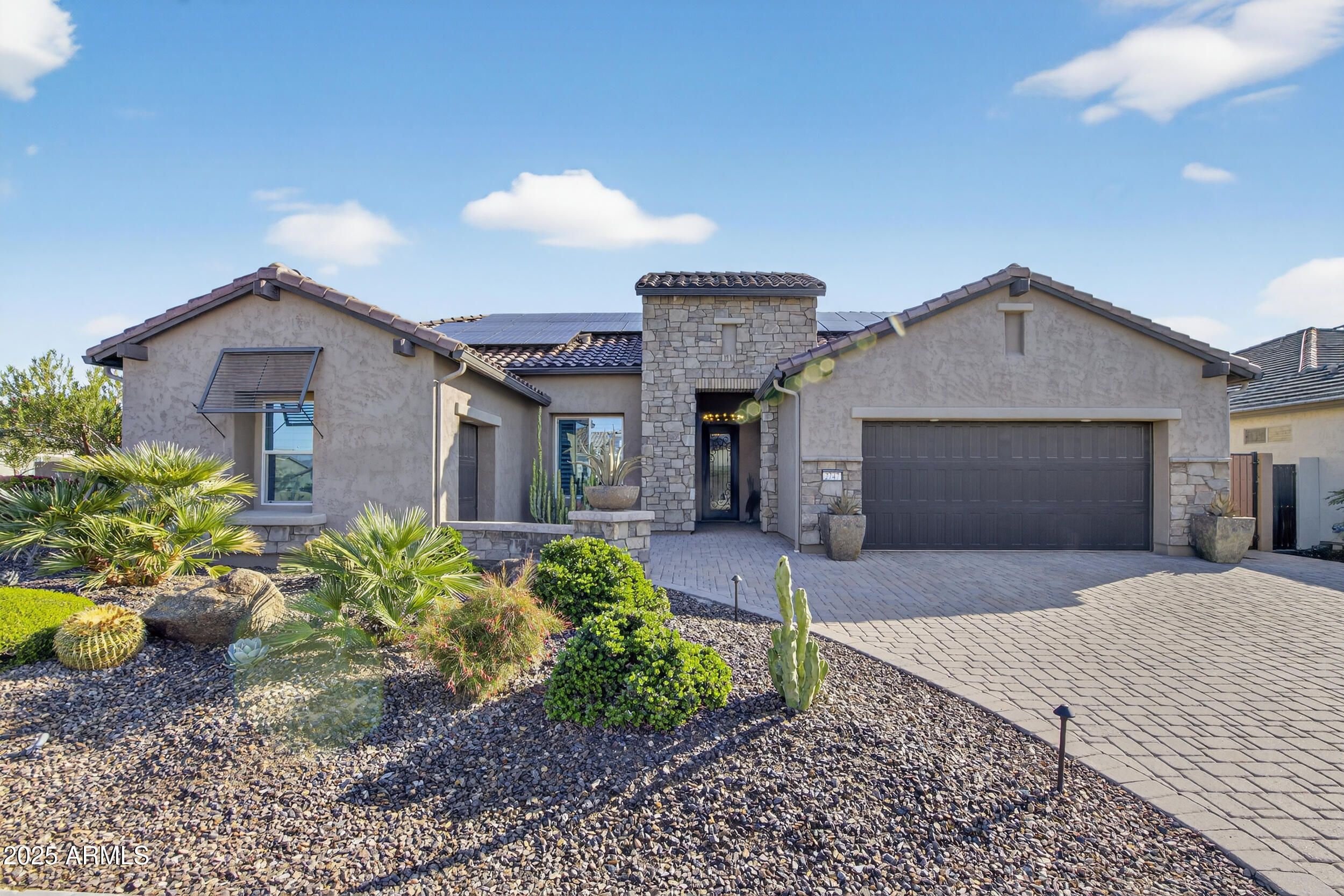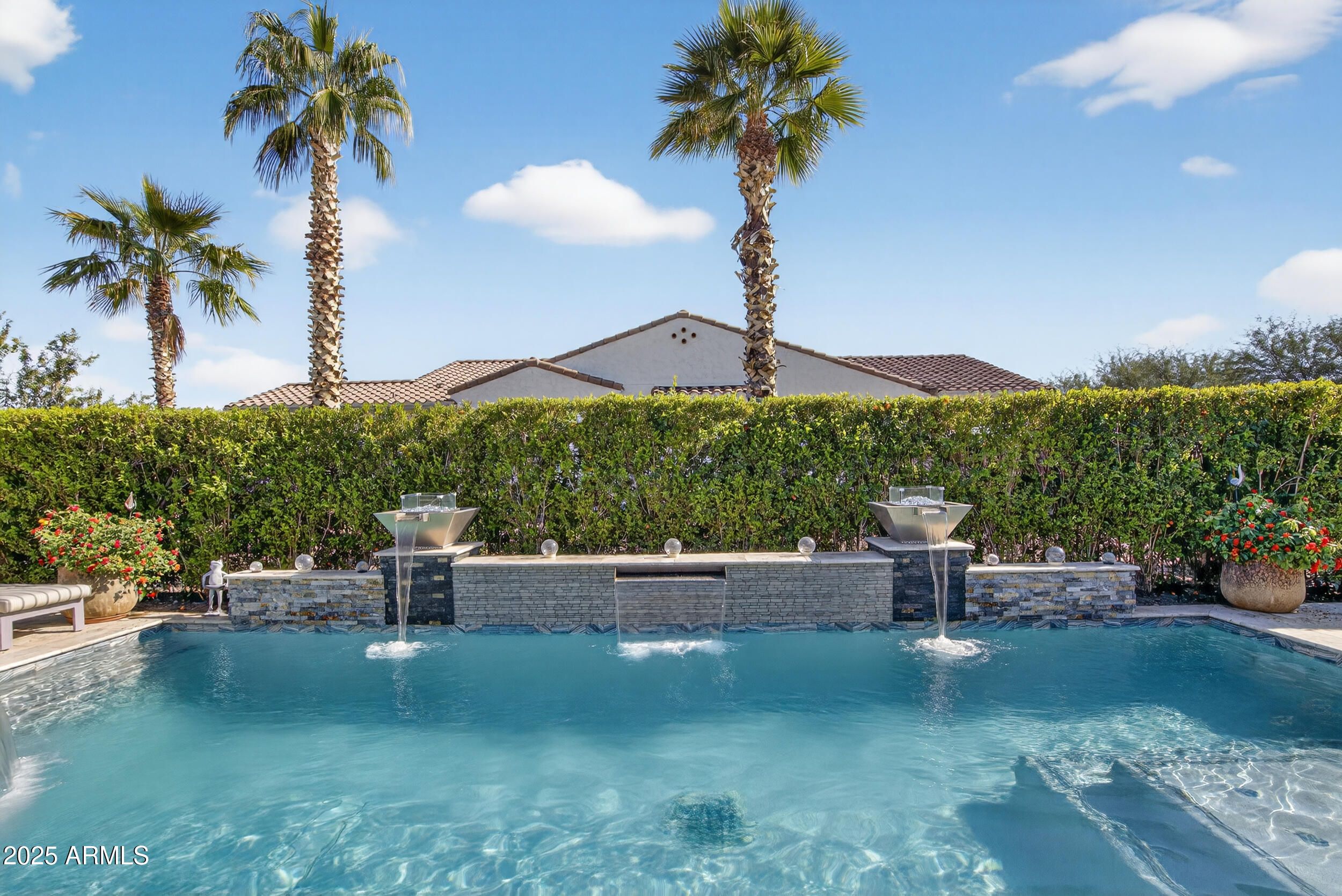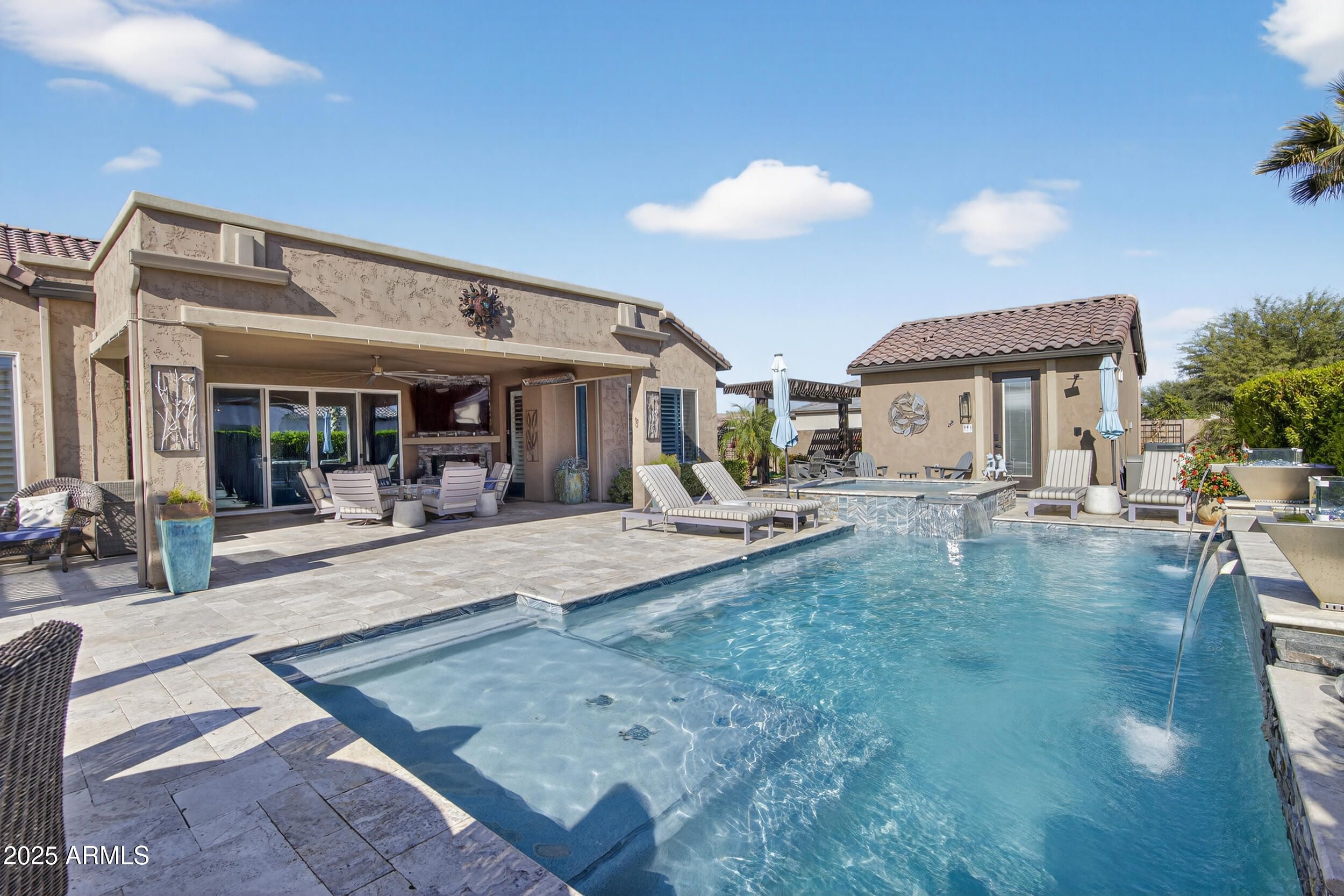 Discover exceptional resort-style living in this highly upgraded Treviso model home located in the award-winning PebbleCreek active adult community. This rare offering includes a detached casita, private pool and spa, owned solar, the perfect blend of luxury, comfort, and functionality. This home features an open living area, kitchen and an amazing custom bar, perfect for entertaining and gathering with guests. The custom pool and elevated spa, multiple seating areas, and mature desert landscaping create your own serene oasis—ideal for entertaining or quiet evenings under the Arizona sky. Inside, the popular Treviso floorplan showcases an elegant open-concept design with premium upgrades thr and enhanced architectural details. The gourmet kitchen features a spacious island, abundant storage, and ideal flow for hosting family and friends. The detached casita offers the perfect guest retreat with its own bedroom and bathroom providing comfort and privacy for visitors. The extended garage delivers extra space for vehicles, a golf cart, or workshop needs. Energy-efficient owned solar adds tremendous value, reducing monthly utility costs while supporting sustainable living. Living in PebbleCreek, you'll enjoy world-class amenities including 3 championship golf courses, resort pools, state-of-the-art fitness centers, 36 pickleball and tennis courts, creative arts studios, on-site restaurants, and a full calendar of clubs and events all within a secure, beautifully maintained 55+ master-planned community. This Treviso home offers unmatched upgrades, indoor-outdoor living, and premium features rarely found in one property. A true PebbleCreek gemmove-in ready and designed to impress.