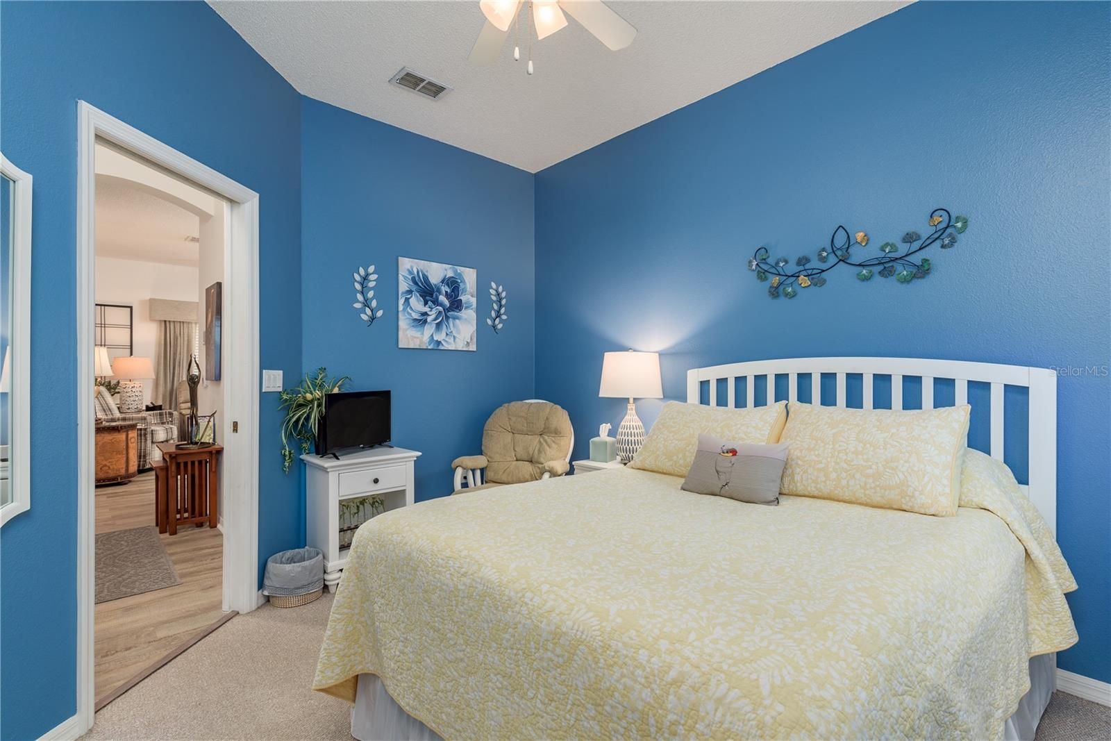 - Ceiling Fan(s), Eat-in Kitchen, High Ceilings, Kitchen/Family Room Combo, Open Floorplan, Main Level Primary, Split Bedrooms, Stone Counters