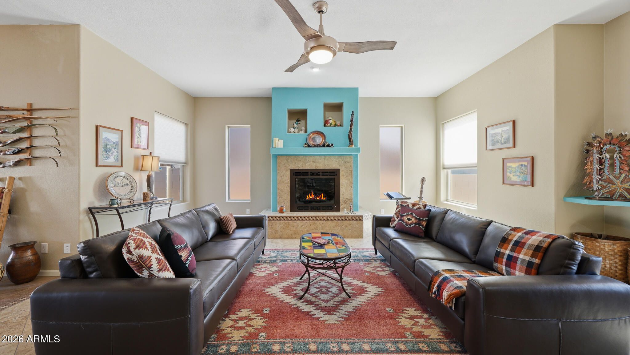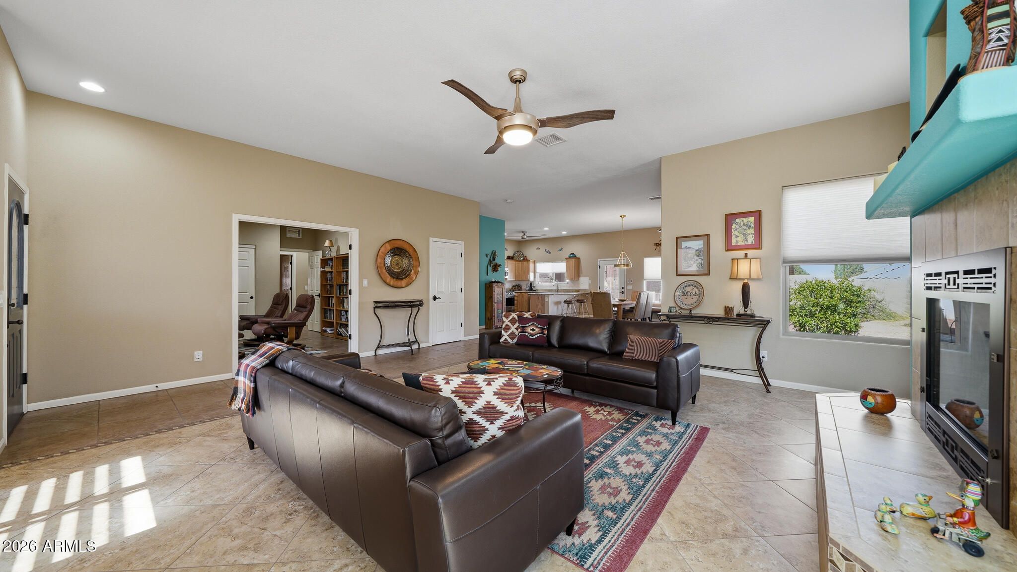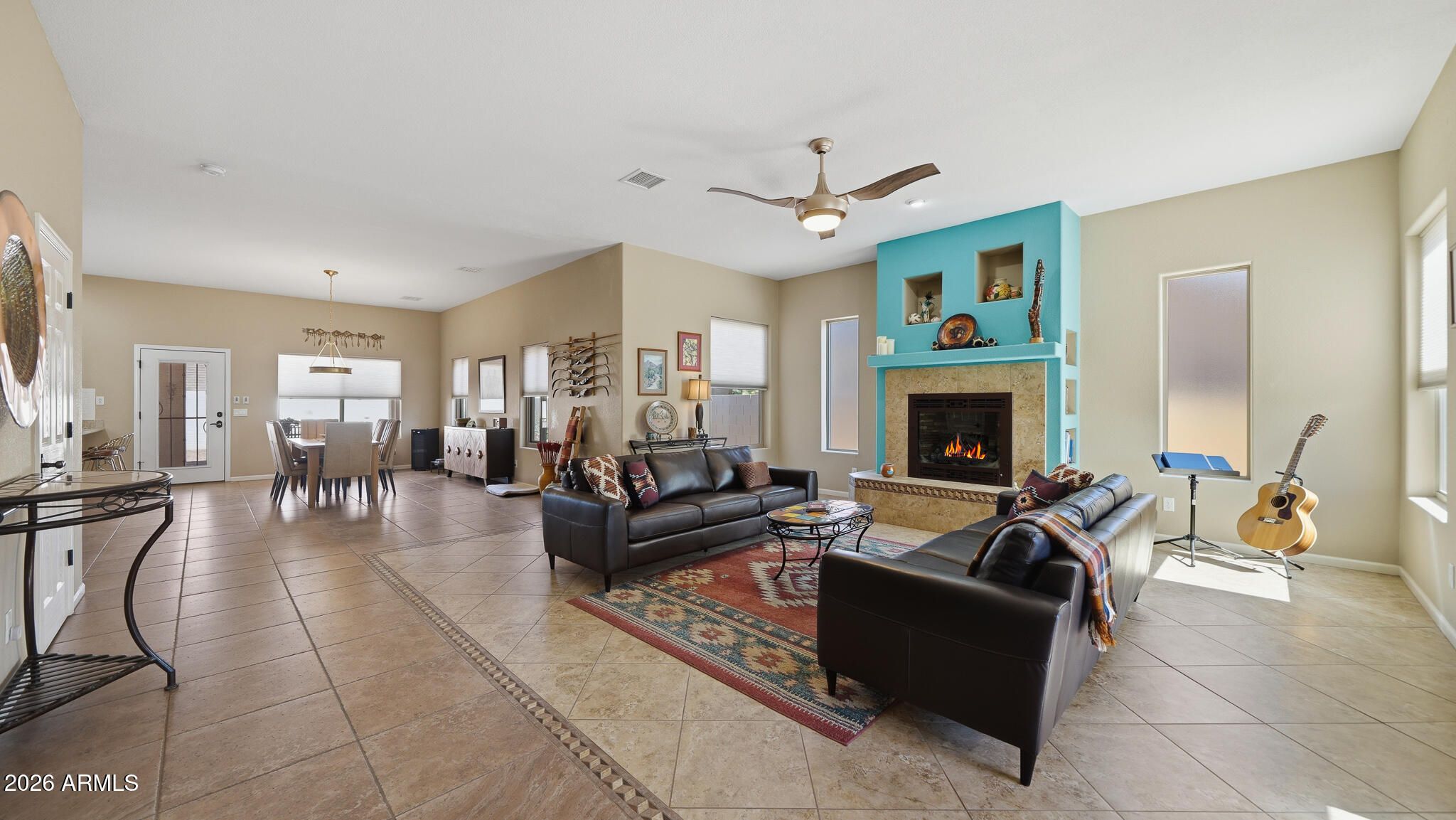 Stunning Winterhaven 55+ Home w/2161SF featuring Owned SOLAR...3BR/2BA/3CG upgraded w/Quartz/Granite and Pristine clean!!! Welcome your friends to your inviting Front Courtyard w/spectacular Mountain Views or Entertain on your lovely, back, Covered Patio!!! Enter into your Great Room Concept Living Room w/Gorgeous Fireplace w/nooks, leading to your Dining Area & Spacious Kitchen w/Breakfast Bar and plenty of Counter Space!!! The Master Suite has ample room for your bigger furniture, 2 Walk-in Closets, and Bath w/Gorgeous Walk-in Shower, Soaking Tub, & Dual Sinks...Guest Suite is also spacious w/upgraded Bath, Dual Sinks and Tub/Shower...3rd Bedroom/Office/DEN has French Door access from Living Room or Hallway access too!!! Huge 3CG with lots of storage and convenient outside access!!!