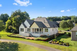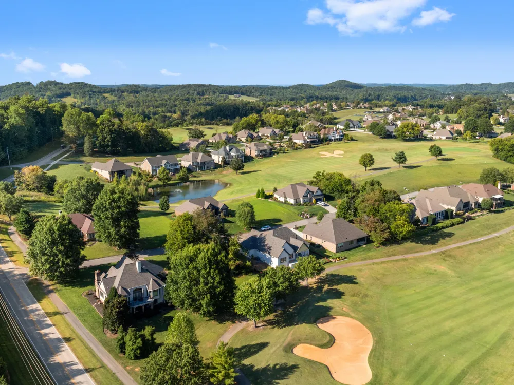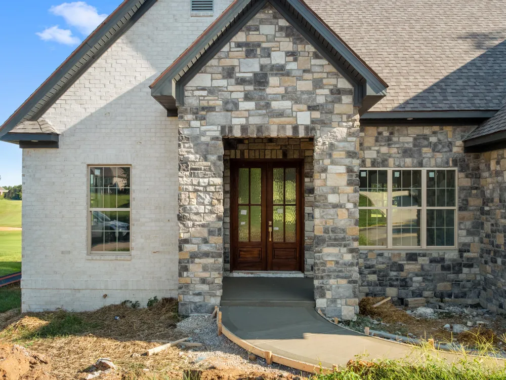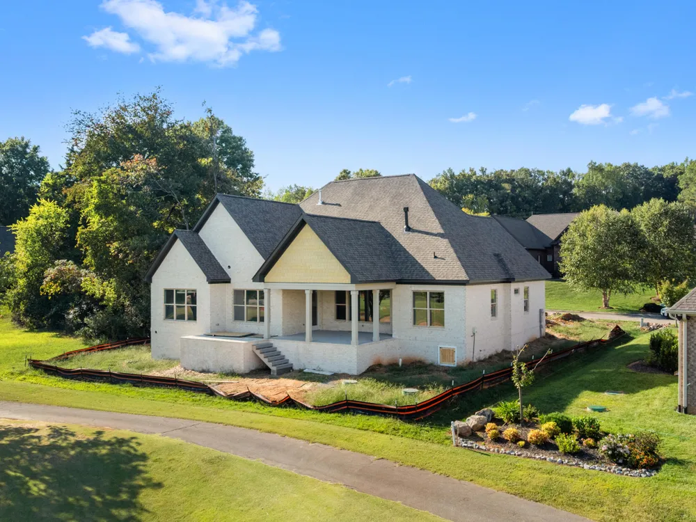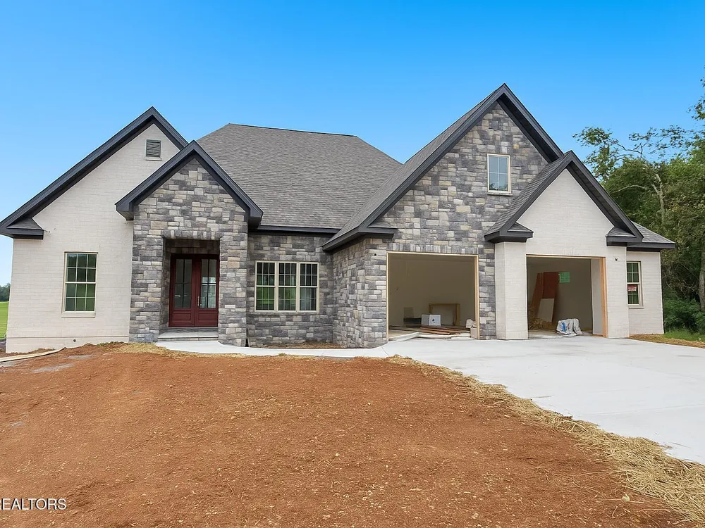 HOME FOR THE HOLIDAYS! Experience luxury living in this stunning custom new construction home, perfectly blending elegance and functionality. Nestled on a picturesque homesite overlooking the golf course, with majestic mountain views as your backdrop, this home offers open, airy interiors, welcoming outdoor spaces, and incredible amenities both inside and out. The stately modern brick and stone exterior provides exceptional curb appeal and outdoor living at its finest. Inside, enjoy over 2,600 sq. ft. of thoughtfully designed space featuring 4 bedrooms, 3 full baths, and an oversized 2-car garage with additional room for a golf cart, mower, and storage. Comfort is a priority with a high-efficiency 3-zone HVAC system, ensuring optimal temperature control throughout. The chef-inspired kitchen is a showstopper, complete with Fisher & Paykel stainless steel appliances, a professional dual-fuel freestanding range, an integrated French door fridge/freezer, and granite countertops. Living areas feature luxury vinyl plank flooring for low-maintenance elegance, while bedrooms are carpeted for warmth and comfort. The great room boasts a soaring stone fireplace that extends floor-to-ceiling, creating a dramatic focal point. For added efficiency, the crawlspace is fully encapsulated and conditioned. Main level living includes 3 bedrooms, 2 baths, the great room, kitchen, breakfast room, sitting area (which can easily be converted into a study), utility room, and a screened porch and patio perfect for enjoying the outdoors. The primary suite offers stunning views, a tiled shower, chrome fixtures, off-white cabinetry, and a large walk-in closet with direct access to the laundry room. Upstairs, discover a spacious 4th bedroom/hobby room/media room with a full bathroom—ideal for guests, office space, or entertainment. This home combines views, luxury, quality, and low-maintenance living. It will be beautifully landscaped with fescue sod, full irrigation, and ready for its new owner on November 1. Owner/Agent