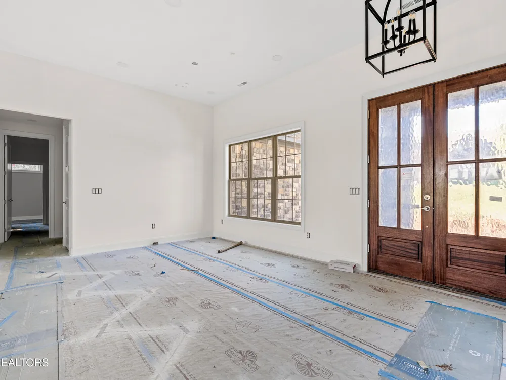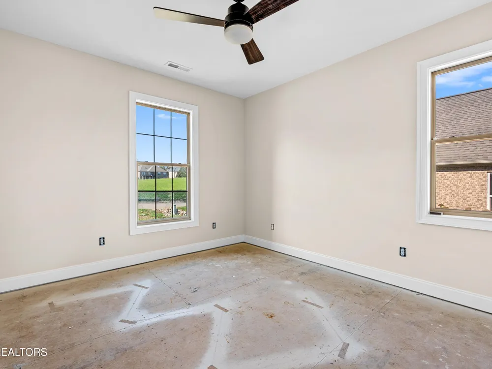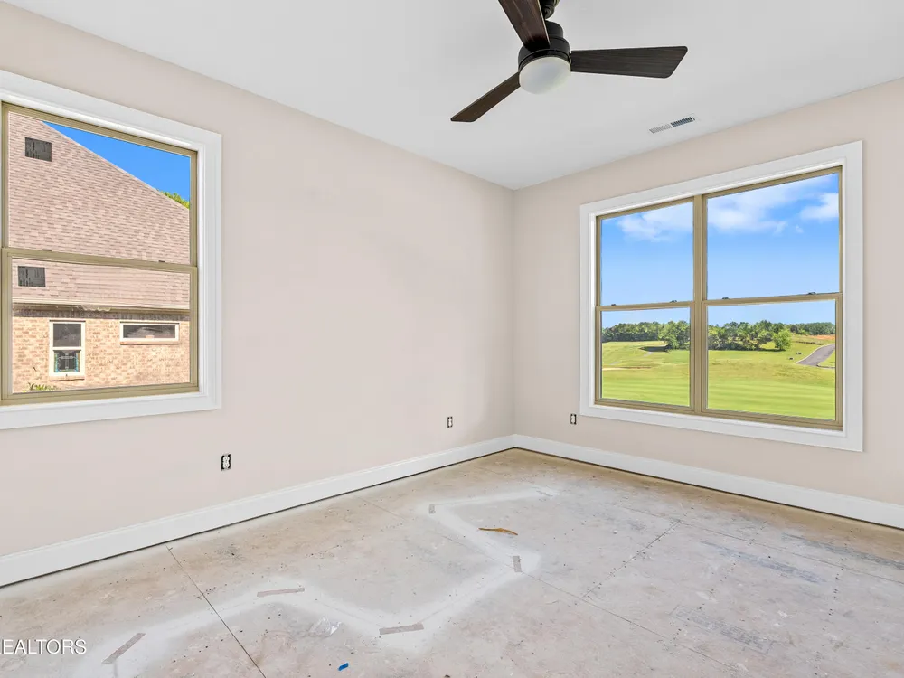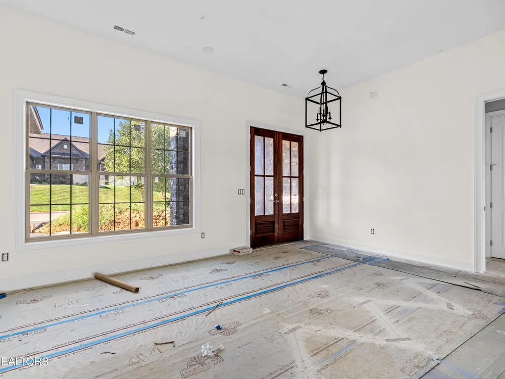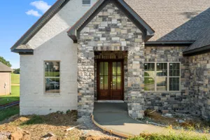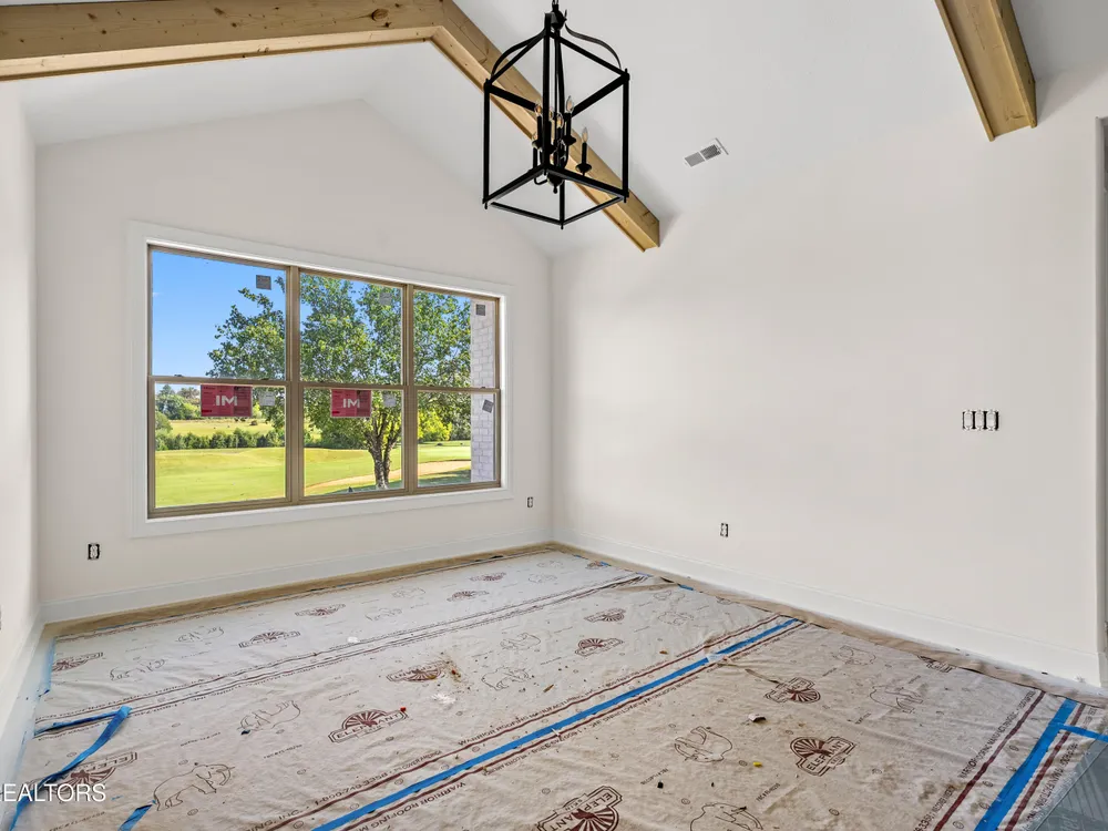 HOME FOR THE HOLIDAYS! Experience luxury living in this stunning custom new construction home, perfectly blending elegance and functionality. Nestled on a picturesque homesite overlooking the golf course, with majestic mountain views as your backdrop, this home offers open, airy interiors, welcoming outdoor spaces, and incredible amenities both inside and out. The stately modern brick and stone exterior provides exceptional curb appeal and outdoor living at its finest. Inside, enjoy over 2,600 sq. ft. of thoughtfully designed space featuring 4 bedrooms, 3 full baths, and an oversized 2-car garage with additional room for a golf cart, mower, and storage. Comfort is a priority with a high-efficiency 3-zone HVAC system, ensuring optimal temperature control throughout. The chef-inspired kitchen is a showstopper, complete with Fisher & Paykel stainless steel appliances, a professional dual-fuel freestanding range, an integrated French door fridge/freezer, and granite countertops. Living areas feature luxury vinyl plank flooring for low-maintenance elegance, while bedrooms are carpeted for warmth and comfort. The great room boasts a soaring stone fireplace that extends floor-to-ceiling, creating a dramatic focal point. For added efficiency, the crawlspace is fully encapsulated and conditioned. Main level living includes 3 bedrooms, 2 baths, the great room, kitchen, breakfast room, sitting area (which can easily be converted into a study), utility room, and a screened porch and patio perfect for enjoying the outdoors. The primary suite offers stunning views, a tiled shower, chrome fixtures, off-white cabinetry, and a large walk-in closet with direct access to the laundry room. Upstairs, discover a spacious 4th bedroom/hobby room/media room with a full bathroom—ideal for guests, office space, or entertainment. This home combines views, luxury, quality, and low-maintenance living. It will be beautifully landscaped with fescue sod, full irrigation, and ready for its new owner on November 1. Owner/Agent