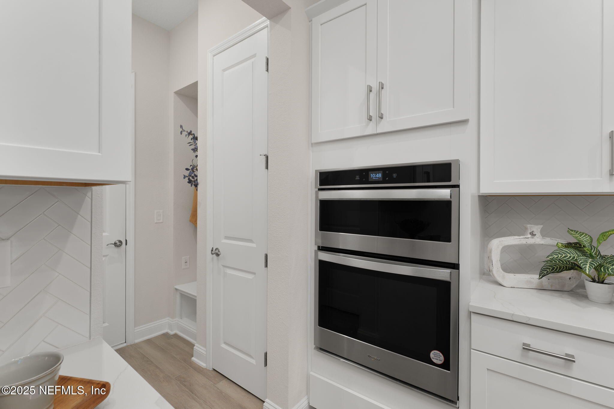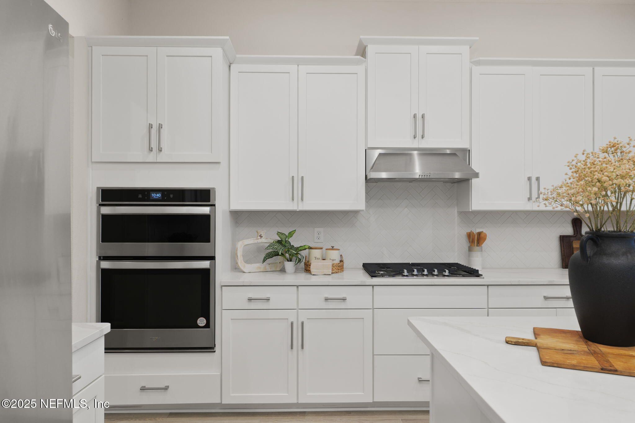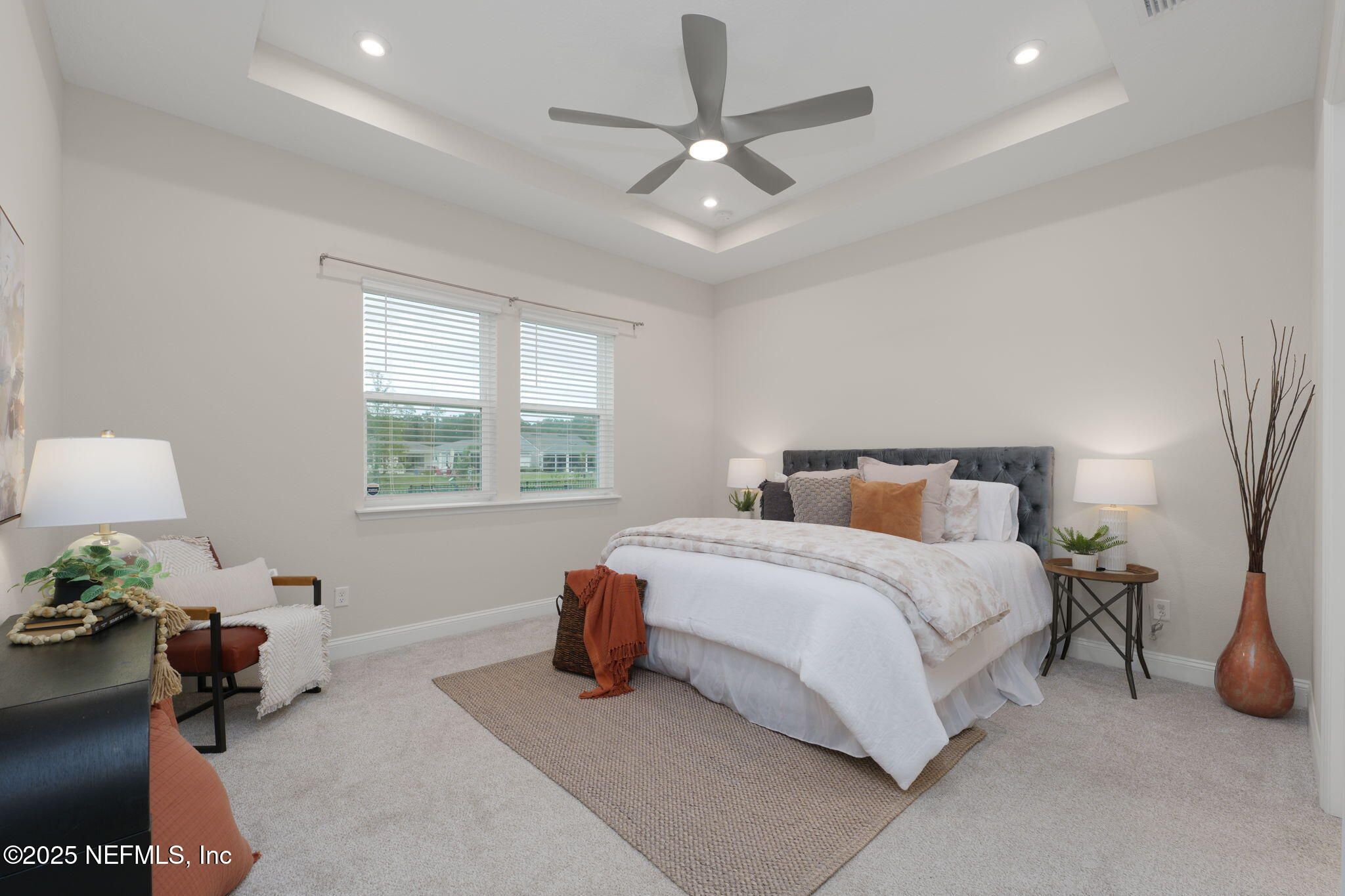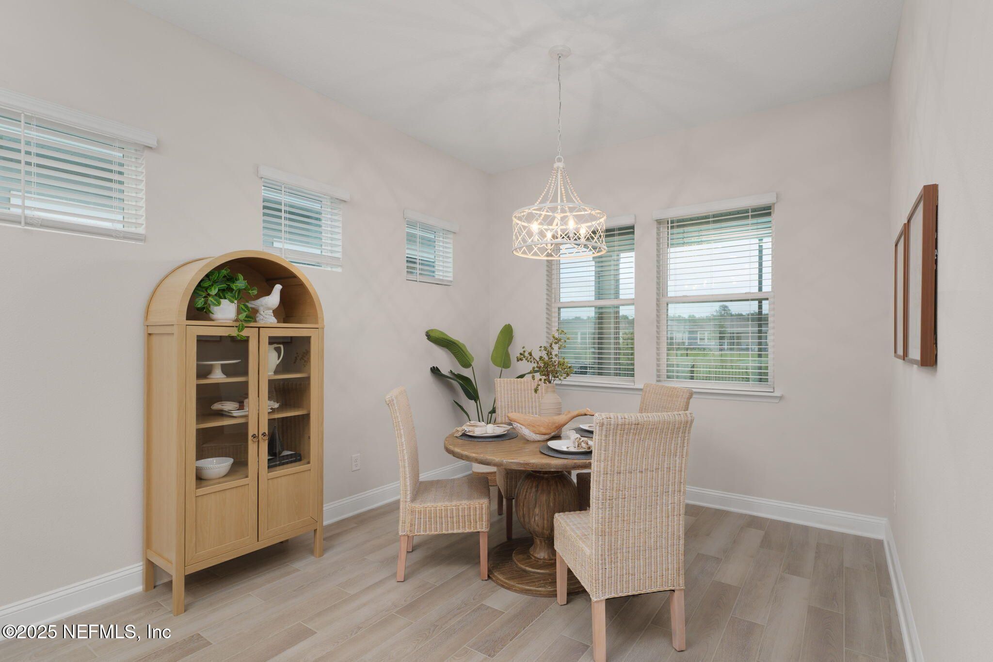 Waterfront Luxury in WaterSong at RiverTown. Step into this stunning 2023-built Pier Model, offering 1,914 sq. ft. of thoughtfully designed living space in WaterSong, Northeast Florida's premier 55+ gated community. With 2 bedrooms, a versatile den/flex room, and 2 baths on a premium 0.17-acre waterfront pond lot, this home blends modern elegance with relaxed living. Inside, you'll find wood plank tile flooring, crystal drop chandeliers, and a den with French doors that add charm and versatility. The gourmet kitchen is a showstopper, featuring white and gray quartz countertops, buffet counter with beverage fridge nook, an oversized dining island with coastal pendant lighting, stainless steel appliances, a built-in oven and microwave, gas cooktop with range hood, and chevron subway tile backsplash, perfect for entertaining or everyday luxury. The primary suite impresses with a tray ceiling, spa-like zero-entry shower, and oversized walk-in closet with luggage storage. Enjoy Florida living at its finest on the extended screened lanai with ceiling fan, overlooking the tranquil pond. Additional upgrades include a wrought iron fenced yard, tankless water heater, water softener, and extended garage for storage and convenience. WaterSong at RiverTown is designed for active adults, with exclusive amenities including resort-style and lap pools, pickleball and bocce ball courts, fitness centers, event lawns, a Biergarten, community events, and a full-time lifestyle director. Plus, you'll also enjoy all of RiverTown's amenitiesfrom the lazy river and kayak launch to riverfront pools, café, tennis, sports fields, and miles of nature trails. This home is more than a residence. It's a retreat where you can relax, socialize, and live your best Florida lifestyle.