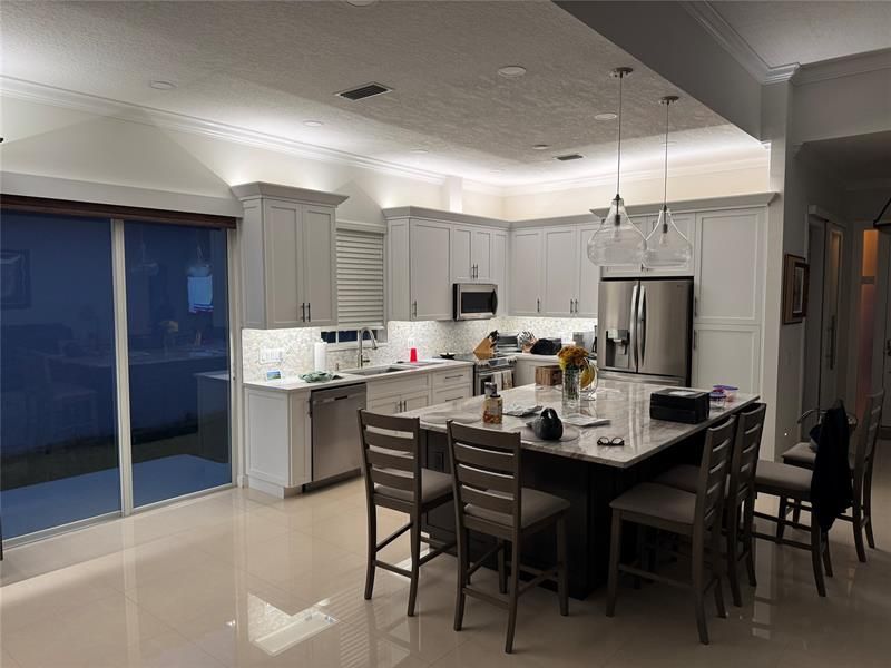 Beautifully Renovated “EXPANDED OAKMONT MODEL” with 3 Bedrooms, 2 Bathrooms Plus a Den. The home offers Renovated Kitchen with Quartz Countertops, Upgraded Kitchen Appliances, NEW ROOF (2019), Expanded Living Area, LVP in Bedrooms and Porcelain Tile in Main Area, Expanded Lakefront Screened-in Patio, Hurricane Impact Main Sliding Doors, Accordion Shutters throughout the rest of the home. Fully Renovated Master Bedroom and Bathroom with 2 separate toilets (his & Hers), new Wood Cabinets and Quartz Countertops, Finished Walk-In Closet plus 2 additional Closets. Renovated Secondary Bathroom with new Wood Cabinets and Lighted Quartz Countertop. Recessed Exterior Lighting throughout the home. Spa Stays with the house. THIS QUALITY DIVOSTA HOME WAS BUILT WITH ''STORM SMART'' POURED CONCRETE.