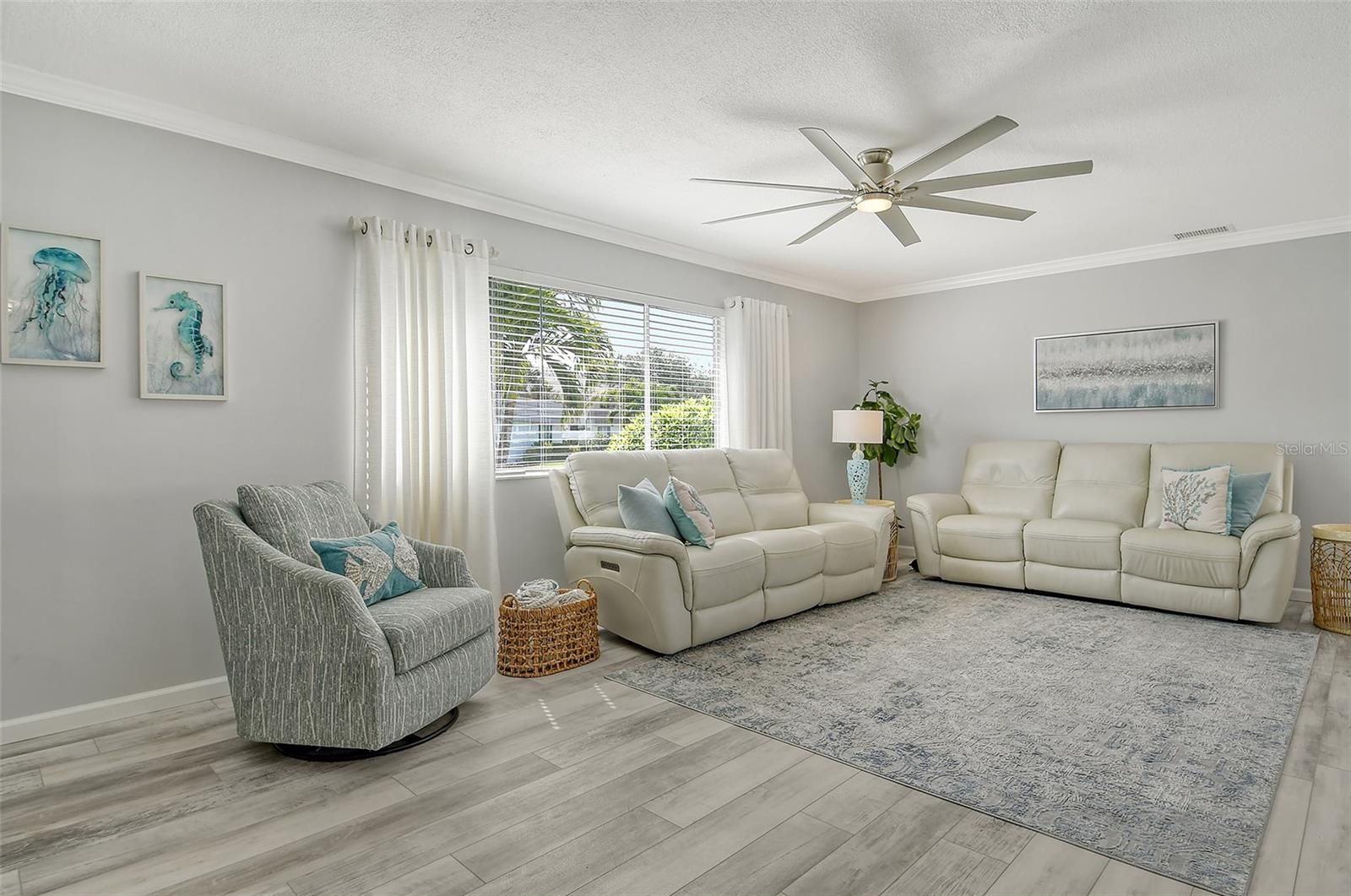 WELCOME TO YOUR NEW HOME! Free-Standing Villa — NOW REDUCED BY $16,000! This beautifully updated 2-bedroom, 2-bath free-standing villa has been thoughtfully modernized with exceptional attention to detail throughout. Enjoy peace of mind with a new AC system with warranty, along with stylish luxury vinyl flooring that flows seamlessly from room to room. The kitchen boasts soft-close wood cabinetry, elegant quartz countertops, and new stainless-steel appliances—a perfect blend of style and functionality. Both bathrooms have also been tastefully renovated for comfort and modern appeal. Just bring your furniture and personal items—this home is truly move-in ready! Located in a vibrant, active 55+ community, residents enjoy a wide array of amenities including a marina, heated swimming pool, clubhouse, well-stocked library, fitness center, his & her saunas, and a billiards room. The community offers numerous social activities year-round—karaoke, card games, shuffleboard tournaments, meet-and-greet events, and unforgettable themed parties—making it easy to form new friendships and stay engaged. Conveniently positioned just minutes from the world-famous Siesta Key Beach and only 4 miles to downtown Sarasota, this location provides quick access to exceptional dining, shopping, and Sarasota’s renowned cultural attractions including opera, ballet, Broadway shows, museums, and concerts. Boaters will love the marina access—dock spaces are available on a first-come, first-served basis for $1,344 annually, offering effortless access to the Intracoastal Waterway or Gulf of Mexico. Two small pets are welcome! Monthly fees include Water • Sewer • Trash Removal • Basic Cable. Don’t miss this incredible opportunity to live in the Florida lifestyle in comfort, style, and convenience. Schedule your private tour today!