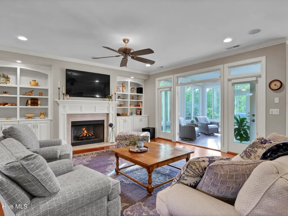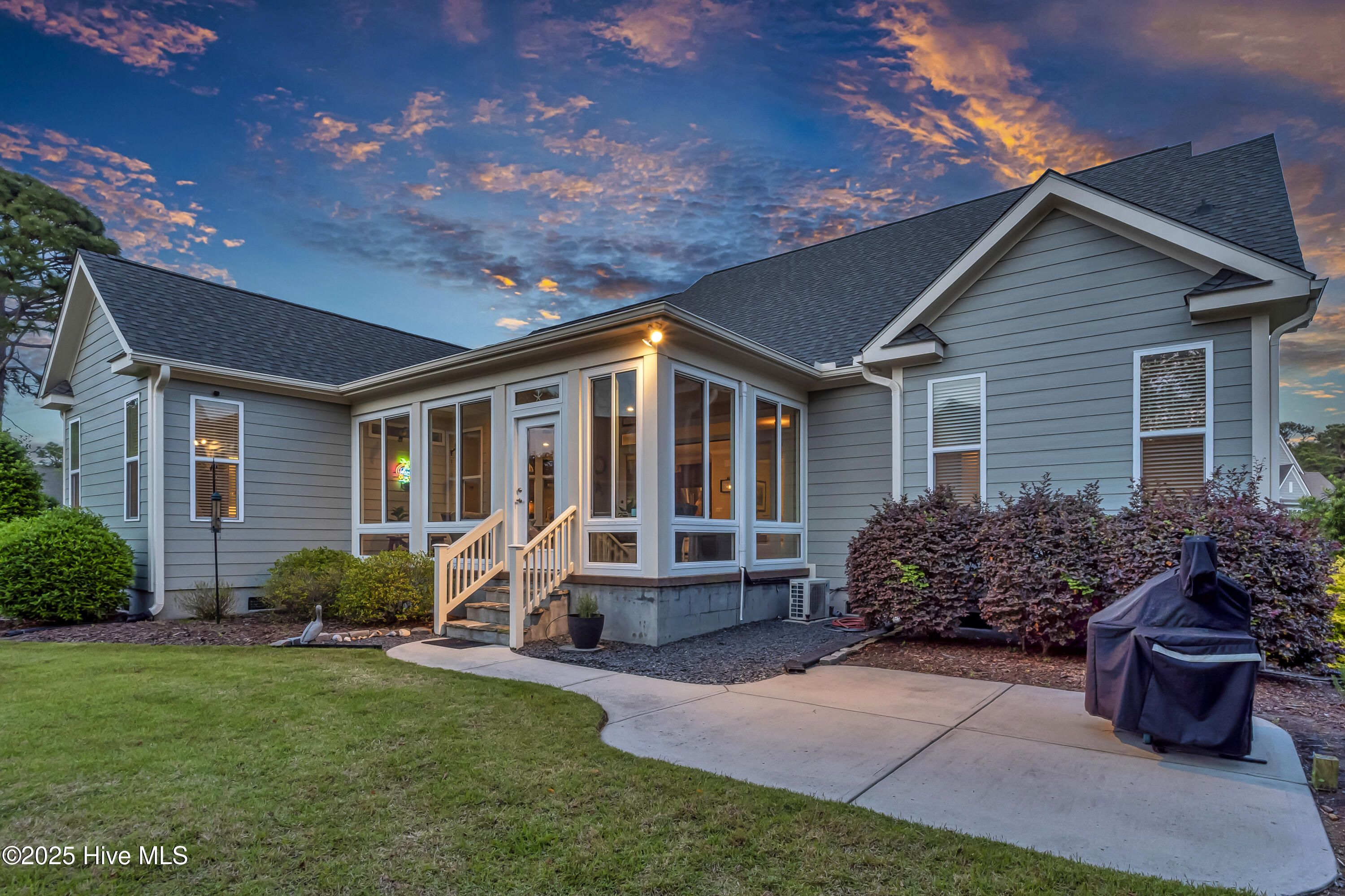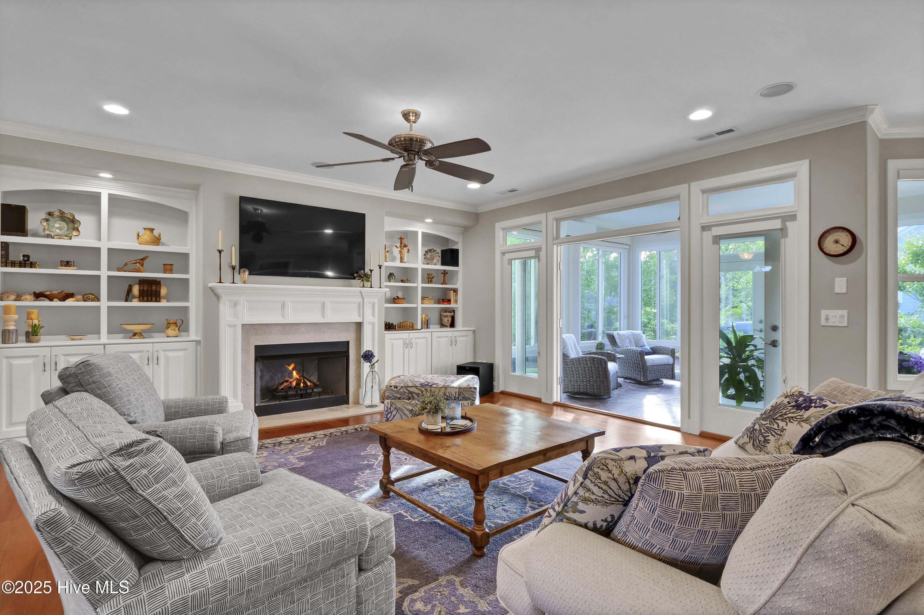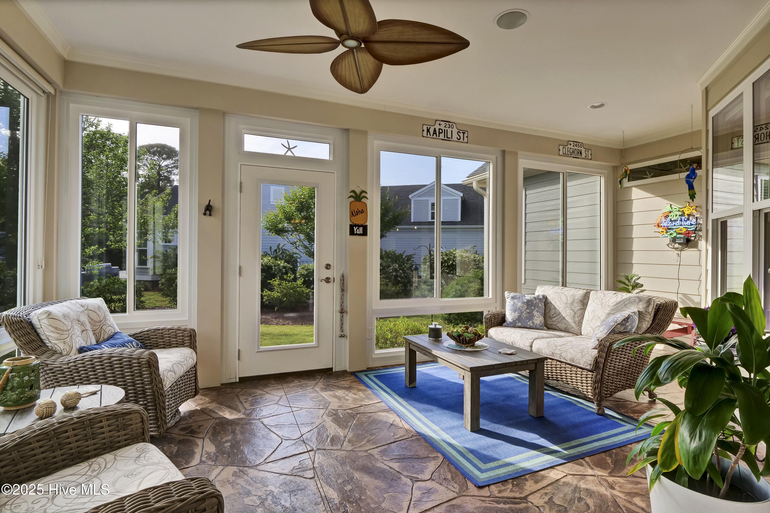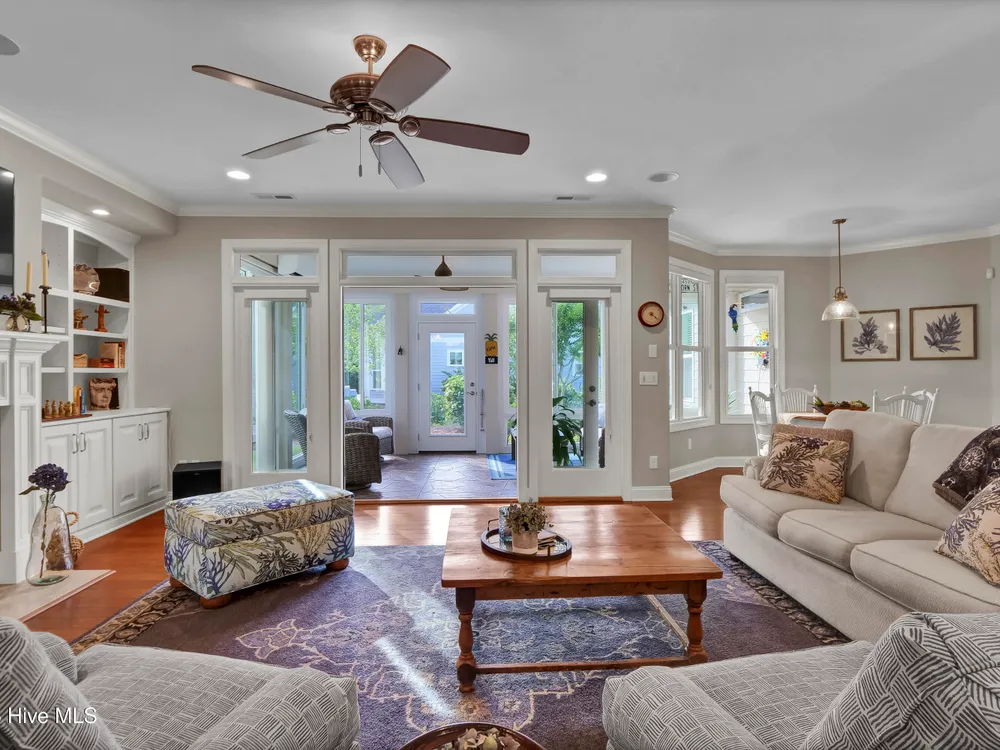 Nestled in a quiet cul de sac, this beautiful Barker and Canady home awaits you. The main floor features hardwood floors throughout the dining room, living room and kitchen, new stainless appliances, granite countertops, plantation shutters, crown molding, and a gas fireplace surrounded by book shelves. The open floor plan is the perfect gathering venue to entertain family and friends not to mention the new sun room featuring plenty of windows overlooking the back patio, a perfect spot to watch nature and enjoy a cup of coffee or evening cocktail. The primary bedroom has coffered ceiling, California designed closet and large spa like bath. Two additional bedrooms (one being used as home office) share a jack and jill bath. Upstairs has a large bonus room/bedroom plus full bath. Huge floored walk in storage should you need to convert from storage to a media room. Laundry room with extra deep sink, Fortified new roof 2024, two car garage with storage cabinets galore and epoxy floor. The crawl space has vapor barrier and dehumidifier. All St. James residents enjoy 4 security gates, gated private beach club with showers and a pool, marina including Beacon Restaurant and Tiki Bar and all of the parks. Being a resident offers the opportunity to join the private clubs. That includes 4 country clubs, 81 holes of golf, 4 more pools, 3 gyms, Har Tru tennis, pickleball, croquet. Enjoy the lifestyle today! Come see why St James has been the number 1 Coastal Community in the Carolinas for 20 years! Don't miss the chance to make this home your own.