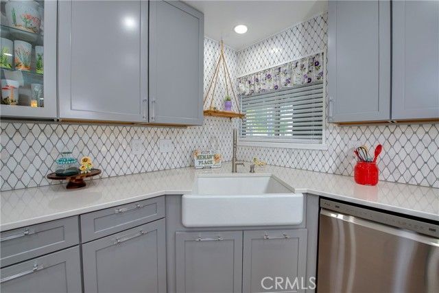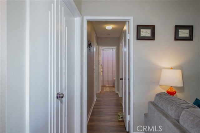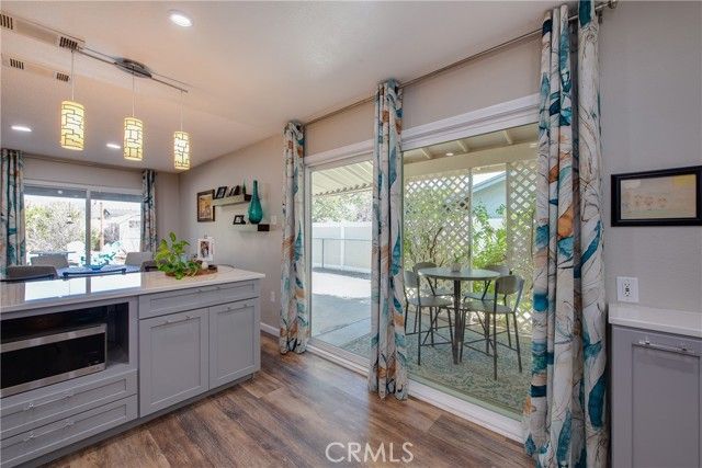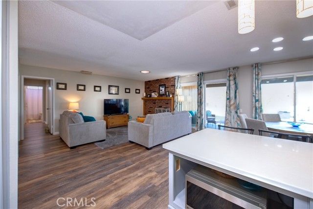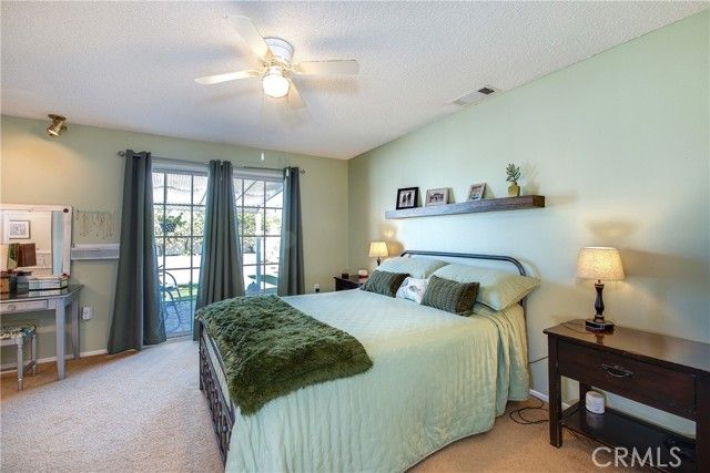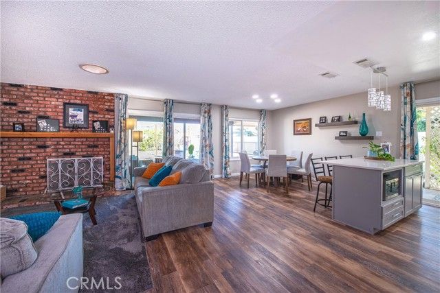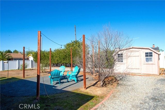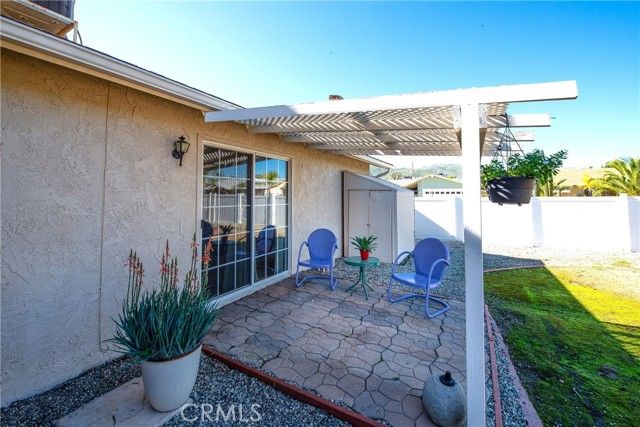 Absolutely stunning highly upgraded and customized home with PAID OFF SOLAR located in the "Over 55" Sun City Civic Association. Fabulous curb appeal with brick facade accents on a premium oversized private corner lot convertible to possible R.V. parking with still plenty of yard space for quality outdoor living. Designer quality remodel within the last four years including gorgeous wood like laminate floors and floor-to-ceiling new custom kitchen and baths. Enter from the covered front porch into the spacious living room with a raised hearth floor-to-ceiling brick fireplace and dining room overlooking the lush rear yard and solid ceiling covered patios through a dual pane slider and wall of windows. The incredible kitchen must be seen to be believed. Beautiful quartz countertops, one-of-a-kind specially designed backsplashes from the counters to the ceiling, corner cast iron farm sink, premium Samsung 5-burner gas range with air fryer and additional cooking options, unique pot water filler over the range, custom cabinets, stainless steel LG dishwasher, recessed lighting, big island with breakfast bar and dual pane slider to the side covered patios. The grand master bedroom has a ceiling fan, a slider to a private covered patio, walk-in closet and ensuite bathroom that looks like brand new. The hall bath is equally pristine with two adjacent generous sized guest bedrooms, one with a double door entry that is currently being used as an office without a closet. Finished 2-car garage with washer, dryer, gas water heater, attic storage and cabinets galore. The large back yard has vinyl fences all around plus a row of manicured tress in the back to enhance privacy, plus a large shed. Low, low HOA dues. No Mello-Roos. Unparalleled community amenities including an outdoor amphitheater, two huge auditoriums with stages and dance floor, one year round pool and another seasonal pool, indoor spa, gym, billiard parlor, multiple card/meeting rooms, wood working and lapidary shops, library, art and crafts studio, pickleball, horseshoes, lawn bowling, shuffleboard building and much more. There is also an RV lot with very reasonable parking fees. Plenty of social and recreations clubs. Ideally located about an hour's drive to L.A. and Orange Counties, downtown San Diego, Palm Springs and Idyllwild. Close to Temecula, Casinos and The Wine Country.