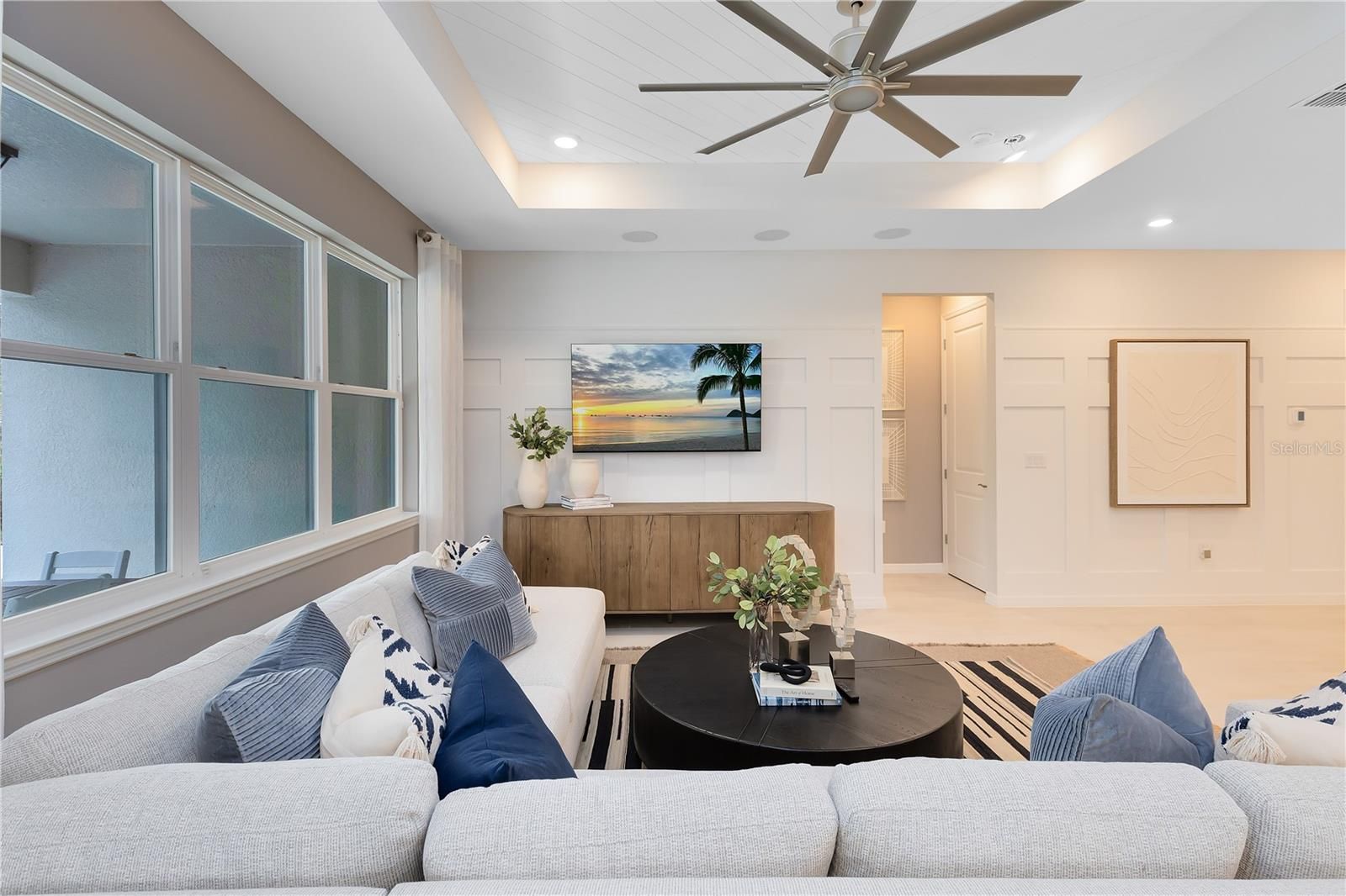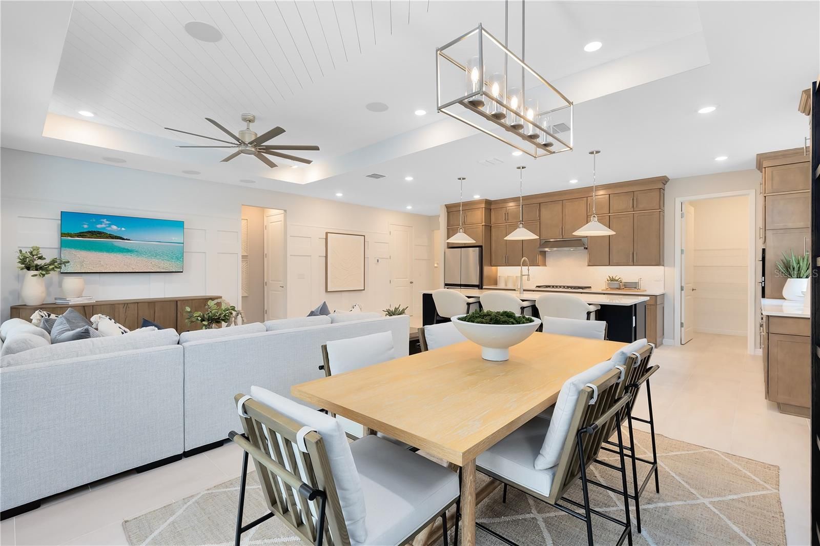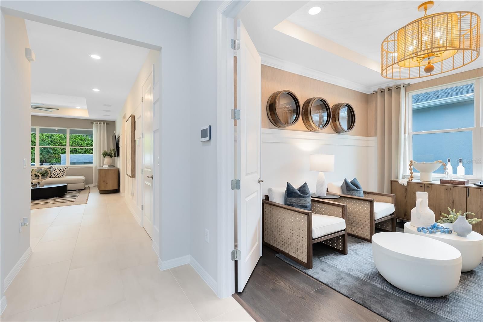 Del Webb, the pioneer of Active Adult living is now selling in Twin Lakes and adding even more to love in this thriving neighborhood! Residents will love the completed waterfront clubhouse (including a community boat!) and can look forward to additional amenities coming soon! This gated, natural gas neighborhood is waiting just for you. Visit 4 designer models, today! The spacious, single-story Palmary dream home by Del Webb offers 2 bedrooms, an enclosed flex room, 2 bathrooms, a screened-in covered lanai, and a 2-car garage. At the heart of the home, the gourmet kitchen is a standout feature, equipped with 42" soft-close cabinetry, quartz countertops, and a decorative tile backsplash. Whirlpool stainless steel appliances, including a natural gas cooktop, complete this culinary haven. The open-concept living area, flooded with natural light from expansive windows and highlighted by tall ceilings — including a tray ceiling in the gathering room — creates an airy, welcoming space perfect for relaxing or entertaining. The covered lanai extends your living space outdoors, ideal for gathering loved-ones. The private owner's suite offers a luxurious retreat, featuring a spa-like bathroom with a glass-enclosed shower, free standing bathtub, dual vanities with quartz countertops, and a spacious walk-in closet. The bathroom also includes an enclosed toilet for privacy and a linen closet for added convenience. At the front of the home, the spare bedroom, bathroom, and versatile flex room provide ample space for guests or personal use. The practical laundry room, complete with built-in cabinets and a sink trimmed in quartz, makes everyday tasks a breeze. Designer-curated selections elevate this home with pendant pre-wiring, comfort-height toilets, and tile flooring throughout, except in the owner’s suite which is covered in wood-look luxury vinyl plank flooring. For modern convenience, this home is equipped with a smart thermostat, video doorbell, and LED down lights. Blending luxury, comfort, and cutting-edge connectivity, this home is designed for today’s lifestyle. Schedule an appointment to see it today!