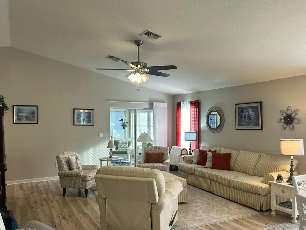 Welcome to this beautifully maintained 2-bedroom, 2-bathroom Bermuda model in the desirable 55+ community of Wellington at Seven Hills. Offering 1,480 sq. ft. of open living space, this home features a versatile front den — ideal as a home office, reading nook, or guest retreat. Recent updates include a brand-new roof (March 2025) and a 2021 HVAC system, providing both comfort and peace of mind. The refreshed kitchen with modern appliances flows seamlessly into the living area, making it perfect for entertaining. Updated flooring adds style and continuity throughout. The spacious primary suite boasts a walk-in closet and private en-suite bath. Step outside to the screened lanai and enjoy views of lush landscaping — your own private oasis. The HOA takes care of lawn maintenance, fertilization, pest/mold/fungus treatment, irrigation, and even exterior painting every 7 years. Cable, internet, and access to the Wellington’s resort-style amenities — including a heated pool, tennis courts, and on-site dining — are also included. Don’t miss your chance to enjoy low-maintenance living in one of Spring Hill’s most sought-after communities. Schedule your private showing today!