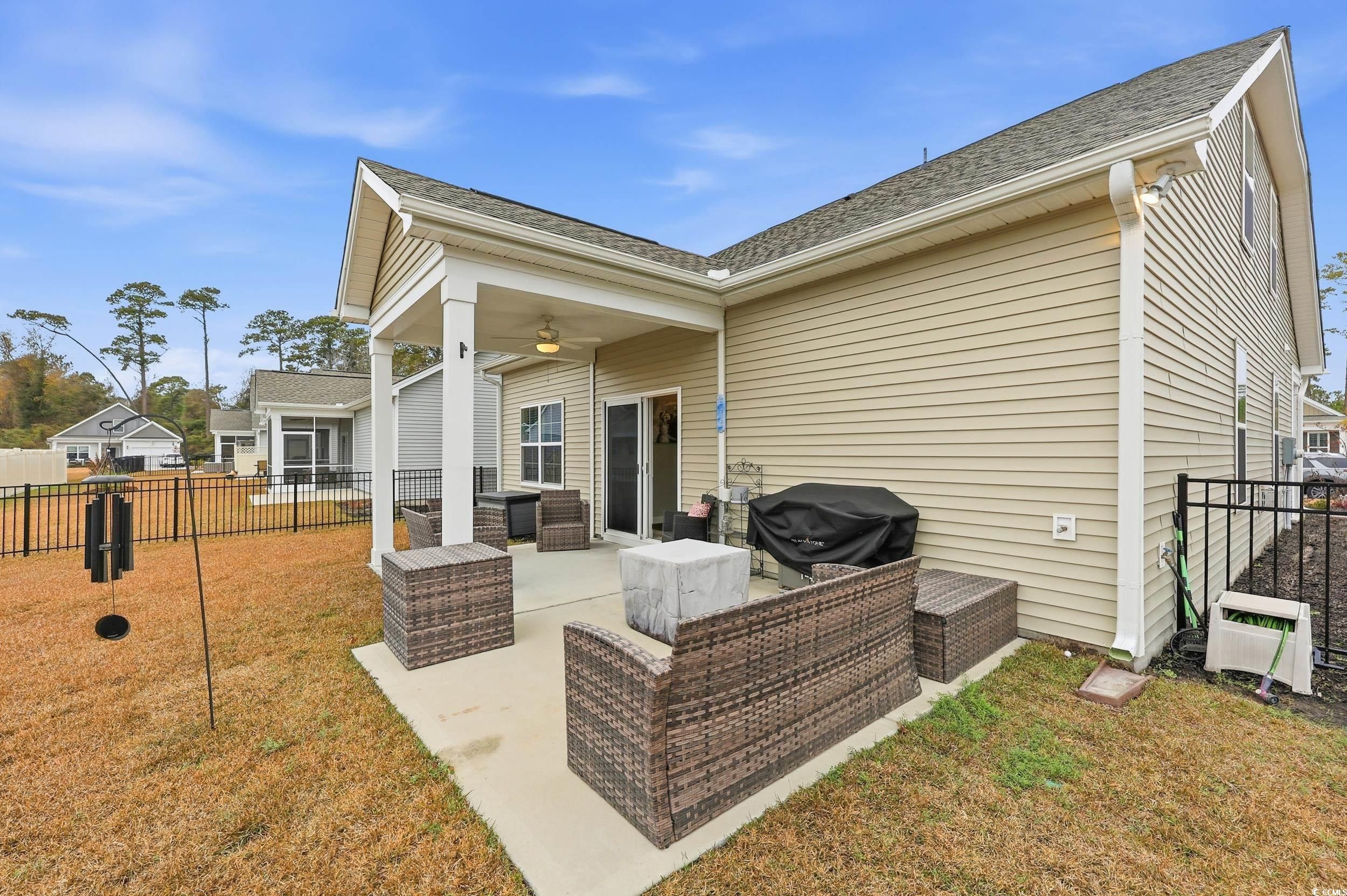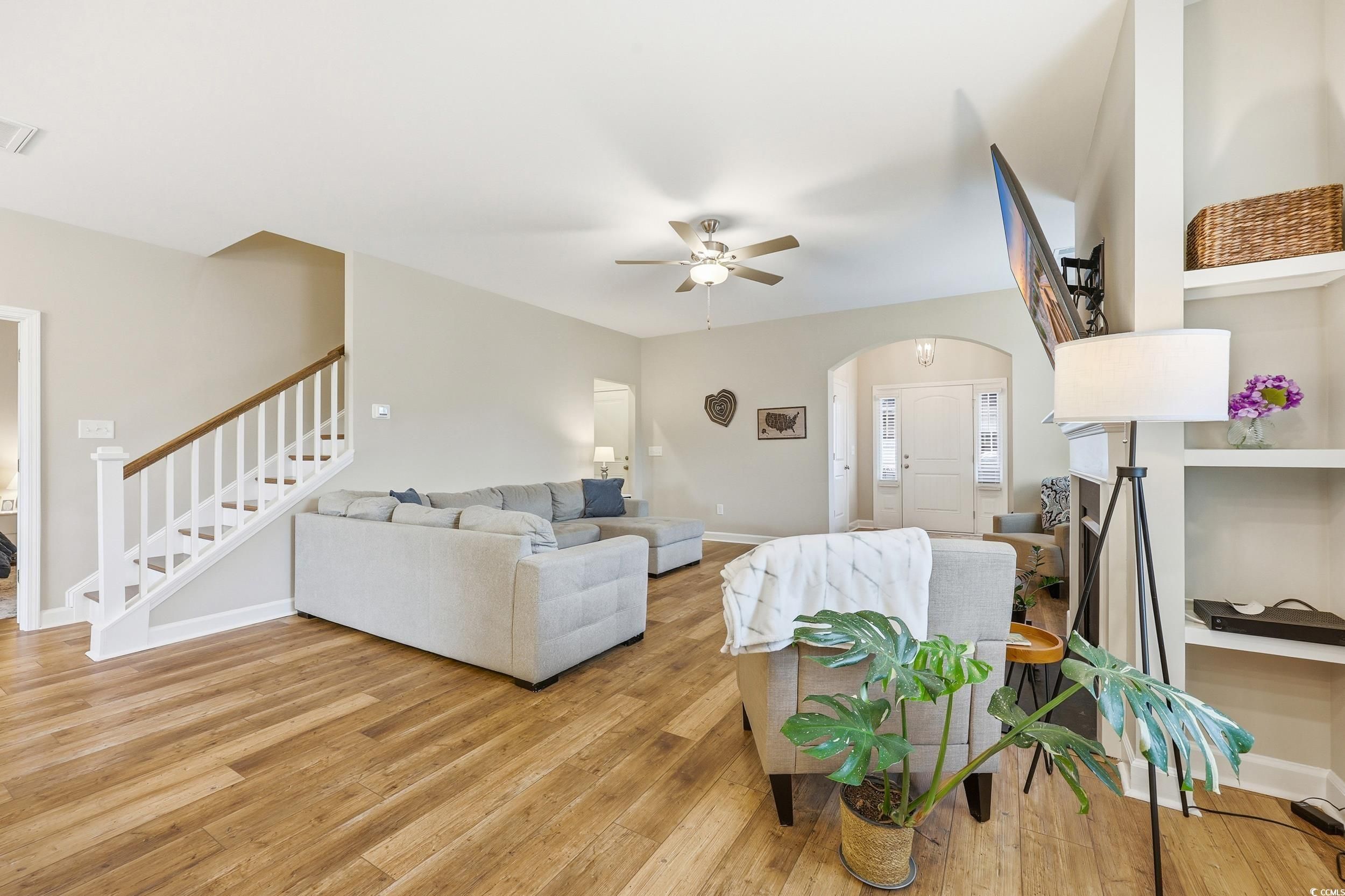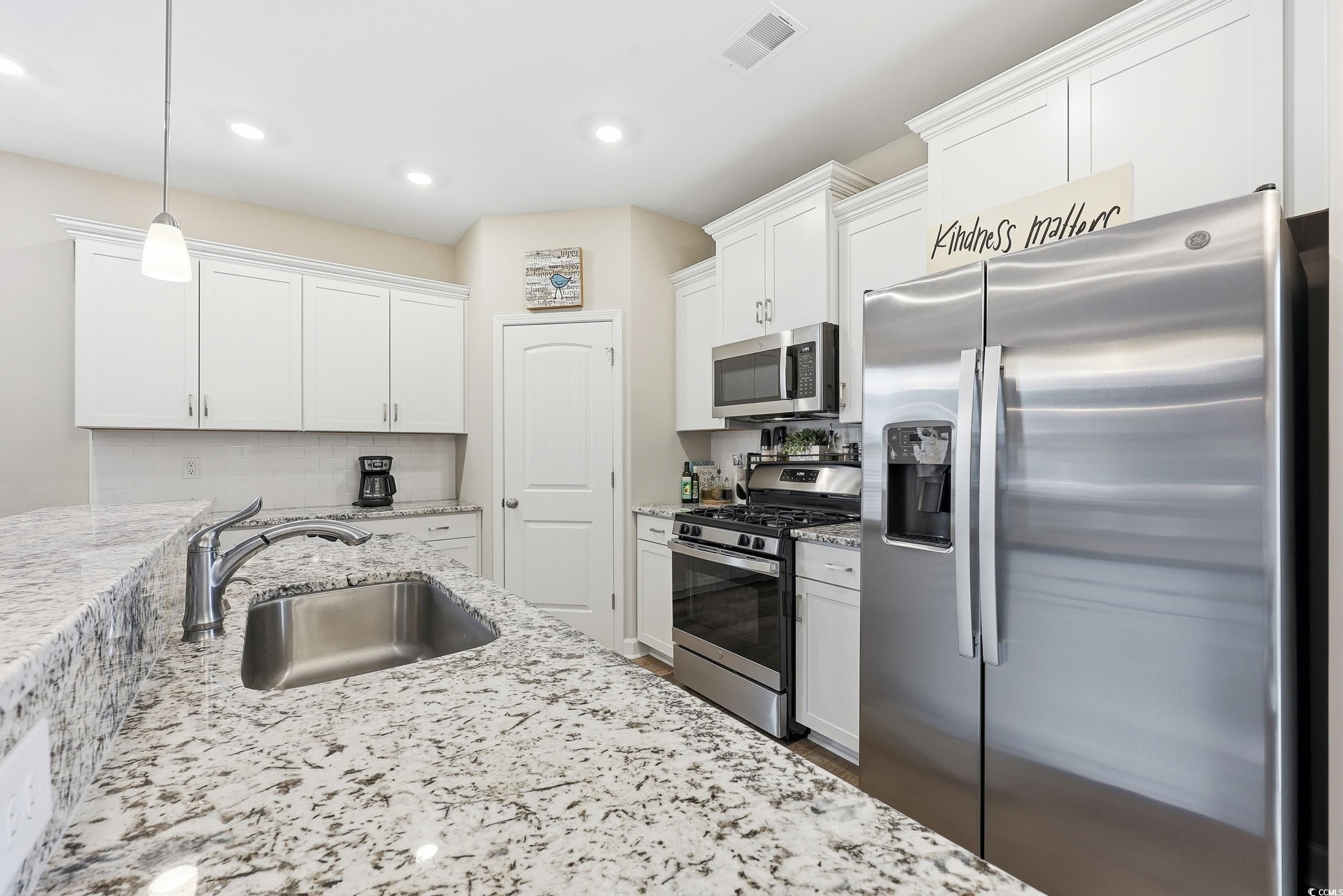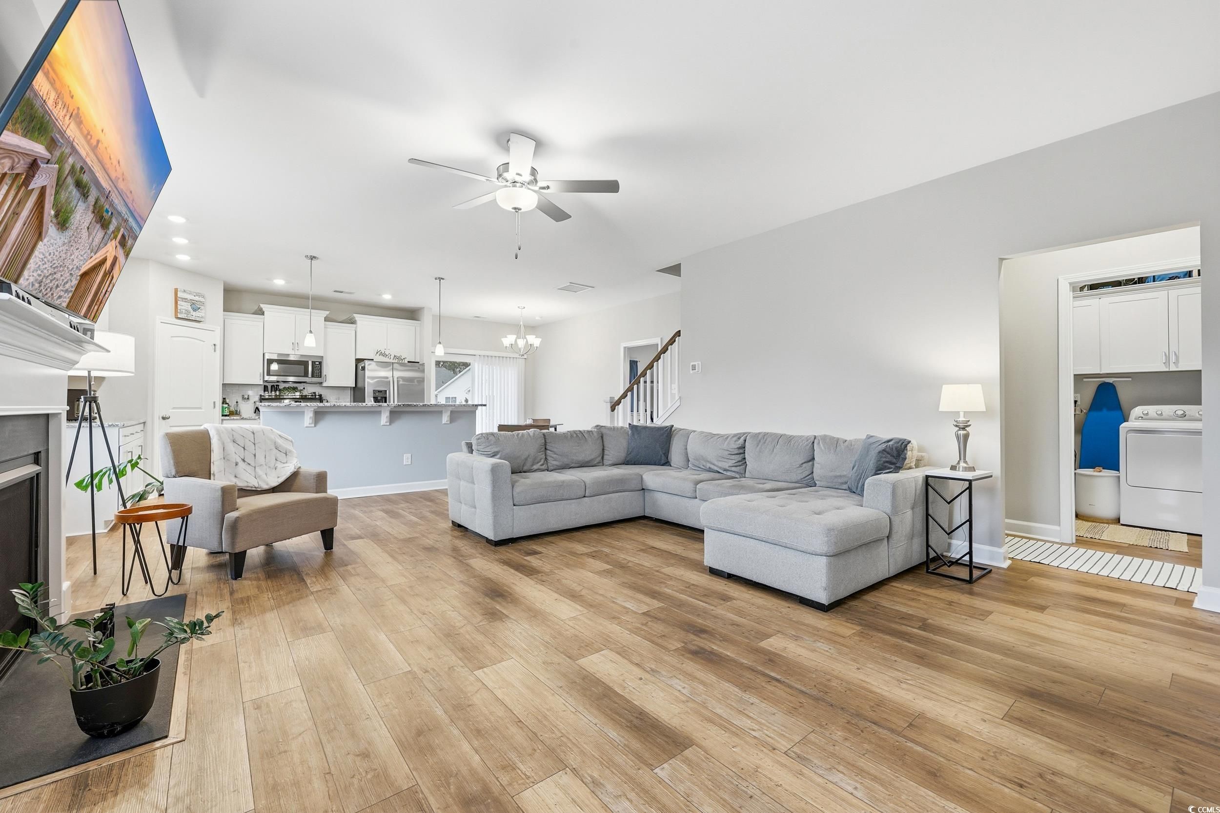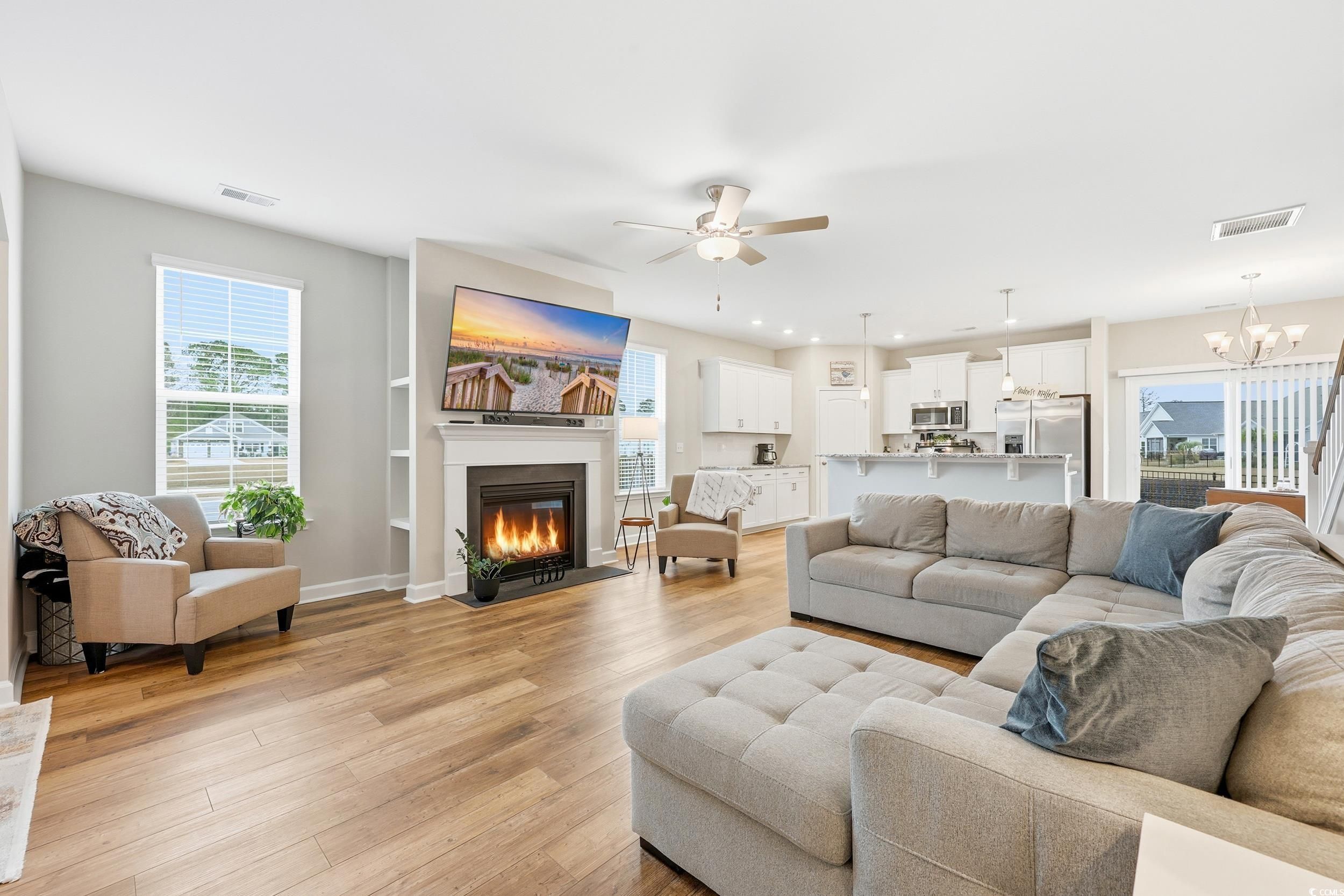 Discover modern coastal living near the historic Little River waterfront. Perfectly situated just minutes from several beautiful beaches in both South Carolina and North Carolina, this newer 3-bedroom, 2.5-bathroom home offers the ideal blend of convenience, comfort, and style. Step inside to an open-concept main level featuring Luxury Vinyl Plank flooring throughout, creating a seamless flow between the spacious living area and the contemporary kitchen. The living room includes a cozy fireplace, while the kitchen offers generous counter space, modern finishes, and a bright breakfast nook. A large sliding glass door fills the space with natural light and leads to the expansive fenced backyard—complete with a covered porch and an extra concrete pad, perfect for grilling, entertaining, or relaxing outdoors. The primary suite is conveniently located on the main floor, offering privacy and ease. The en-suite bathroom includes a large tiled shower and a double-sink vanity, giving the space a clean and luxurious feel. Upstairs, two spacious guest bedrooms share a full bathroom, providing a private retreat for family or visitors. Additional features include a laundry room off the garage and a practical drop zone for coats, bags, and everyday essentials. Not to mention the storage in this home. Large attic storage space, over the garage elevated storage and numerous closets throughout the home offer ample space for season items. With its modern design, functional layout, and unbeatable location near dining, waterfront attractions, and multiple beaches, this home is the perfect coastal retreat or everyday haven.