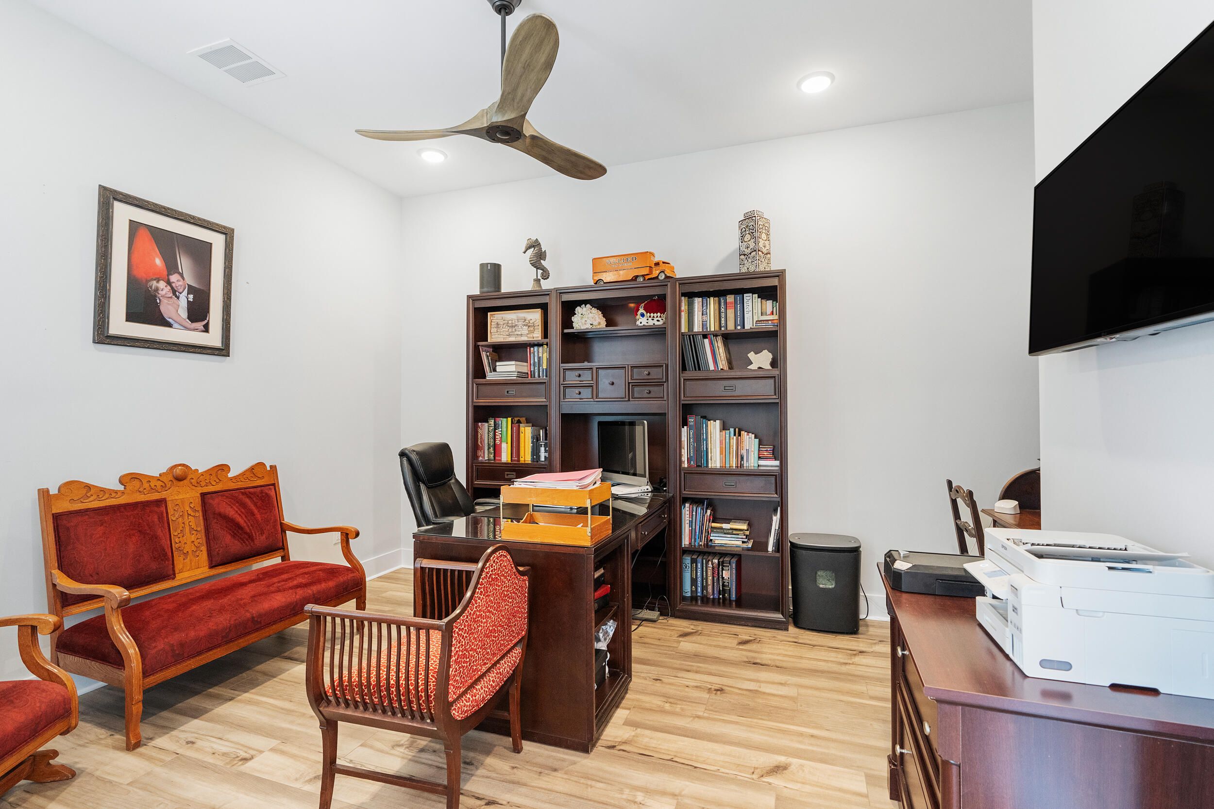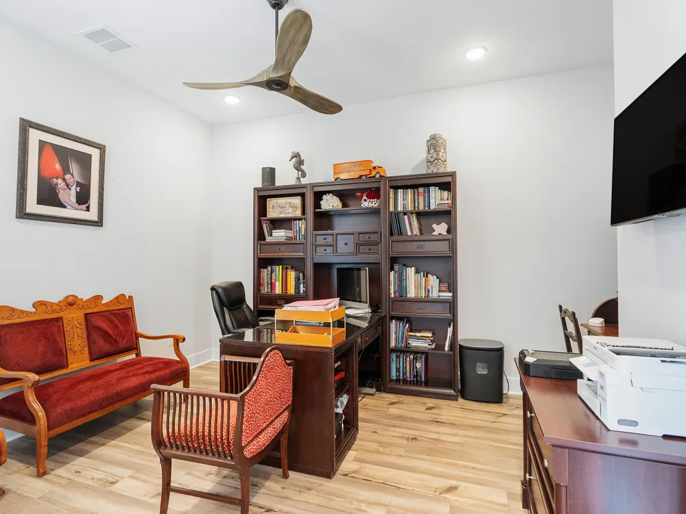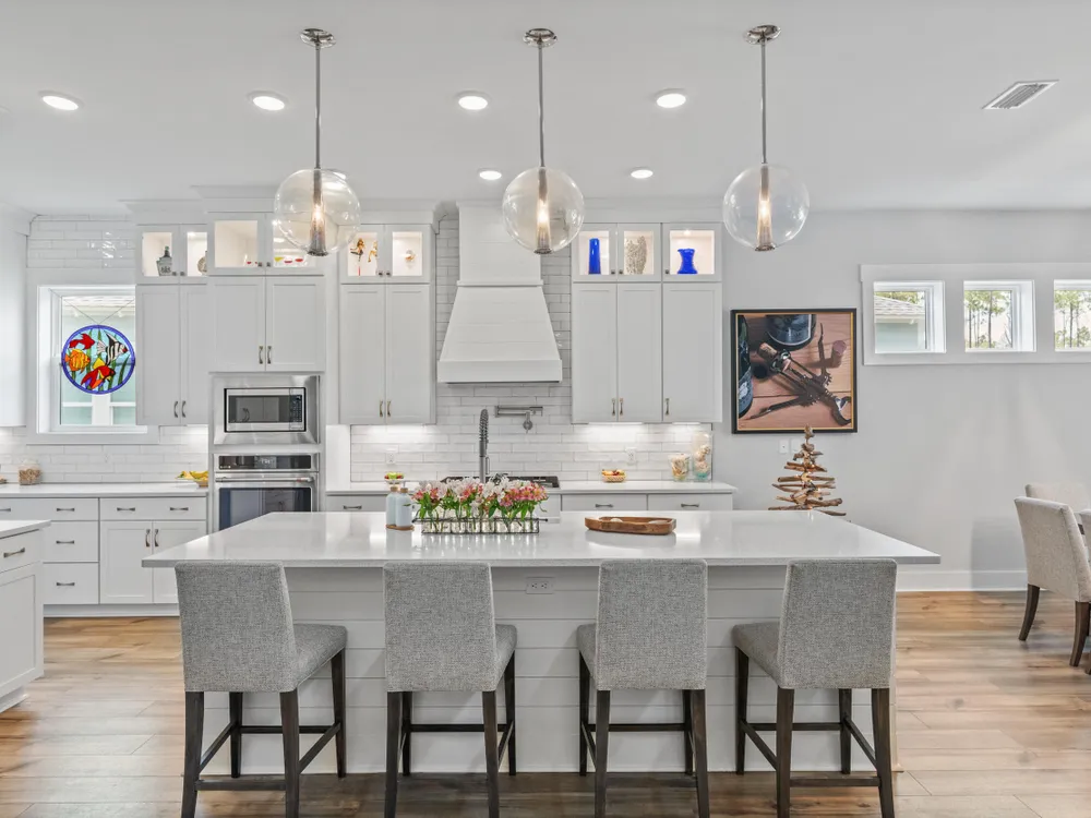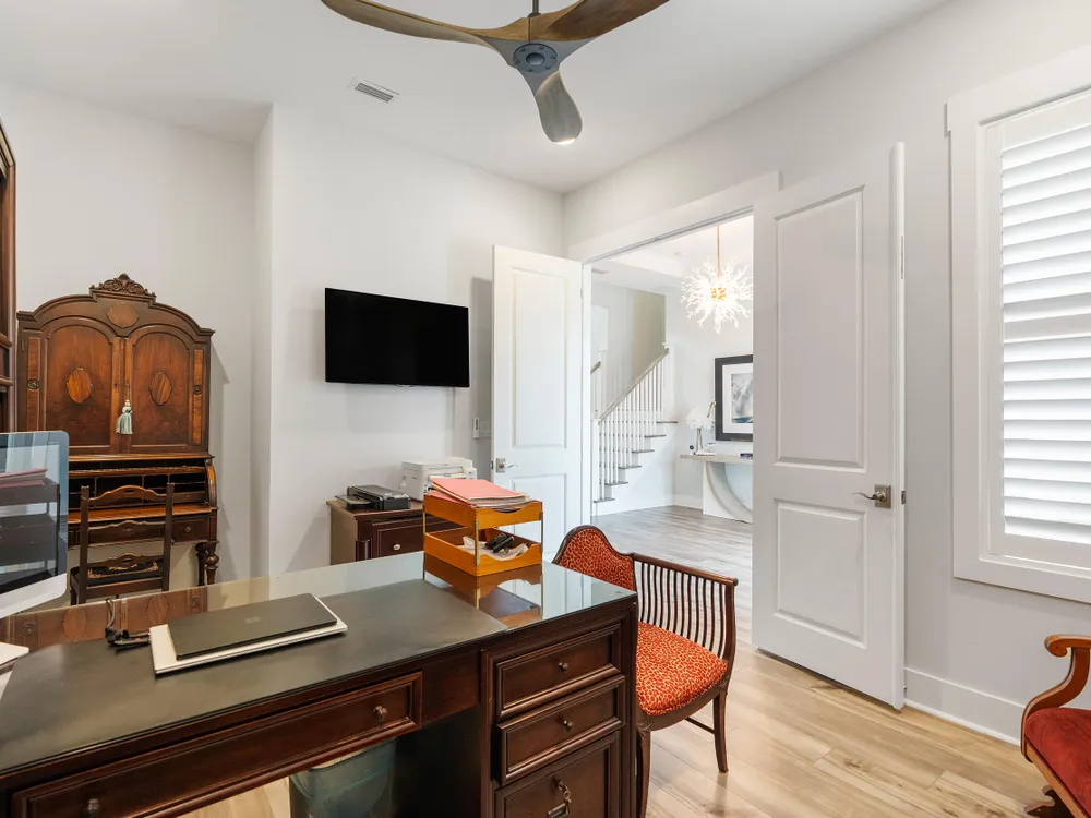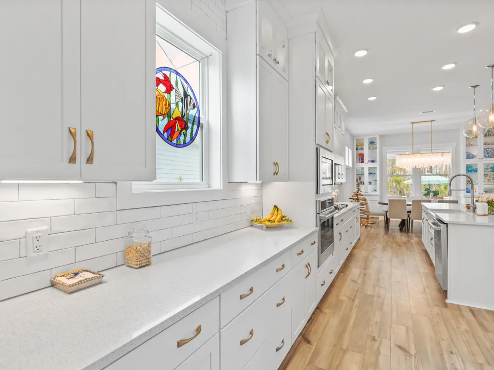 - Beamed Ceilings, Fireplace, Kitchen Island, Recessed Lighting, Pantry, Plantation Shutters, Shelving, Window Treatments
