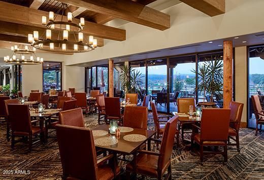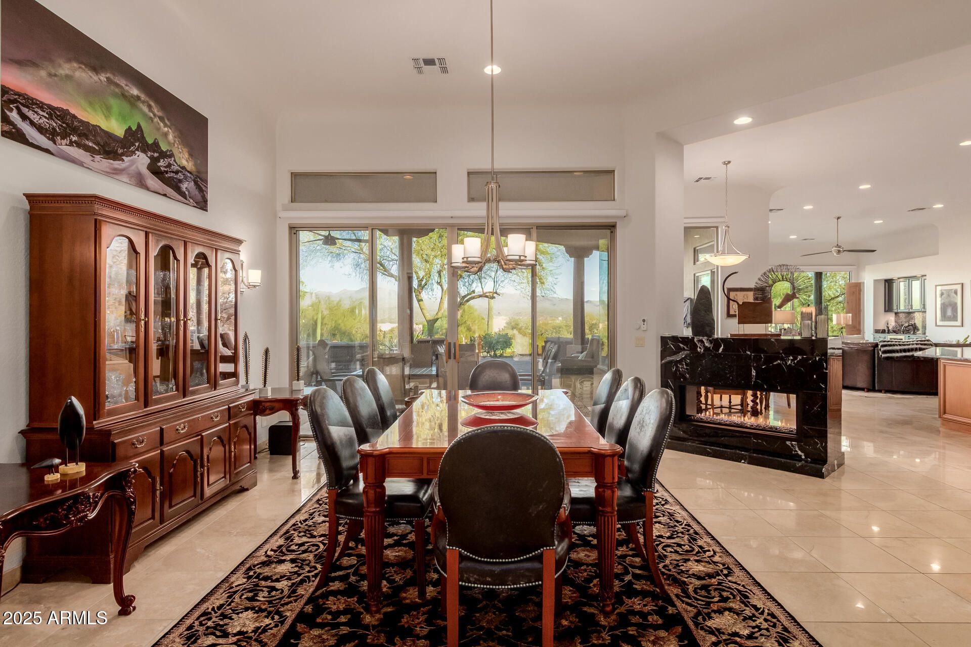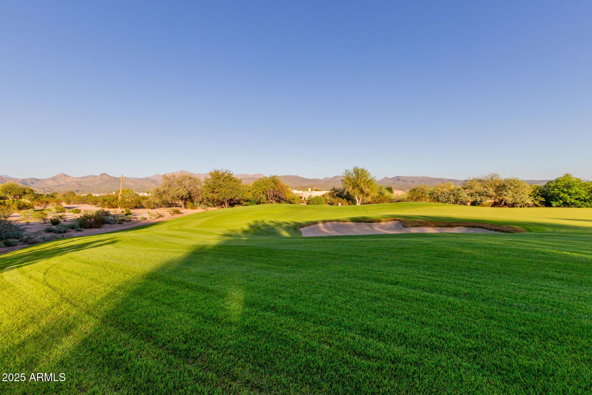 Looking for the million dollar view in Tonto Verde? This almost 4200 square foot home, located on the 4th green of the Ranch Course, features spectacular mountain and golf course views from almost every room in the house. Showcasing great curb appeal, manicured desert landscaping, climate controlled 3-car garage with storage cabinets & storage room. The welcoming front porch is protected by an automatic sunscreen. As you enter the front foyer, you can see the McDowell Mountains, the desert, and the 4th green. Inside you will find an open floor plan that has a spacious formal dining room with a see-through gas fireplace between the dining room and the breakfast nook with butted glass for unobstructed mountain & golf course views. The kitchen/great room features dramatic granite counters, custom tile backsplash, KitchenAid black stainless steel appliances, coffee counter, quiet close cabinets with hardware, huge island, convection cooktop, Travertine floors & baseboards, 12 ft.high cove ceilings, recessed lighting, trending palette. The kitchen is open to the great room with its wall of glass to the East end, to take advantage of those mountain views. The great room also features an elegant wet bar, with wine cooler, and access to the huge covered patio. In addition, there are His and Her offices, with double french doors & custom cabinetry. . Primary suite showcases stylish wood floors, remote controlled Hunter Douglas shades, access to to the hot tub just steps away, walk in closet, and a lavish ensuite bath w/dual sinks, dramatic granite counters, heated floors tile, heater in the ceiling, soaking tub, huge walk in shower with very stylish tile, and water closet with Toto washlet toilet & bidet. Two ensuite guest rooms with newer quartz counters, stylish tile showers & Toto washlet toilets. The third ensuite has a walkin closet and a private exterior door, so it is an attached Casita. The house is sited on the property so that the views from the Primary Bedroom, dining room, breakfast nook, kitchen and the greatroom are spectacular. Lastly, the wonderful backyard includes a huge covered patio and extended seating area overlooking the Community's lush golf course! In wall pest control for carefree living and solid wood doors. What are you waiting for? 3 charming flagstone patios overlook the Bocce court with golf and mountain views. Where could you find all this and a Bocce Court? Act now!