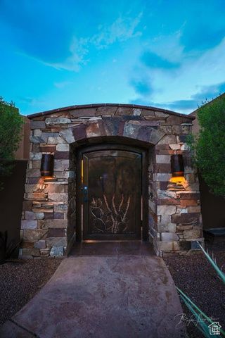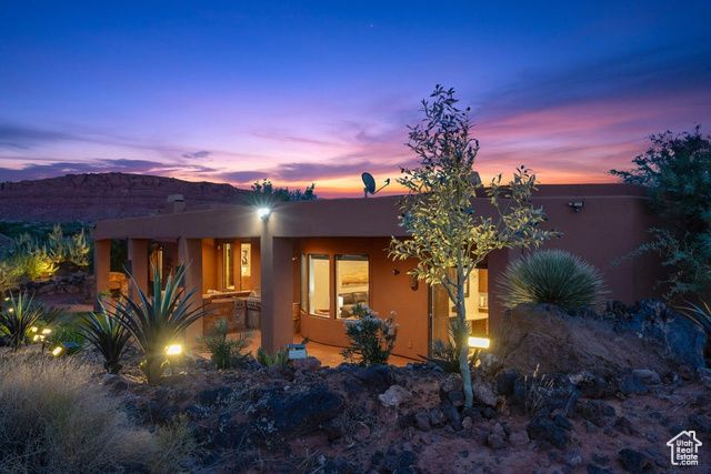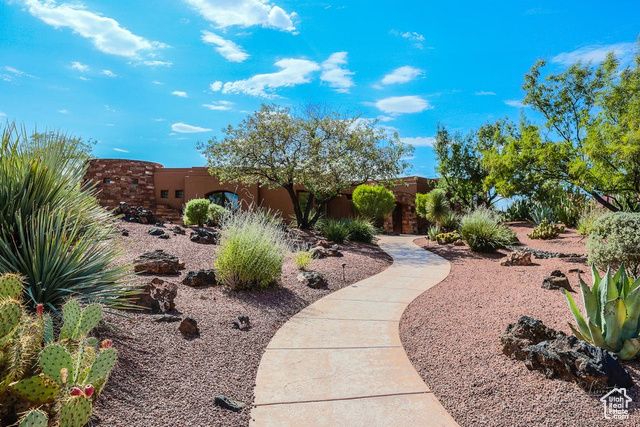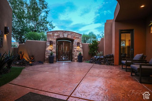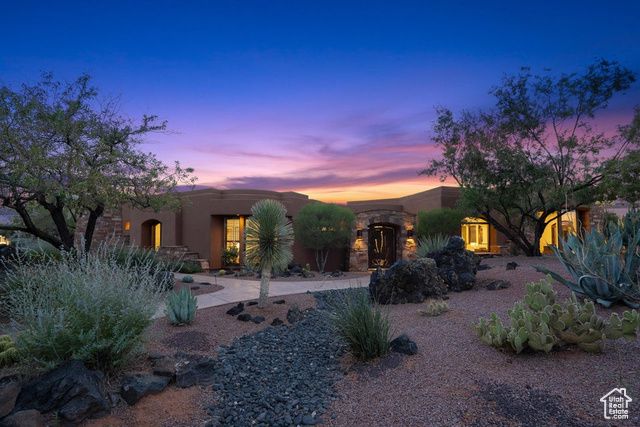A Private Desert Retreat in Prestigious Entrada! Set on nearly an acre, this mid-century modern inspired home offers privacy, elegance, and breathtaking views of Southern Utah's red rock landscape. Located on Chaco Trail in Entrada, the residence enjoys direct proximity to the community's world-class private golf course, host to PGA and LPGA events. The home spans nearly 5,000 sq. ft. with 3 bedrooms, 3.5 baths, and a thoughtfully designed layout. The main-level primary suite provides a private retreat, while a separate casita with its own living room and bedroom creates ideal guest accommodations. Walls of glass frame desert vistas and fill the home with natural light. Outdoor living includes a built-in BBQ, spacious patio areas, and a custom water feature surrounded by desert landscaping. Residents also enjoy Entrada's private clubhouse, resort-style pools, fitness, tennis, pickleball, and dining. A truly one-of-a-kind property offering privacy, architecture, and lifestyle.