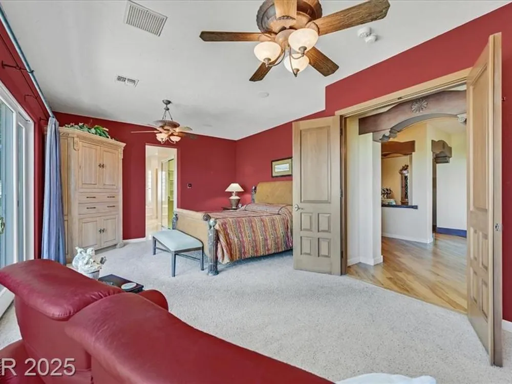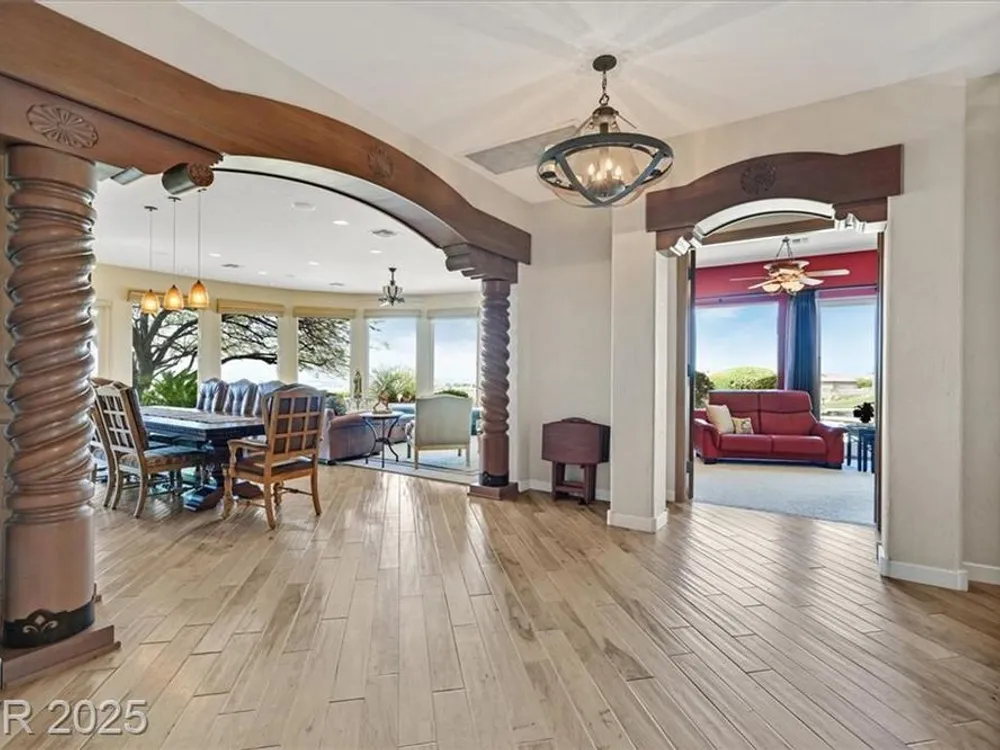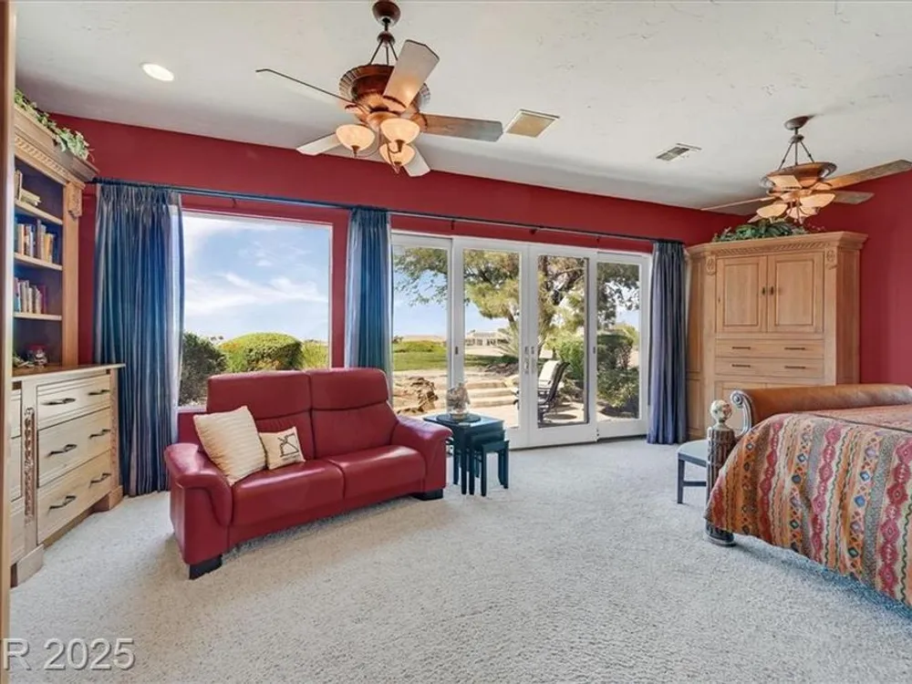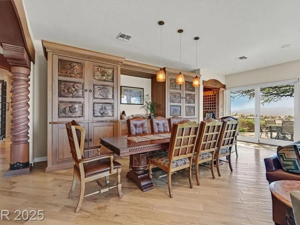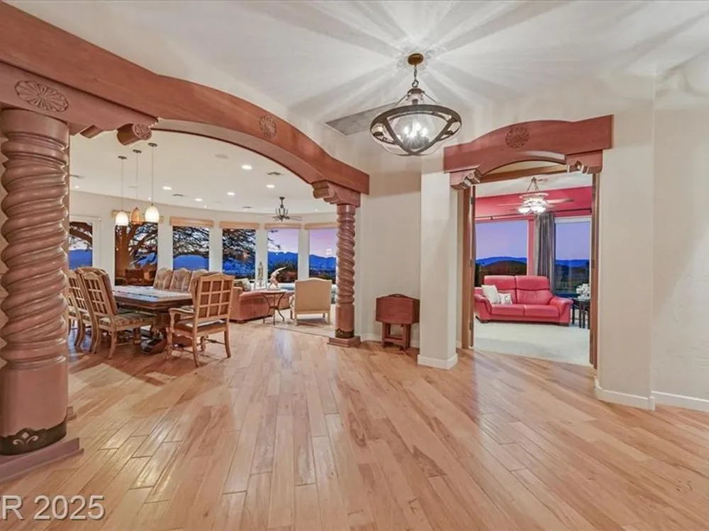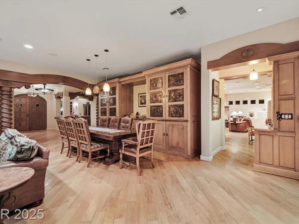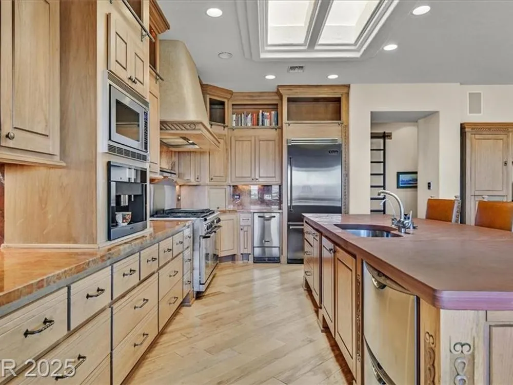 Del Webb Anthem model*Fully customized T/O*Rare enclosed courtyard affords additional patio w/privacy & dramatic entrance to home*$100,000 HVAC systems installed Nov. 2023*3 Dalkin zoned split system units*(1)3-ton 19.2 seer unit+(2)4-ton 19.2 seer units+gas furnaces*High-end kitchen w/Miele coffee system,stainless-steel appliances inc. Fisher-Paykel double dishwasher,built-in ice maker,Viking Refrigerator*Decor Microwave*Decor 6 burner Gas Range w/griddle & electric double oven*Full fan system*Top line granite counters w/full solid granite backsplash*Huge island breakfast bar w/Redrock quarried stone w/skylight*Extensive kitchen ceiling height cabinetry/shelves w/rolling ladder access*Breakfast rm w/bay windows,custom wood ceiling & table w/chairs*Unsurpassed 180° views of the Las Vegas Valley from the southern Mt Charleston Range to the LV Strip & magnificent view of the Sphere*Perched above the Gorgeous Revere Golf Course*NOTE: Please look at attachments for extensive features list*