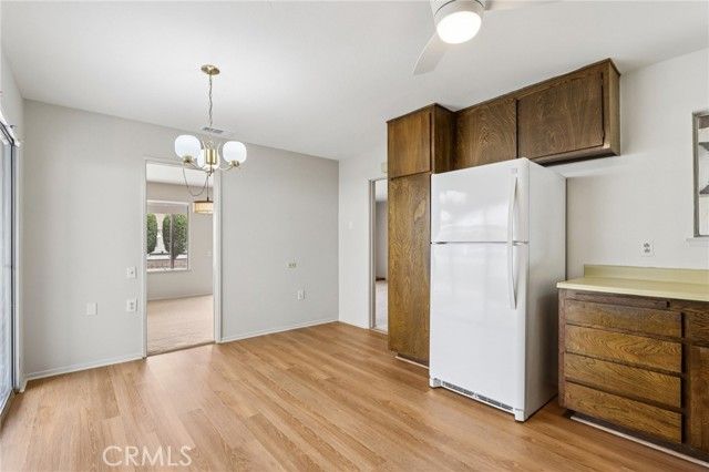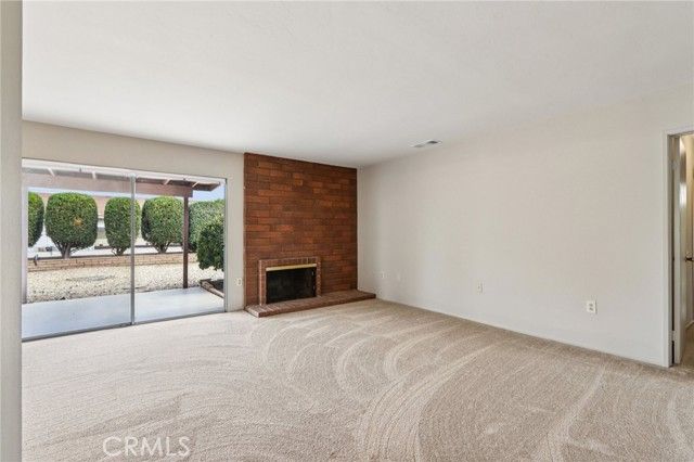 Welcome to 27640 Camden Way in Menifee’s desirable 55+ senior community. This charming single-story home sits on a corner lot and features a newer A/C unit, fresh interior and exterior paint along with brand-new carpet throughout. The spacious living room connects seamlessly to the formal dining area and includes a classic brick wood-burning fireplace and a large sliding glass door that fills the space with natural light. The kitchen has been updated with new flooring, oak cabinetry, white appliances, and offers space for a cozy breakfast table. A dedicated office with built-in shelving makes the perfect spot for a book collection or home library. The primary bedroom is generous in size and includes an en-suite bathroom, walk-in closet, and a convenient sewing station. The secondary bedroom is also spacious and features a wall-to-wall closet for ample storage. The home also offers a dedicated laundry room and an attached two-car garage for added convenience. Outside, enjoy two covered patios and low-maintenance landscaping—ideal for relaxing or entertaining. The corner lot provides potential RV parking access in the backyard. Low taxes and low HOA with community amenities including a club house, pool, spa, tennis courts, gym, and multiple other activities.