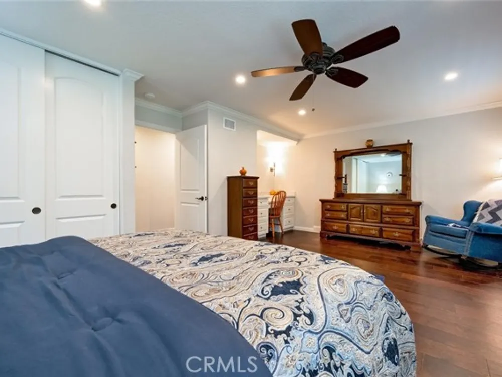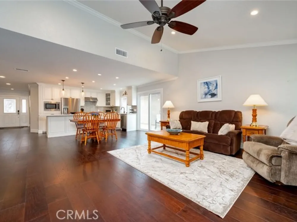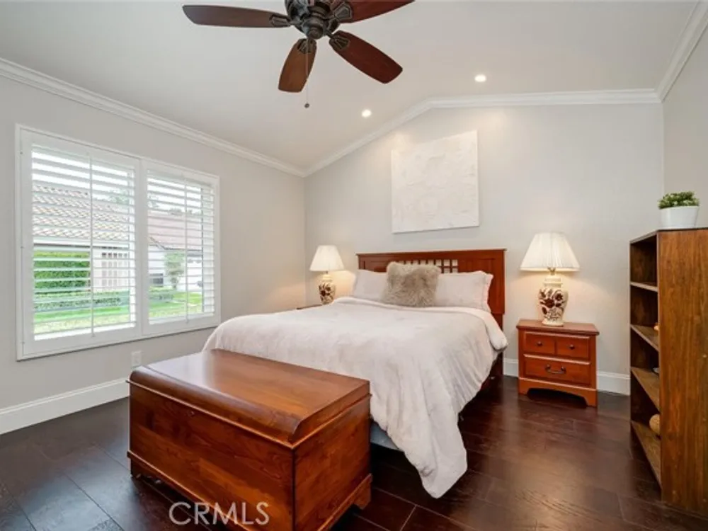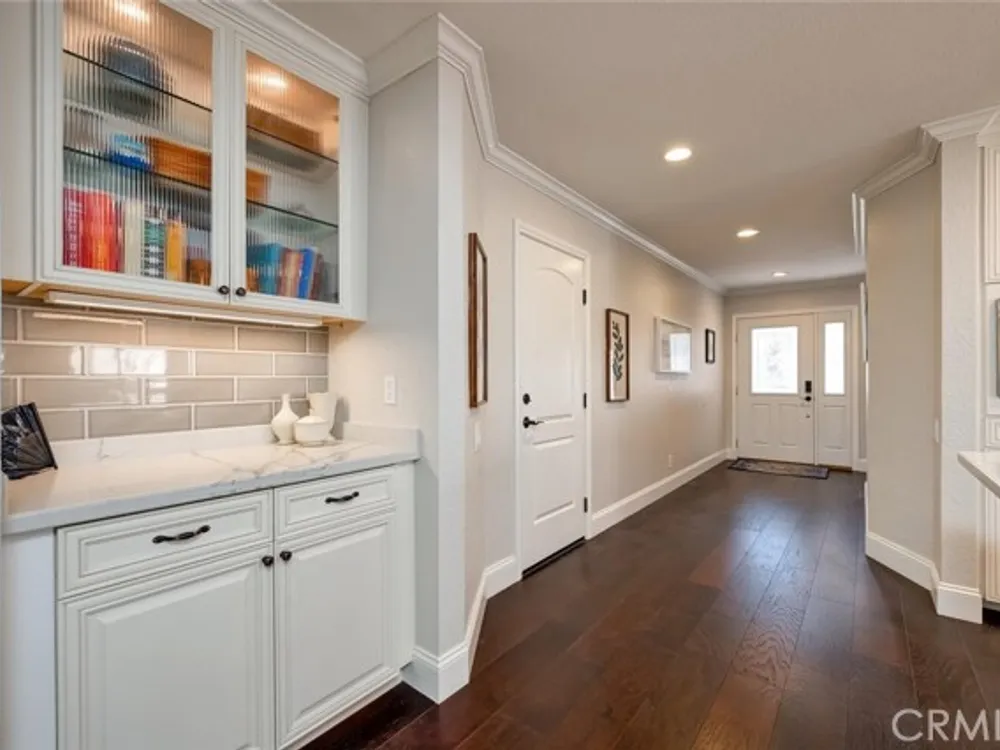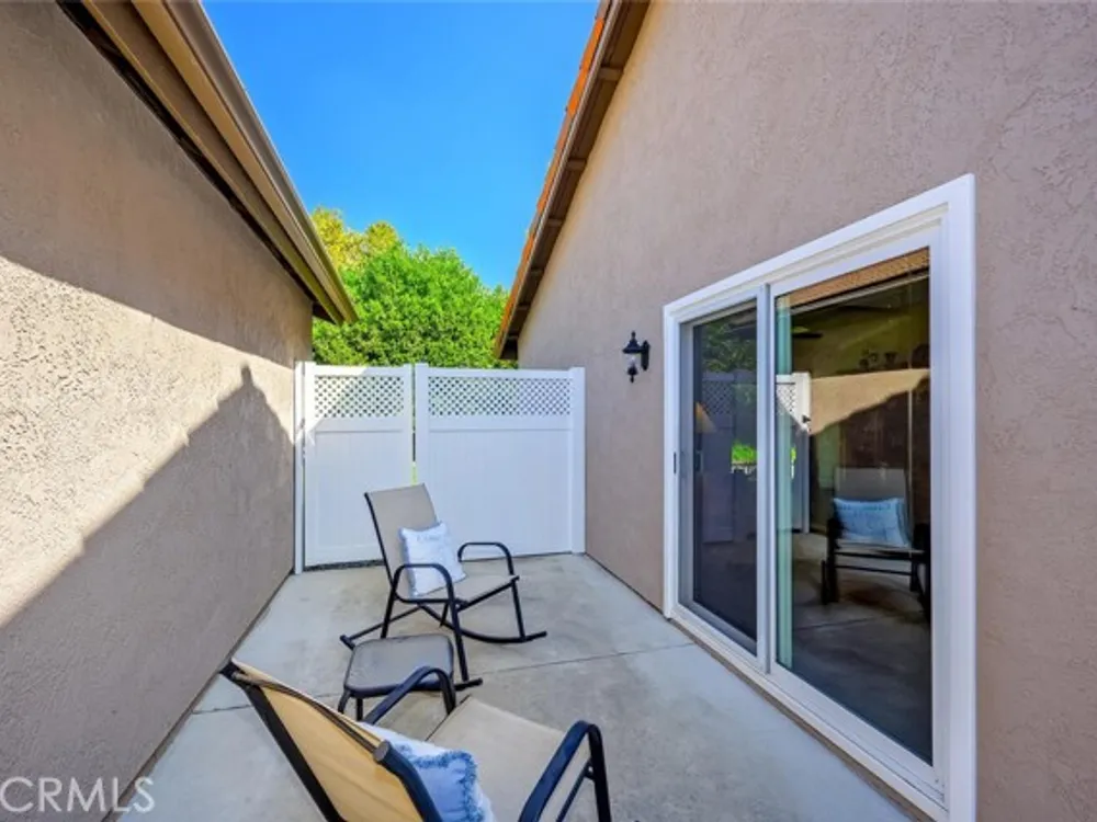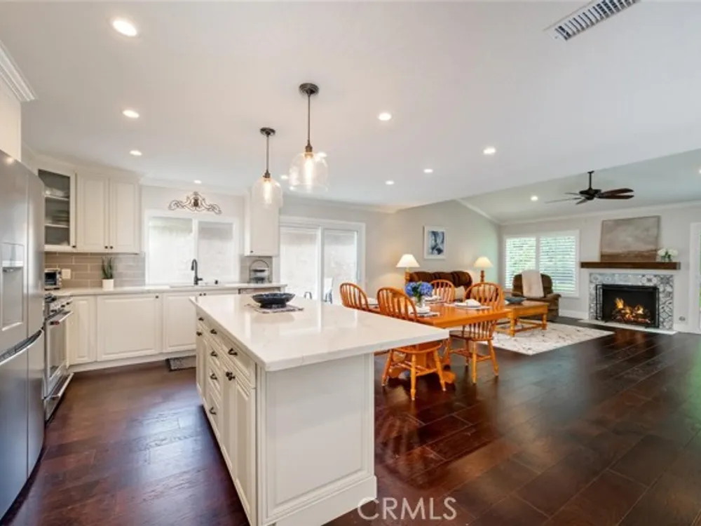 METICULOUS and Beautifully Remodeled Single-Level Home in Casta del Sol (55+ Community). As you walk into this stunning, move-in ready residence featuring a bright, open floor plan, soaring ceilings and modern upgrades throughout, you will be wowed by the feeling of space and comfort. Enjoy a meal with friends in the gourmet kitchen boasting all-new white cabinetry, stainless steel KitchenAid appliances, five-burner stove, pull-out shelving, soft-close drawers, new refrigerator and a spacious island with pendant lighting. No expense was spared updating this home! The great room is welcoming with open ceilings and a custom fireplace and bar, recessed lighting and access to two patios-one private and one overlooking lush and serene tree views. Enjoy two spacious bedrooms, including the primary suite with new walk-in glass shower and closet; the second, oversized bedroom is quiet with built-in desk space to craft, work on the computer, etc. Both bathrooms were fully remodeled with new counters, sinks, tile and paint. Additional upgrades include real wood flooring throughout (no carpet), NEW HVAC, water heater, washer/dryer, epoxy garage flooring, plantation shutters, vinyl gates and stylish finishes throughout. This immaculate home was designed for my client with luxury and comfort