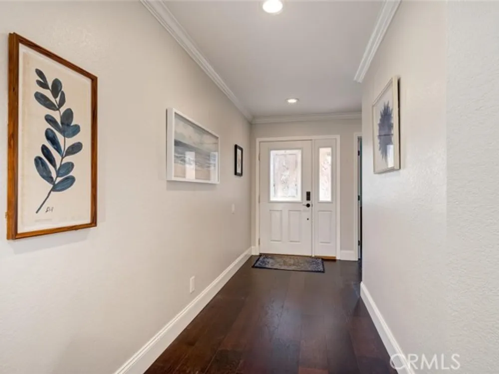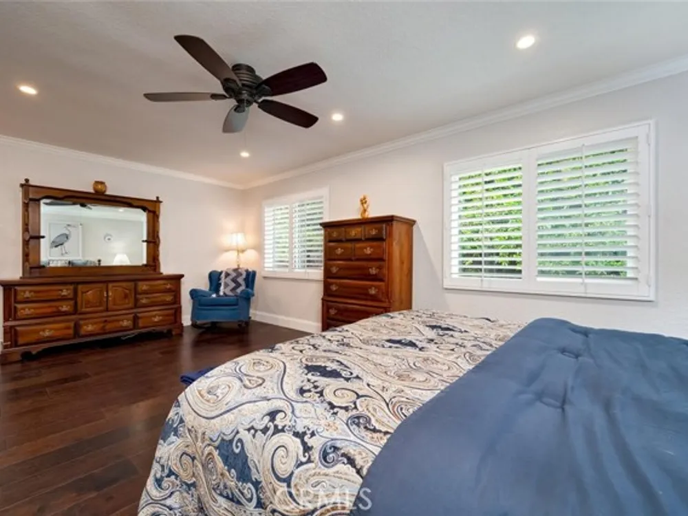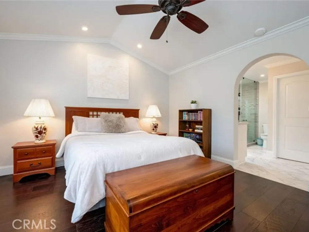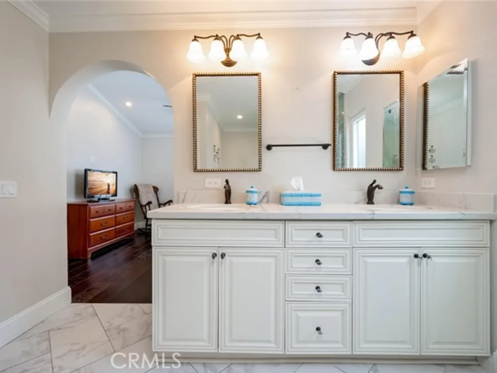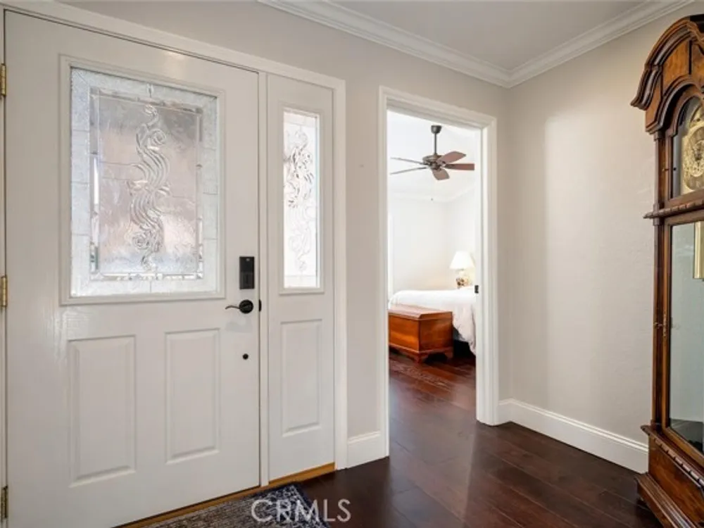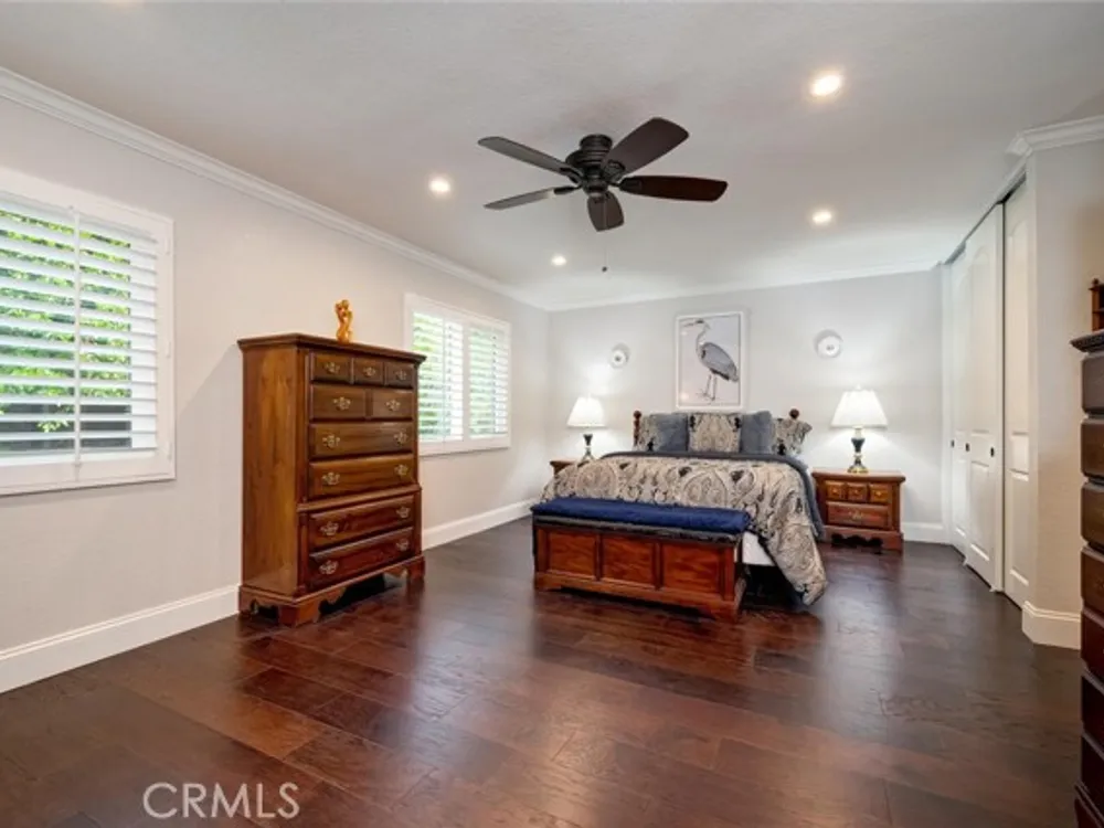 METICULOUS and Beautifully Remodeled Single-Level Home in Casta del Sol (55+ Community). As you walk into this stunning, move-in ready residence featuring a bright, open floor plan, soaring ceilings and modern upgrades throughout, you will be wowed by the feeling of space and comfort. Enjoy a meal with friends in the gourmet kitchen boasting all-new white cabinetry, stainless steel KitchenAid appliances, five-burner stove, pull-out shelving, soft-close drawers, new refrigerator and a spacious island with pendant lighting. No expense was spared updating this home! The great room is welcoming with open ceilings and a custom fireplace and bar, recessed lighting and access to two patios-one private and one overlooking lush and serene tree views. Enjoy two spacious bedrooms, including the primary suite with new walk-in glass shower and closet; the second, oversized bedroom is quiet with built-in desk space to craft, work on the computer, etc. Both bathrooms were fully remodeled with new counters, sinks, tile and paint. Additional upgrades include real wood flooring throughout (no carpet), NEW HVAC, water heater, washer/dryer, epoxy garage flooring, plantation shutters, vinyl gates and stylish finishes throughout. This immaculate home was designed for my client with luxury and comfort