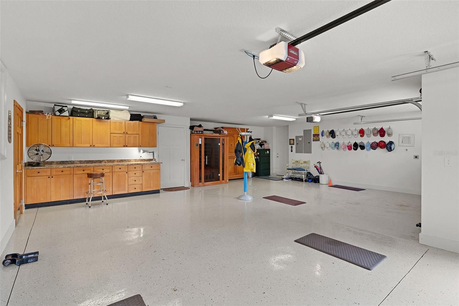 ~SMALL, PRIVATE GATED COMMUNITY~ ~PANORAMIC LAKE VIEW~ ~SELF CLEANING SWIM SPA~ ~5+ CAR GARAGE~ ~BUILT IN 2019~ ~PARTIALLY FURNISHED~ ~GLASS ENCLOSED LANAI~ ~MATCHING SHED~ ~TANKLESS WATER HEATER~ Welcome to a truly exceptional custom home in The Villages—where luxury design and thoughtful functionality come together in one unforgettable residence. Overlooking a tranquil lake and offering GOLF CART ACCESS to everything The Villages lifestyle provides; this mostly furnished home is a rare find. The expansive residence features 3 bedrooms, 3 full baths, and 2 additional half baths, creatively designed with comfort and entertaining in mind. From the moment you enter, you’re greeted in the welcoming foyer with a COAT CLOSET and beautiful WHITE OAK ENGINEERED HARDWOOD FLOORING that flows throughout the home. The living room is highlighted by UPGRADED LIGHTING and opens seamlessly to an elegant dining area with SOARING CEILINGS and DESIGNER LIGHT FIXTURES—perfect for hosting memorable gatherings. The culinarian's kitchen is stunning and functional, with QUARTZ COUNTERTOPS, TILE BACKSPLASH, LG APPLIANCES, LARGE CENTER ISLAND, and 69sf BUTLER’S PANTRY with generous storage. A SEPARATE BAR AREA adds an extra layer of sophistication for entertaining. The primary suite is a private retreat with HIGH CEILINGS, ceiling fan, and high-set windows that flood the space with natural light. Also en-suite is the OVERSIZED/CUSTOMIZED 365sf WALK-IN CLOSET providing plentiful storage. Attached is a SEPARATE 106sf WALK-IN CLOSET that doubles as your HURRICANE SAFE SPACE. The spa-like primary bath boasts PORCELAIN TILE FLOORING, beautifully TILED ROMAN SHOWER, double sinks with QUARTZ countertops, private water closet. The 2nd bedroom includes a CUSTOMIZED BUILT-IN CLOSET and is complemented by a stylish bath with PORCELAIN TILE, tiled tub/shower combination, and QUARTZ countertops. The 3rd bedroom features a custom built-in closet and ceiling fan, with an adjoining bath showcased by PORCELAIN TILE, QUARTTZ countertops, TILED ROMAN SHOWER. A well-appointed powder room with porcelain tile and QUARTZ countertops adds convenience for guests. Additional interior highlights include a LARGE INSIDE LAUNDRY ROOM with extensive cabinetry and SAMSUNG appliances, as well as high-quality fixtures and finishes throughout the home. Step into the expansive, GLASS-ENCLOSED LANAI—finished with ceramic tile, under heat and air, DOUBLE-PANE HURRICANE-RATED WINDOWS, 2 ceiling fans, and a cozy FIREPLACE—creating a year-round indoor/outdoor living space. Just beyond, enjoy the large, SELF-CLEANING SWIM SPA with POWER LID that raises up and down. Swim spa splits into hot tub and workout sections, perfectly positioned to take in serene lake views. Car enthusiasts and hobbyists will appreciate the OVERSIZED AIR-CONDITIONED 5+-CAR GARAGE, complete with an AUTO LIFT, workbench, powder room with a large sink, SAUNA, UPSTAIRS STORAGE, and exceptional insulation. The home also features a sprinkler system. There is an additional MATCHING SHED for storing yard equipment, she-shed, man cave or playhouse, also air-conditioned. This custom home offers unmatched craftsmanship, abundant storage, luxury amenities, all within access to the vibrant and amenity-rich lifestyle of The Villages. This is truly Florida living at its finest. Located off Hwy 466, it is close to the Polo Fields and is a short drive to shopping, dining, and medical in Southern Trace and Laurel Manor.