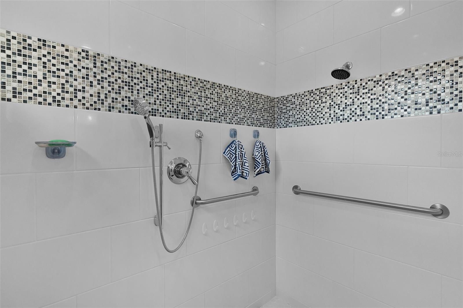 - Built-in Features, Ceiling Fan(s), High Ceilings, Open Floorplan, Main Level Primary, Sauna, Stone Counters, Walk-In Closet(s)