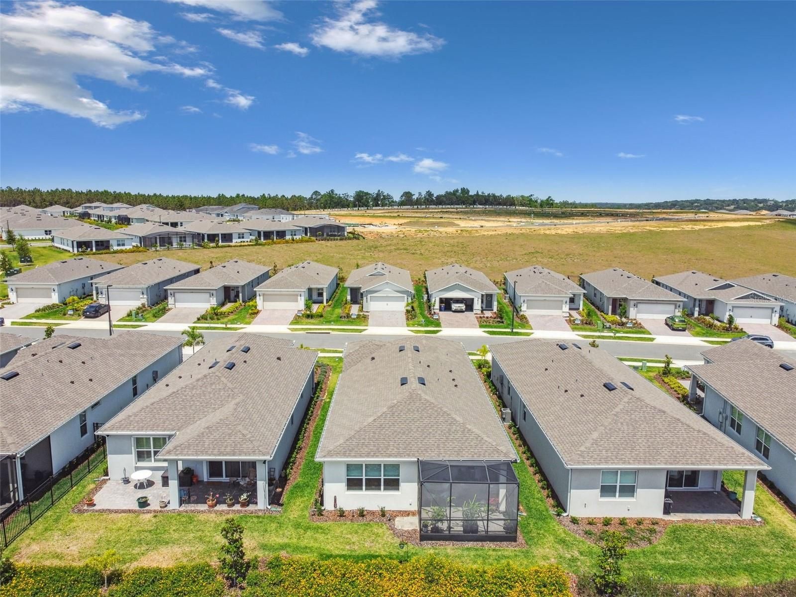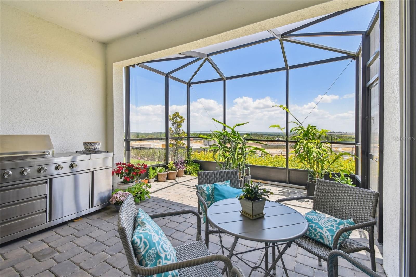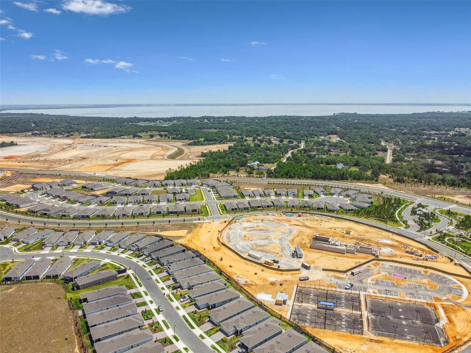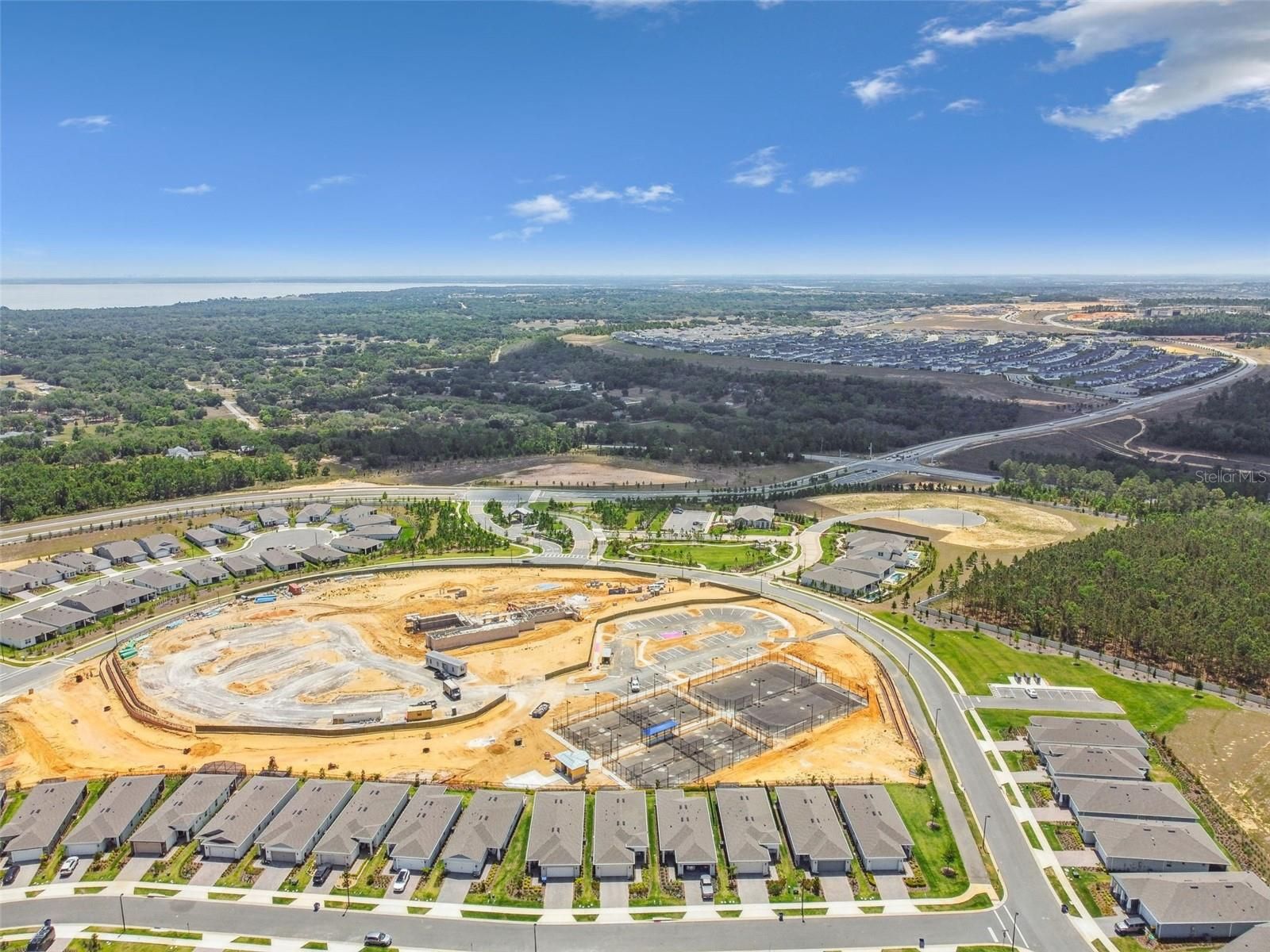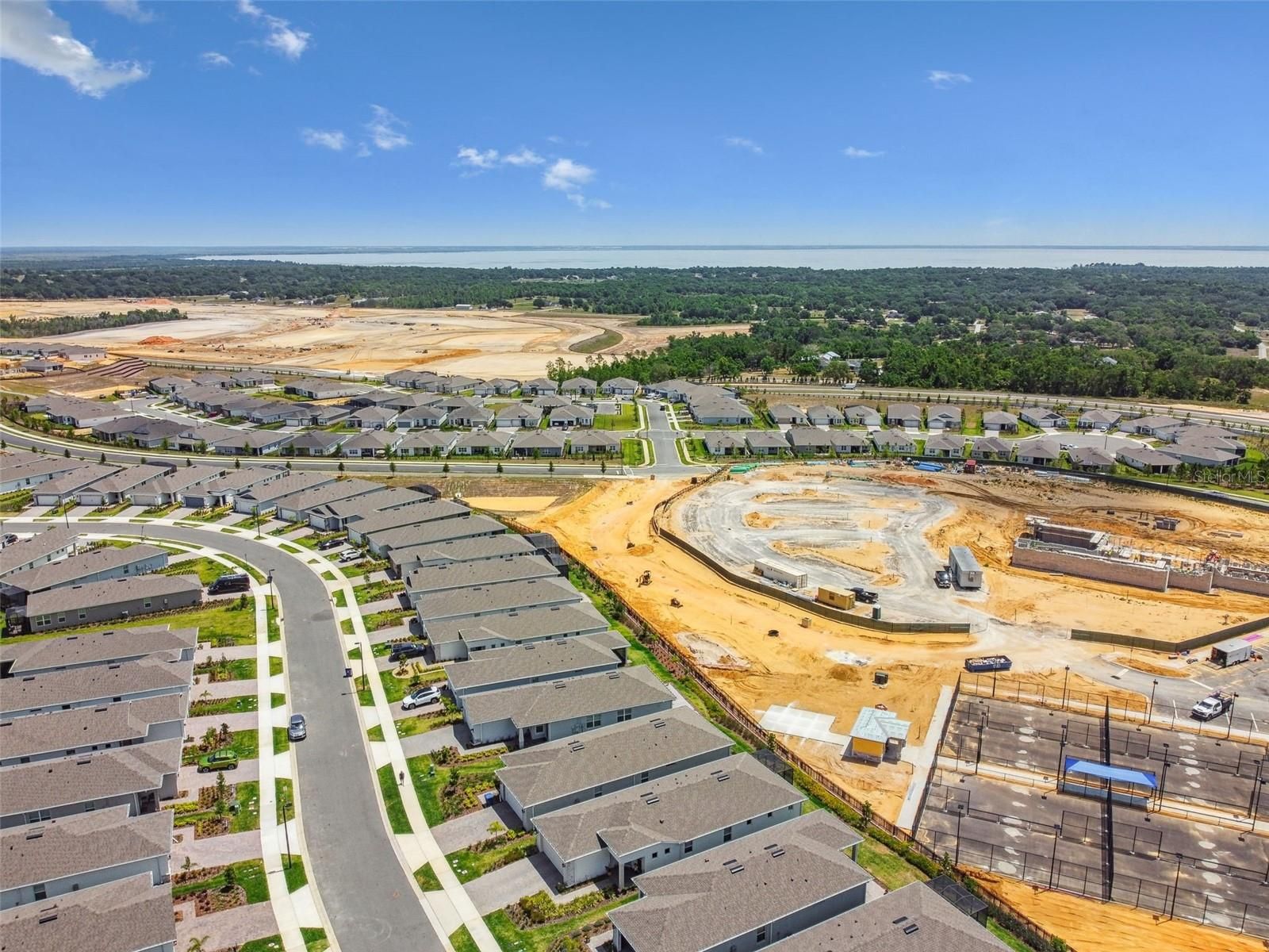 OWNERS MOTIVATED!!! Welcome to one of the most STUNNING VIEWS in all of Del Webb Minneola! This gorgeous Contour model is LOADED with upgrades and located in one of the best lots in the neighborhood!!! With NO REAR NEIGHBORS on a CUL DE SAC, this home is located on one of the highest points in the community and has clear views of LAKE APOPKA from your backyard! From the moment you drive up, you are greeted with beautiful curb appeal. The stone on the garage and the wood trim accents around the roof line and entry way bring about elegance! The glass front door brings about so much natural light from the covered porch! Inside you'll appreciate the high ceilings, 8ft doors, blinds, and extended tile floors throughout! NO CARPETS!! To the right by the entrance is a beautifully decorated office/flex room with extra windows to enjoy the space, which is complete with french doors. The GOURMET KITCHEN features upgraded Frost cabinets with crown molding, quartz countertops, a beautiful tile backsplash, and upgraded appliances. The dining space is very spacious and overlooks the OVERSIZED gathering room (extension adds an additional 10ft of living space!) You'll love all the natural light from the box windows and large triple window overlooking the vistas. The primary bedroom features a tray ceiling and modern light fixture as well as a double window overlooking the lanai. The ensuite primary bath is stunning. You'll be drawn to the shower featuring upgraded tile to the ceiling with a transom window, upgraded shower head, built in seat, and a frameless glass enclosure. It's like your very own spa at home! There's also tons of counter and storage space in the vanity cabinets with quartz countertops. The secondary bedroom is also spacious and has great storage space. The guest bath comes with a tiled tub/shower, upgraded shower head, and cabinets with quartz countertops as well. The laundry room has an upgraded laundry package adding beautiful cabinets for added storage and a polished look. Outside on the EXTENDED covered lanai and cage you can enjoy the incredible view of Lake Apopka and the Orlando skyline in the distance. The lanai has prewiring/preplumbing for an outdoor kitchen to really transform the space into a backyard oasis! The irrigation system covers both the front and rear yards (builder no longer offers it in the rear), making lawn care effortless. The home comes complete with gutters, a water softener system, and whole house water filtration system installed! This is BETTER THAN NEW!!! WASHER / DRYER Included! The community covers high speed internet, streaming channels, and all landscaping and irrigation included with the HOA fees! Not to mention some of the best amenities in Clermont/Minneola to enjoy!! There is even an onsite restaurant coming soon once the clubhouse is finished. Wondering what to do? Reach out to the onsite Lifestyle Director to help you plan your next activity schedule! It's a great place to build community! Outside the community you'll be able to ride your GOLF CART to shopping, restaurants, and MORE with the new commercial plaza being built just south of the community, including the highly anticipated CROOKED CAN brewery and food hall! The brand new Minneola Hospital is also minutes down the street. To secure the BEST DEAL in Del Webb Minneola, schedule your private tour today!